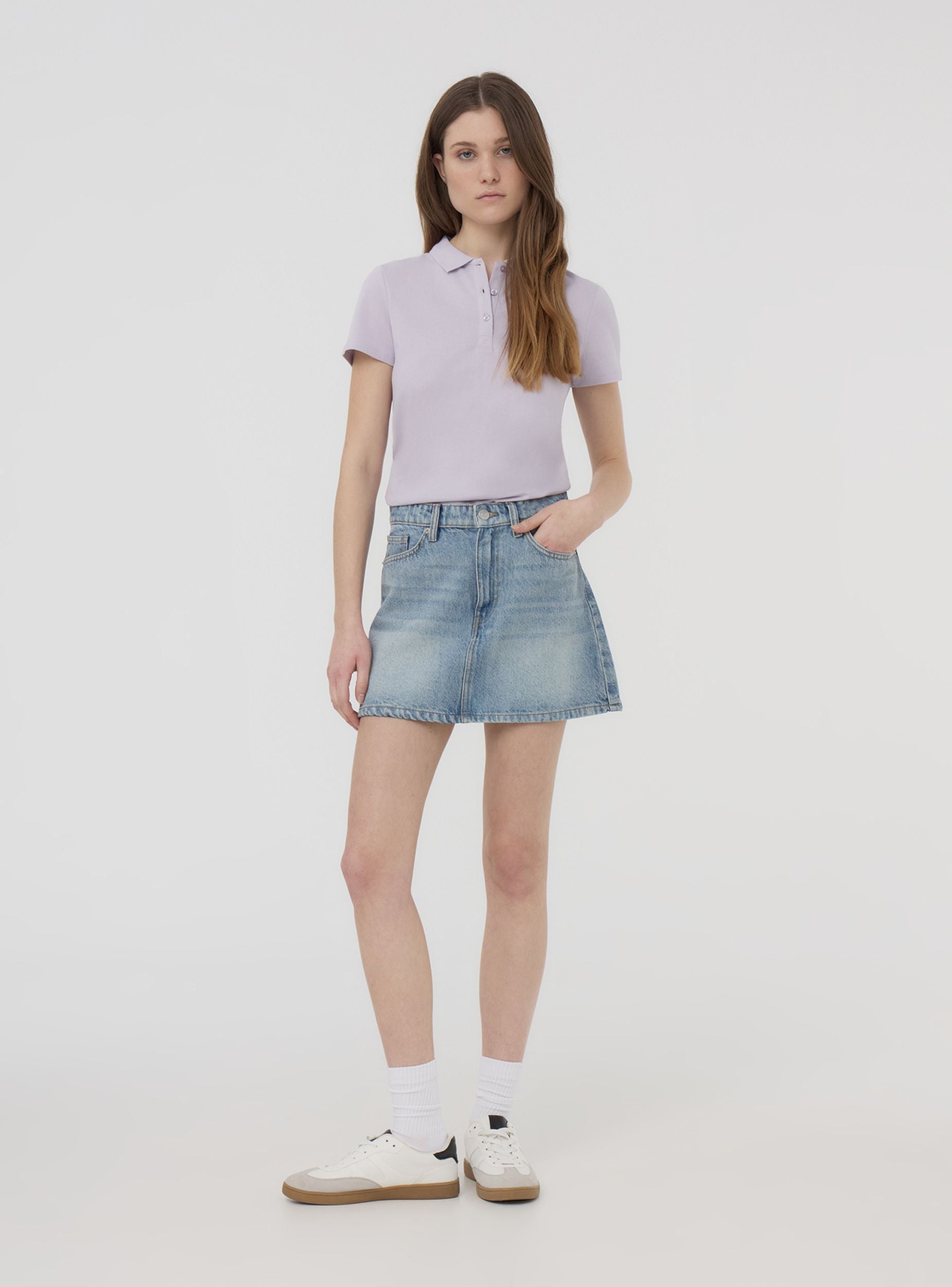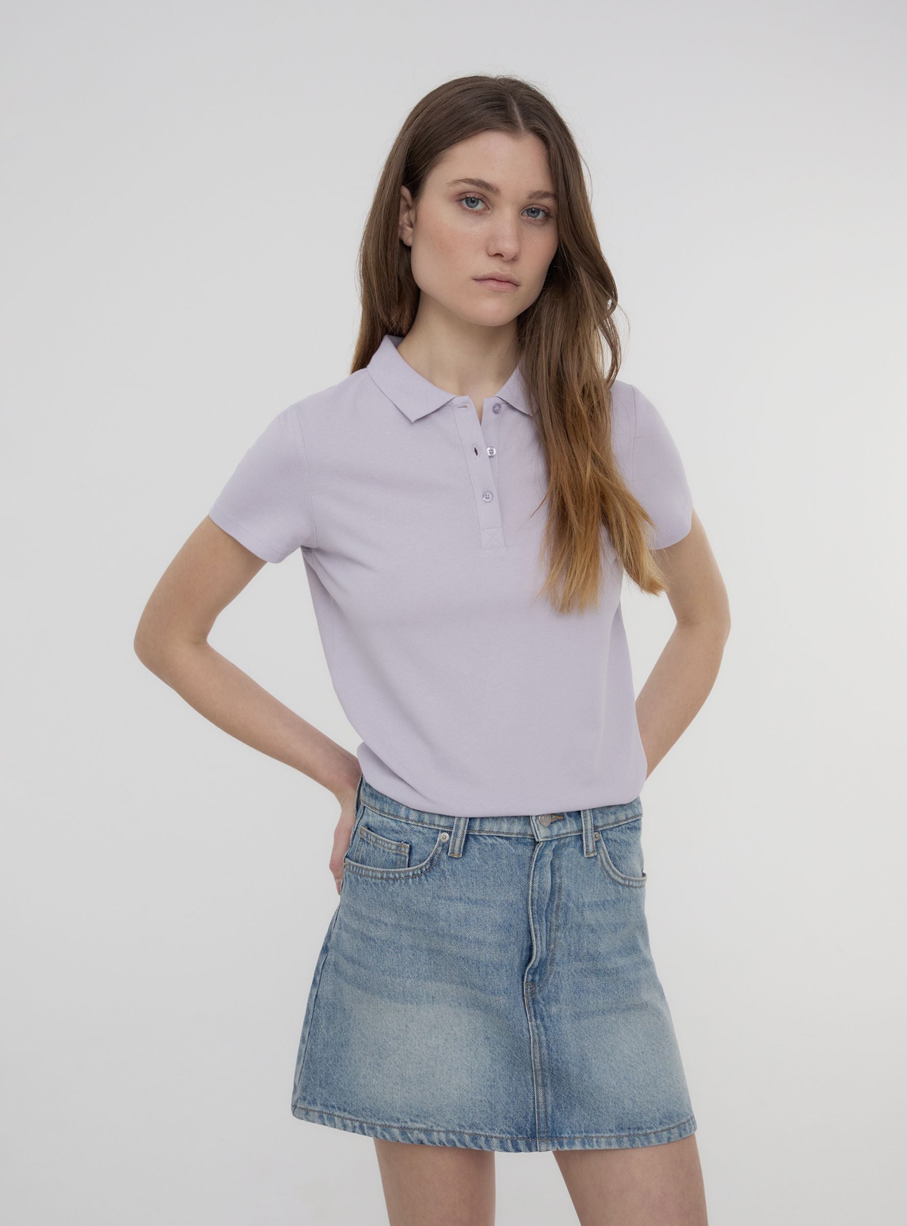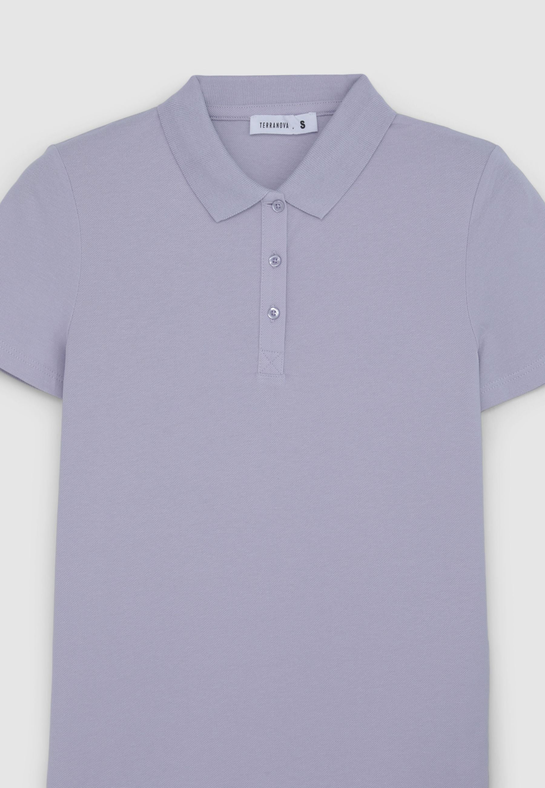 Maglietta da donna a tinta unita in stile polo, caratterizzata dal classico tessuto piquet. Il modello presenta un colletto a coste con tre bottoni, maniche corte e un taglio regular che offre una vestibilità confortevole e versatile. Ideale per un look casual ma curato, perfetta per occasioni sia informali che più eleganti.Dettagli