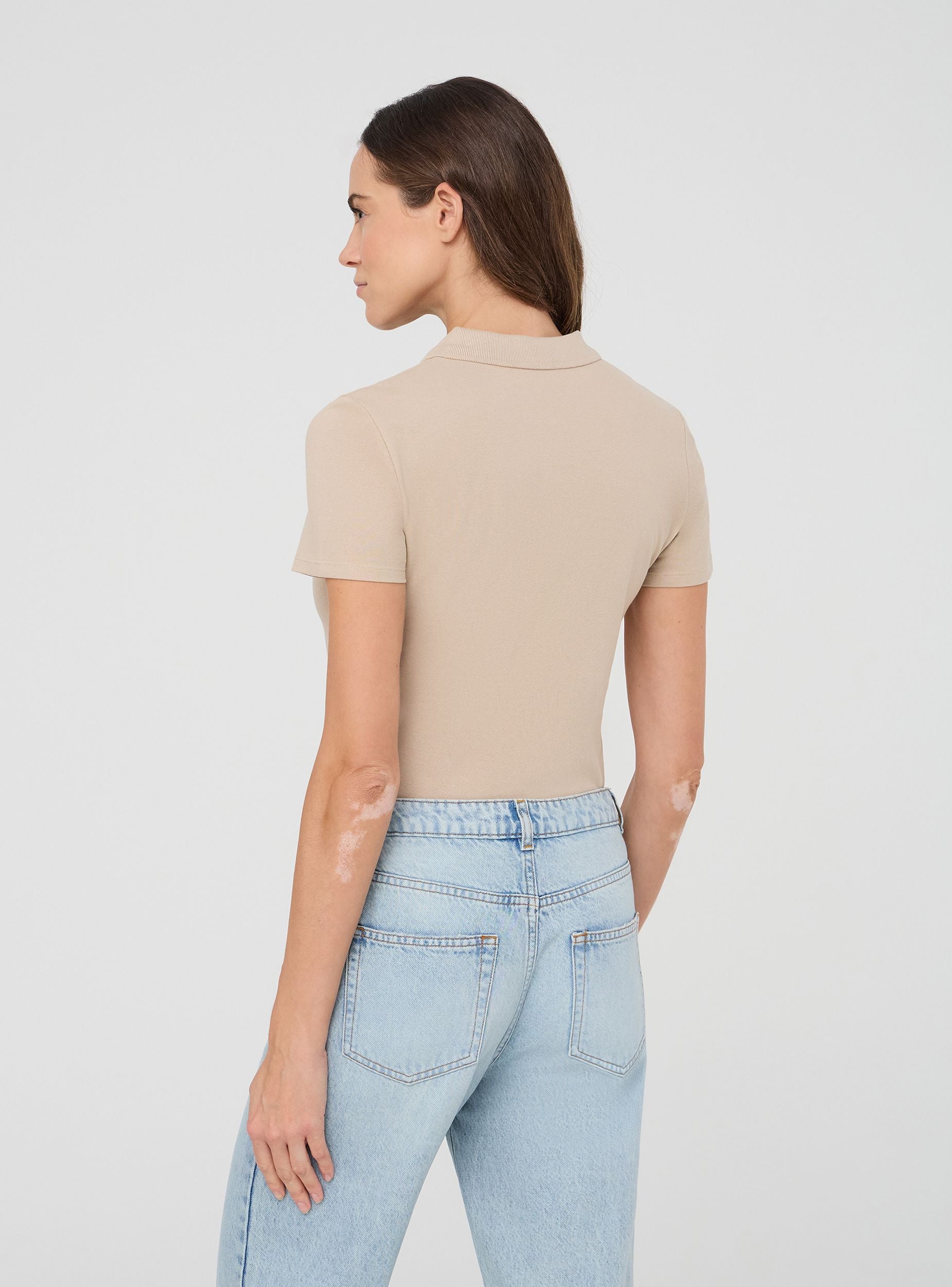 Maglietta da donna a tinta unita in stile polo, caratterizzata dal classico tessuto piquet. Il modello presenta un colletto a coste con tre bottoni, maniche corte e un taglio regular che offre una vestibilità confortevole e versatile. Ideale per un look casual ma curato, perfetta per occasioni sia informali che più eleganti.Dettagli