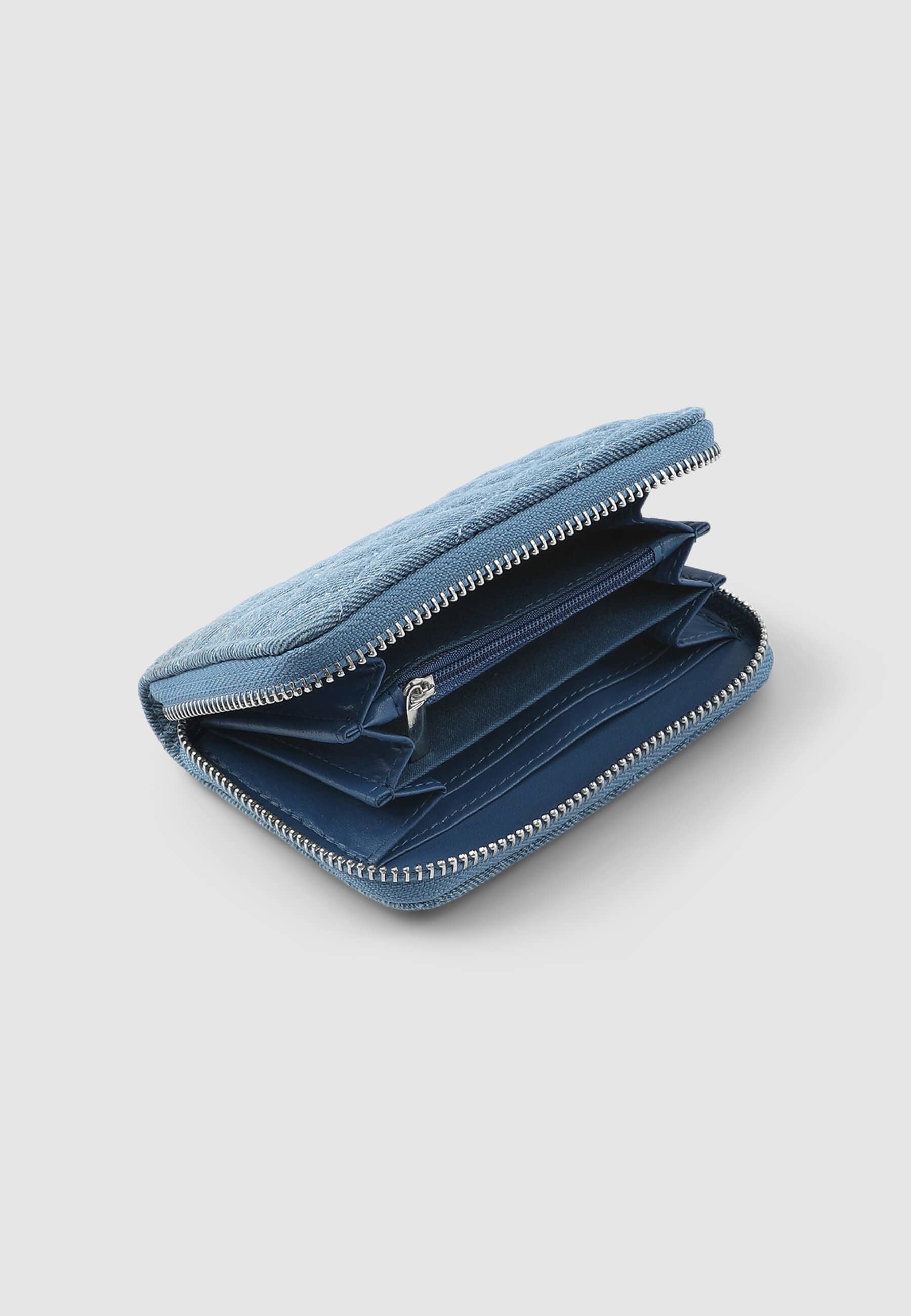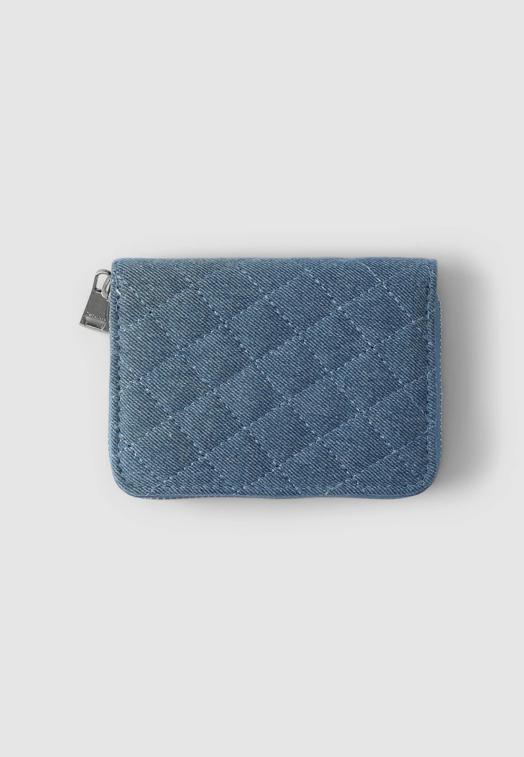 Portafoglio da donna dallo stile contemporaneo, realizzato con un effetto denim che aggiunge un tocco moderno e originale. Il motivo trapuntato e la tinta unita lo rendono versatile e perfetto per ogni occasione. La chiusura a zip assicura praticità e sicurezza, combinando funzionalità ed estetica. Dimensioni: Altezza 9cm, Lunghezza 13cm, Profondità 2,5cm.Dettagli
