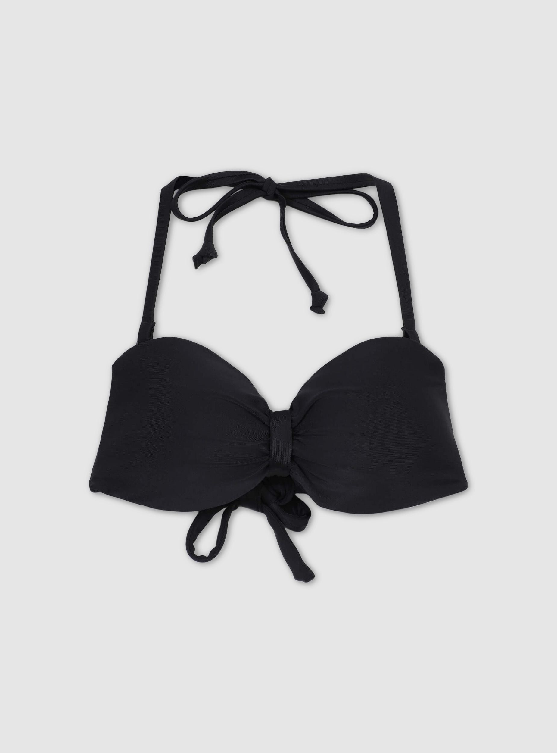 Reggiseno bikini da donna ideale per un look estivo e rilassato, perfetto per giornate in spiaggia o in piscina. Presenta un design con nodo centrale e laccetti rimovibili e regolabili per un comfort personalizzato. Un capo versatile e femminile per completare il tuo outfit da mare.Dettagli