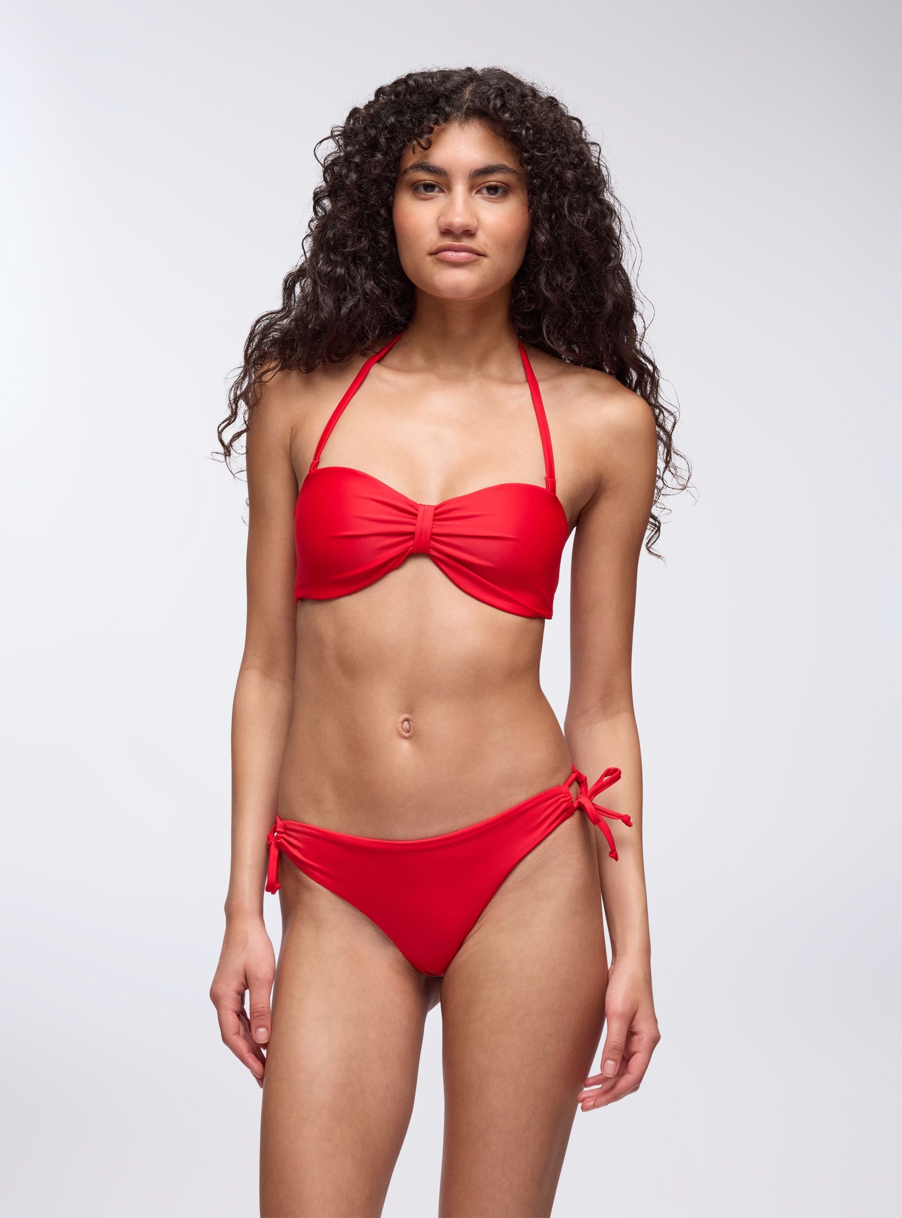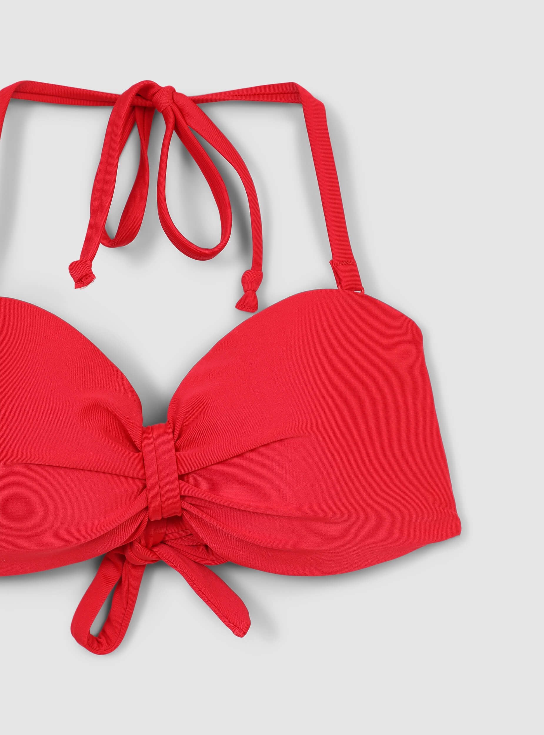Reggiseno bikini da donna ideale per un look estivo e rilassato, perfetto per giornate in spiaggia o in piscina. Presenta un design con nodo centrale e laccetti rimovibili e regolabili per un comfort personalizzato. Un capo versatile e femminile per completare il tuo outfit da mare.Dettagli