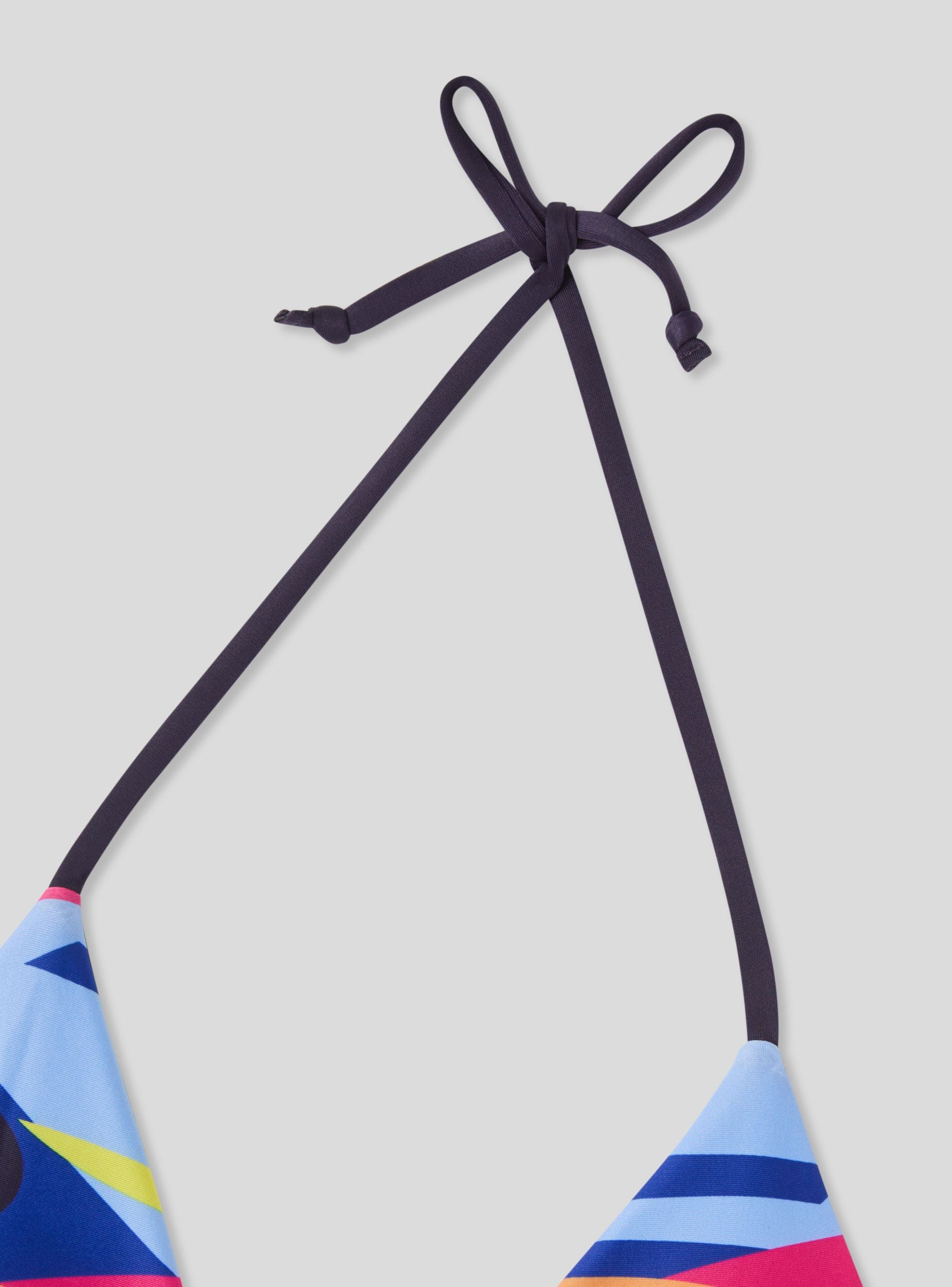 Reggiseno bikini da donna a triangolo, ideale per la spiaggia e la piscina. Il design presenta una stampa ispirata al Misano World Circuit, con laccetti sottili da annodare dietro al collo e sulla schiena per una vestibilità regolabile. Perfetto da abbinare a slip coordinati o a tinta unita, offre comfort e libertà di movimento per le giornate estive all'insegna del relax e dello sport.Dettagli