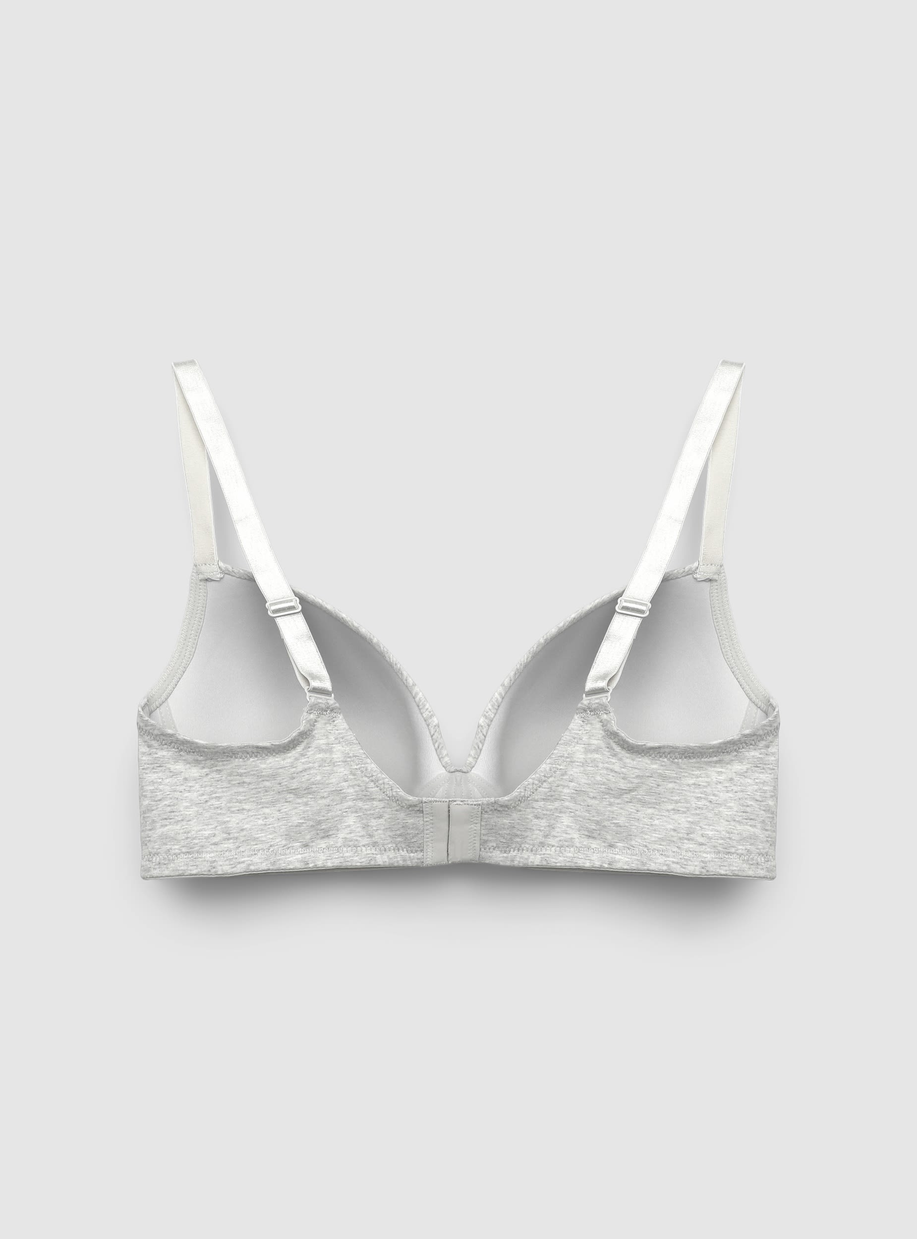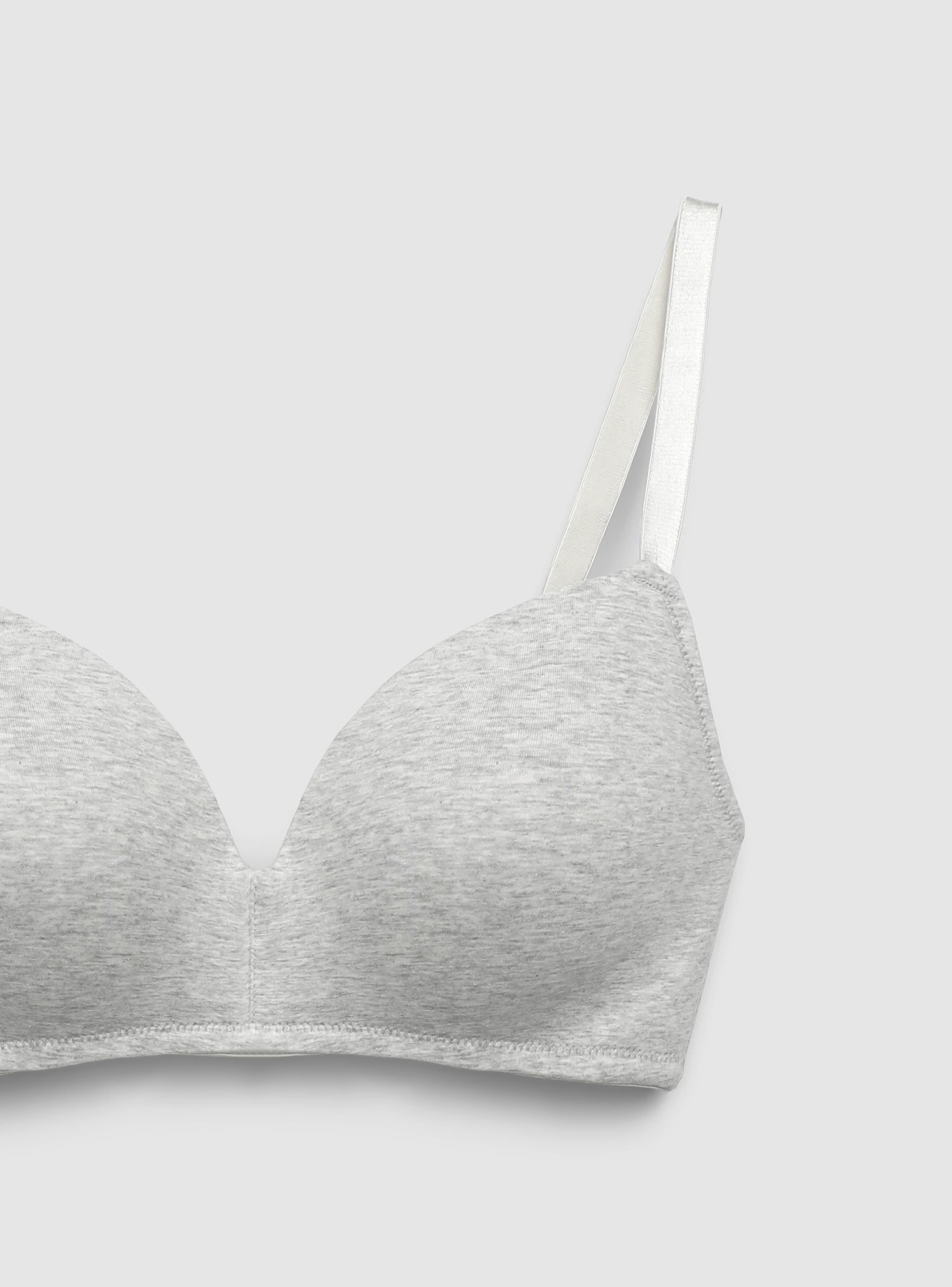 Reggiseno da donna con coppe imbottite e forma a triangolo, ideale per il quotidiano grazie alla fantasia tinta unita. Spalline regolabili per una vestibilità personalizzata e chiusura posteriore con gancetti. Morbido e confortevole, offre sostegno e una silhouette naturale sotto camicie, magliette e abiti.Dettagli
