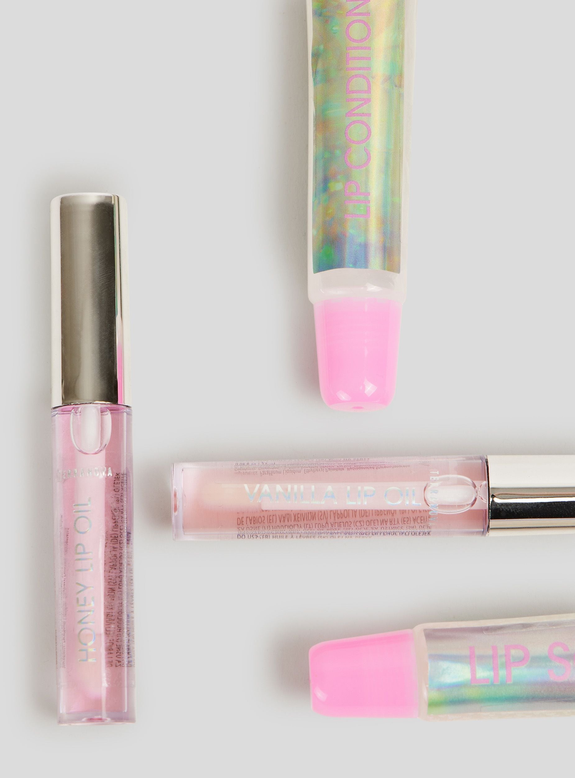 Set cosmetica da donna ideale per la cura quotidiana delle labbra. Include due oli labbra, un balsamo e uno scrub, perfetti per idratare, nutrire ed esfoliare delicatamente. Il packaging dal finish metallizzato aggiunge un tocco moderno. Kit versatile per labbra morbide e curate in ogni occasione, dalla routine mattutina ai ritocchi durante la giornata.Dettagli