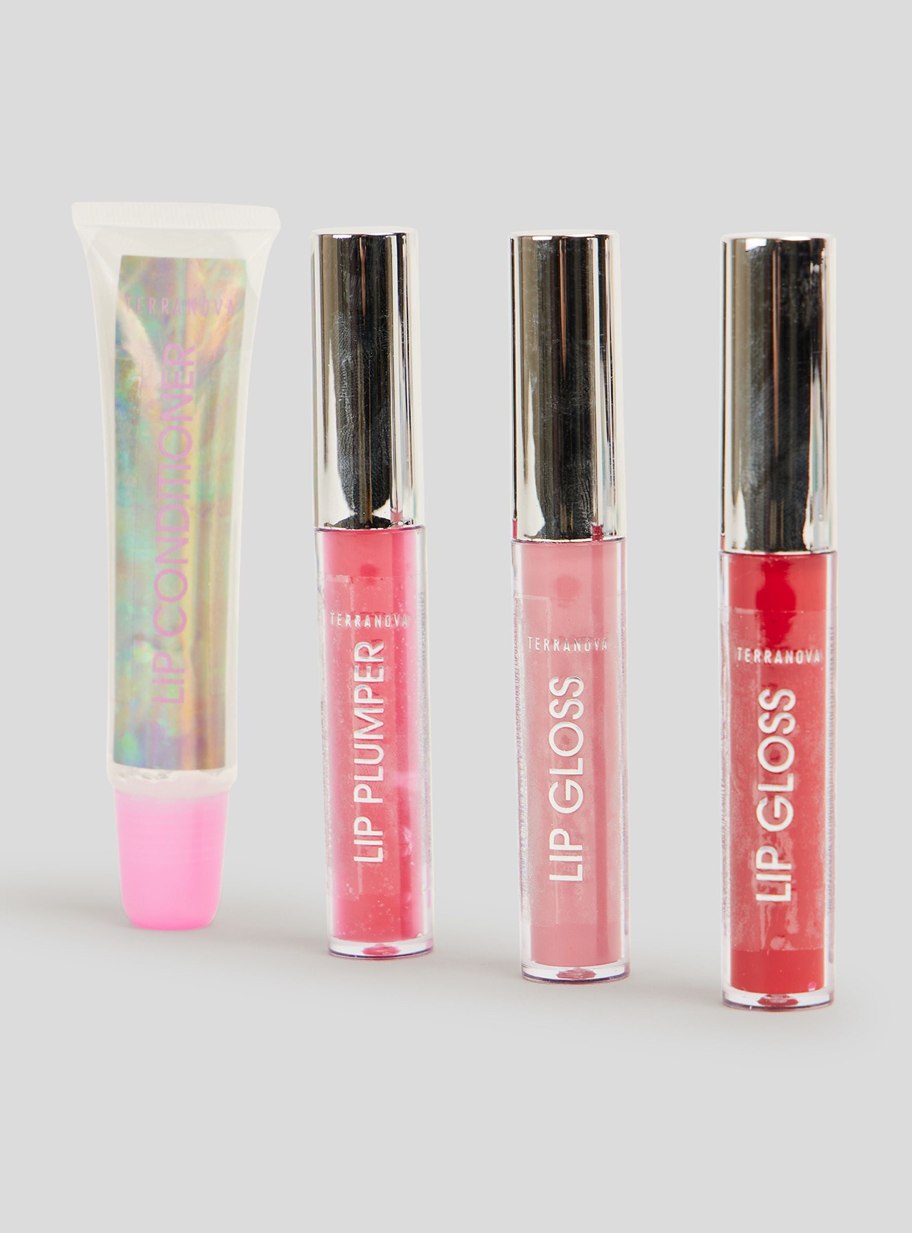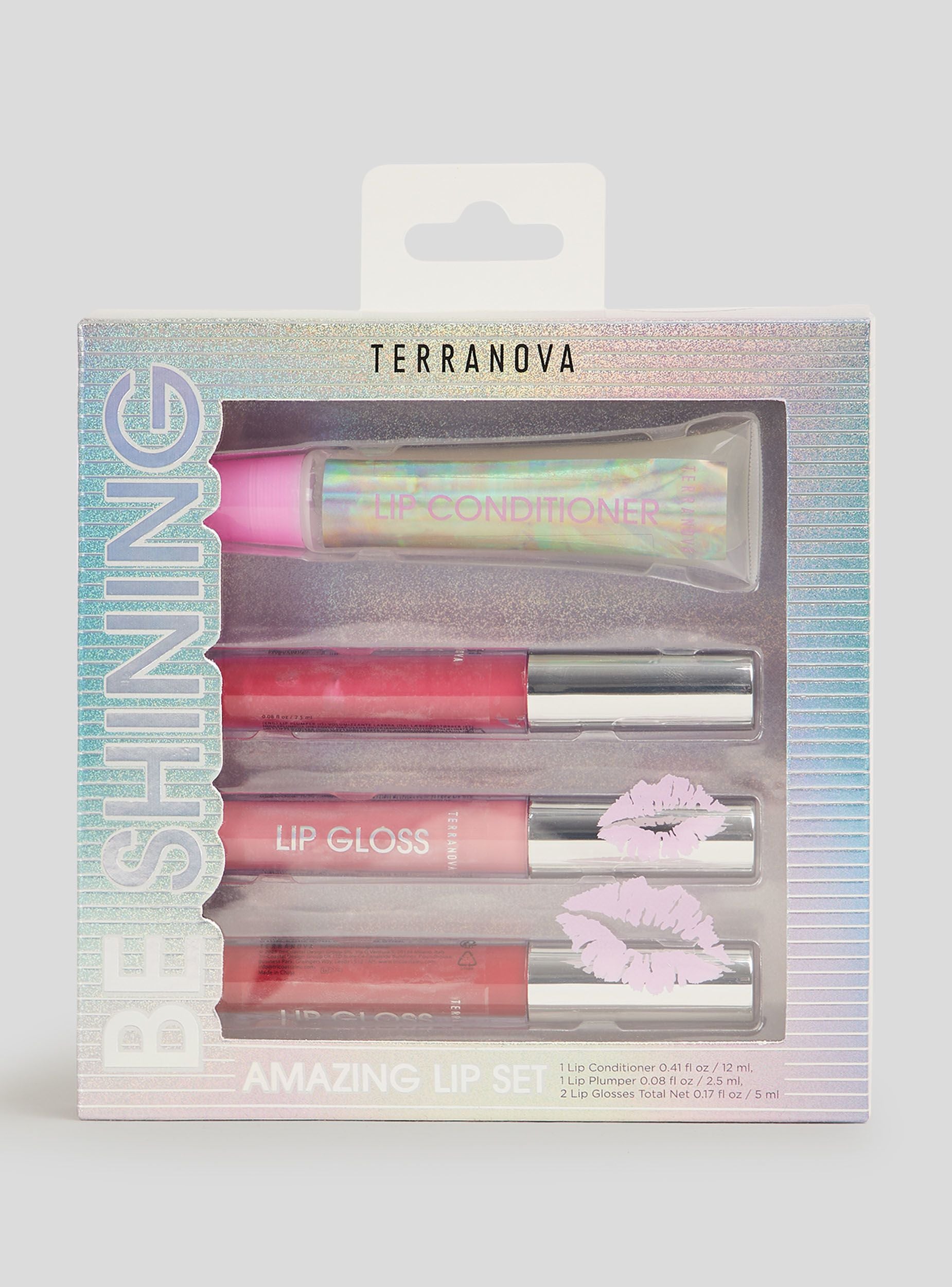 Set cosmetico da donna ideale per la cura e la valorizzazione delle labbra. Include un lip plumper, due lip gloss e un balsamo labbra, perfetti per ottenere labbra idratate, voluminose e luminose. Pratici da portare in borsa, sono adatti sia per un look quotidiano che per serate speciali. La confezione elegante lo rende anche un'ottima idea regalo.Dettagli