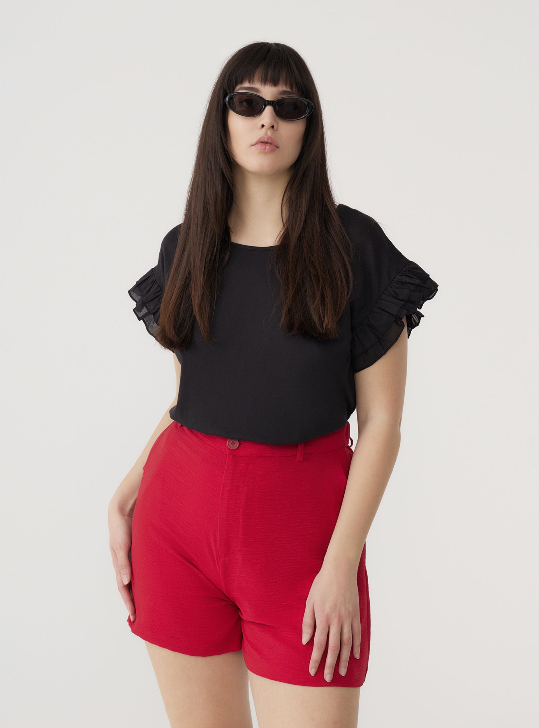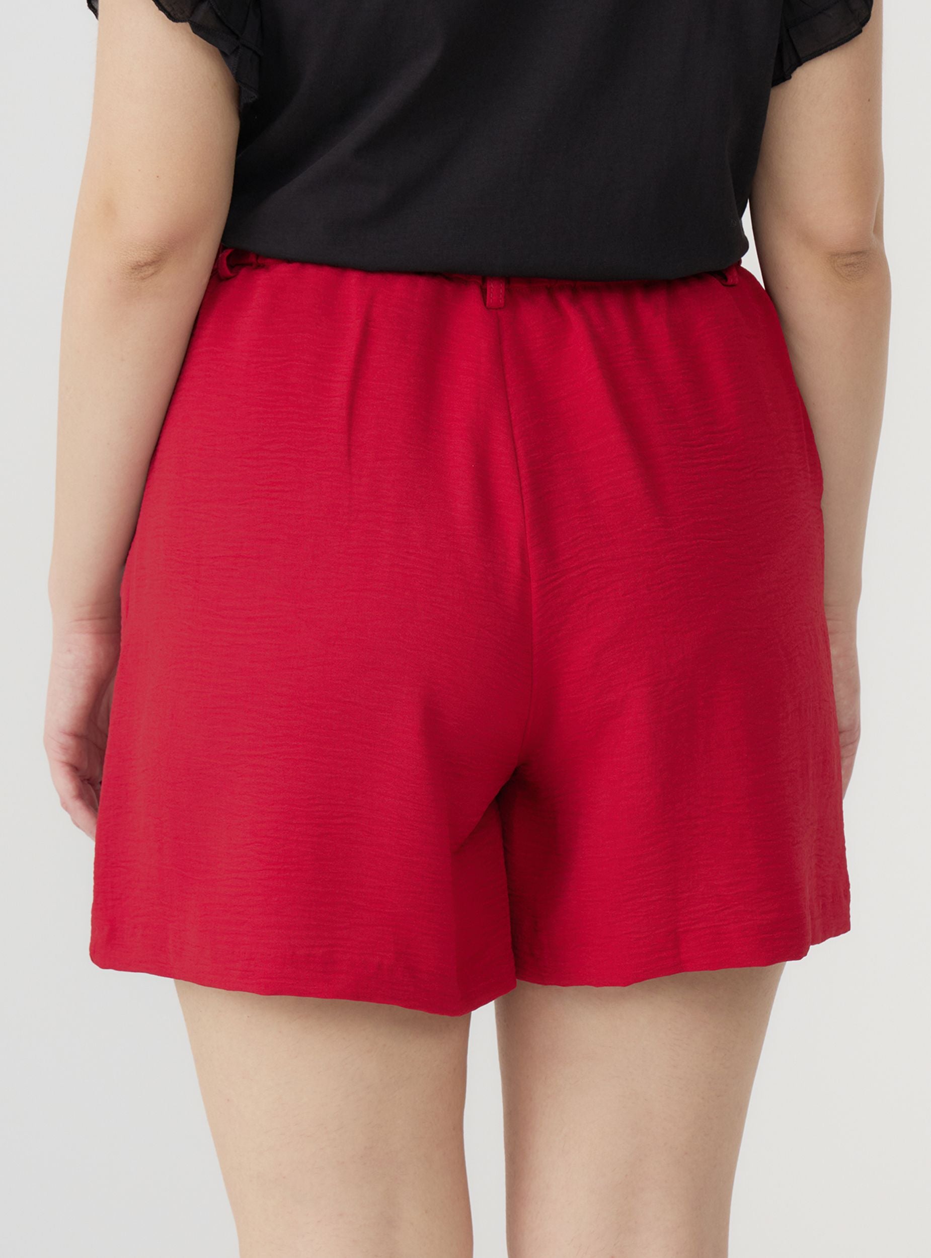 Pantaloncini da donna dal design minimal e versatile, perfetti per creare look casual e sofisticati. Il modello a tinta unita è valorizzato da una chiusura con zip e bottone, che garantisce una vestibilità comoda e sicura. I passanti in vita permettono di aggiungere una cintura per personalizzare l'outfit, mentre l’elastico posteriore assicura comfort extra. Ideali per il tempo libero e le giornate estive, si abbinano a una camicia e sandali per un look raffinato o a una t-shirt e sneakers per uno stile più dinamico.Dettagli