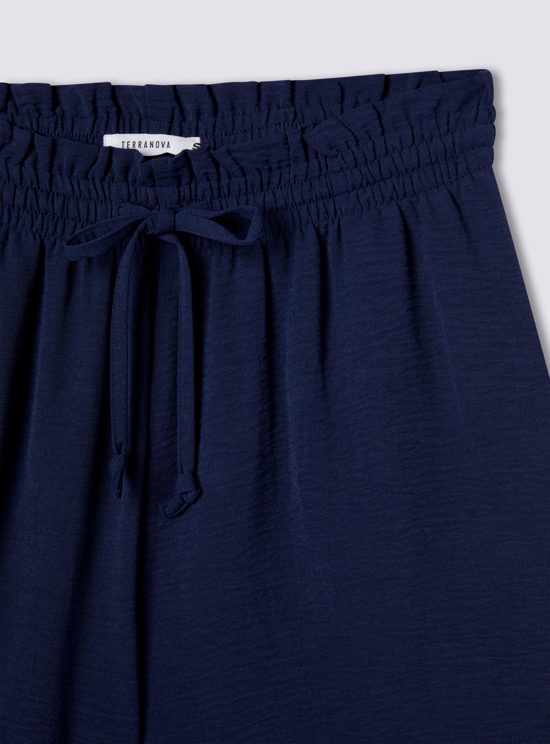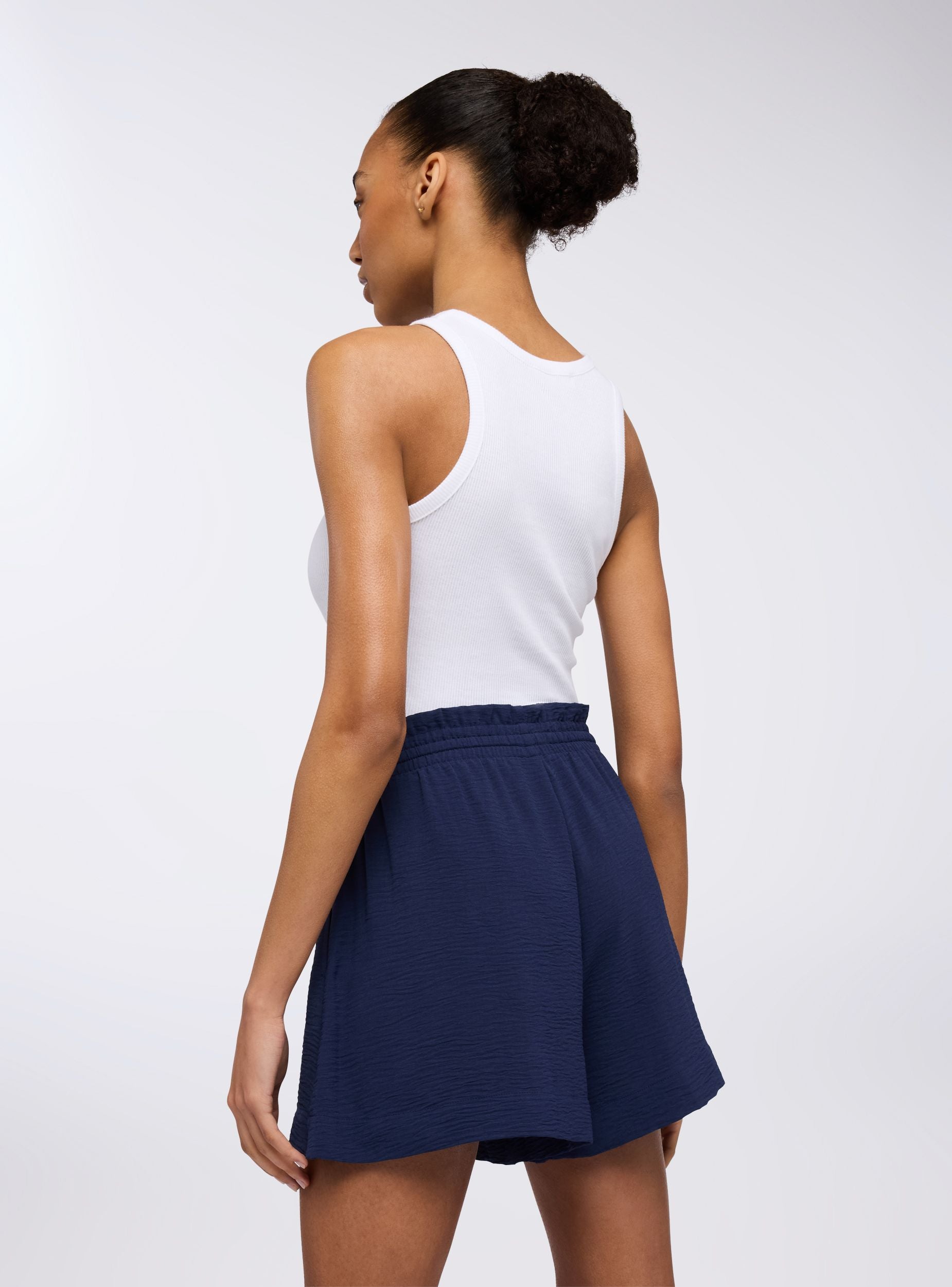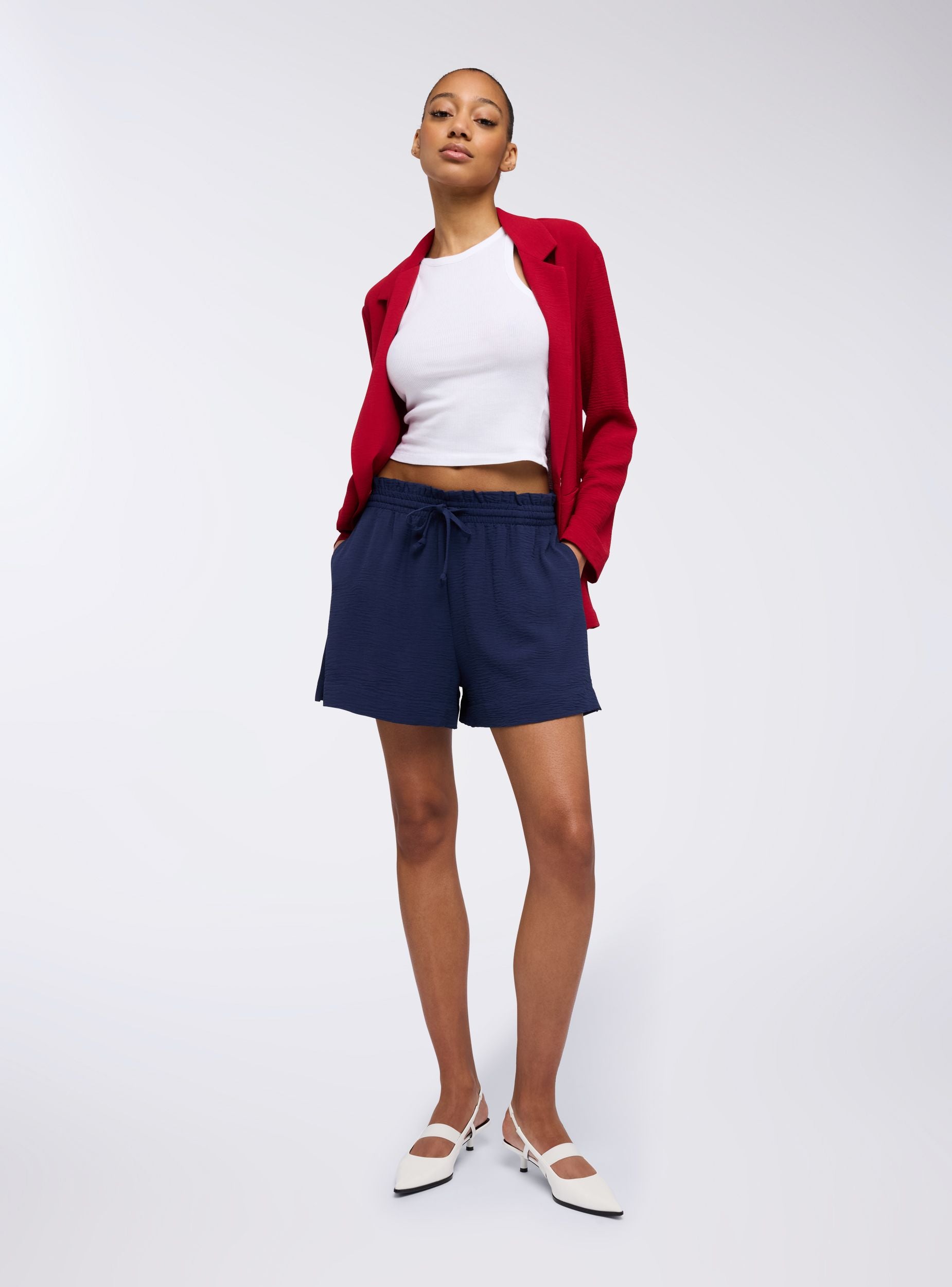 Pantaloncini da donna a tinta unita, con un design morbido che garantisce comfort e libertà di movimento. Il punto vita è elasticizzato e dotato di una coulisse regolabile. Le pratiche tasche laterali offrono spazio per piccoli oggetti, rendendo questi pantaloncini funzionali oltre che comodi. Ideali per un look casual e rilassato.Dettagli