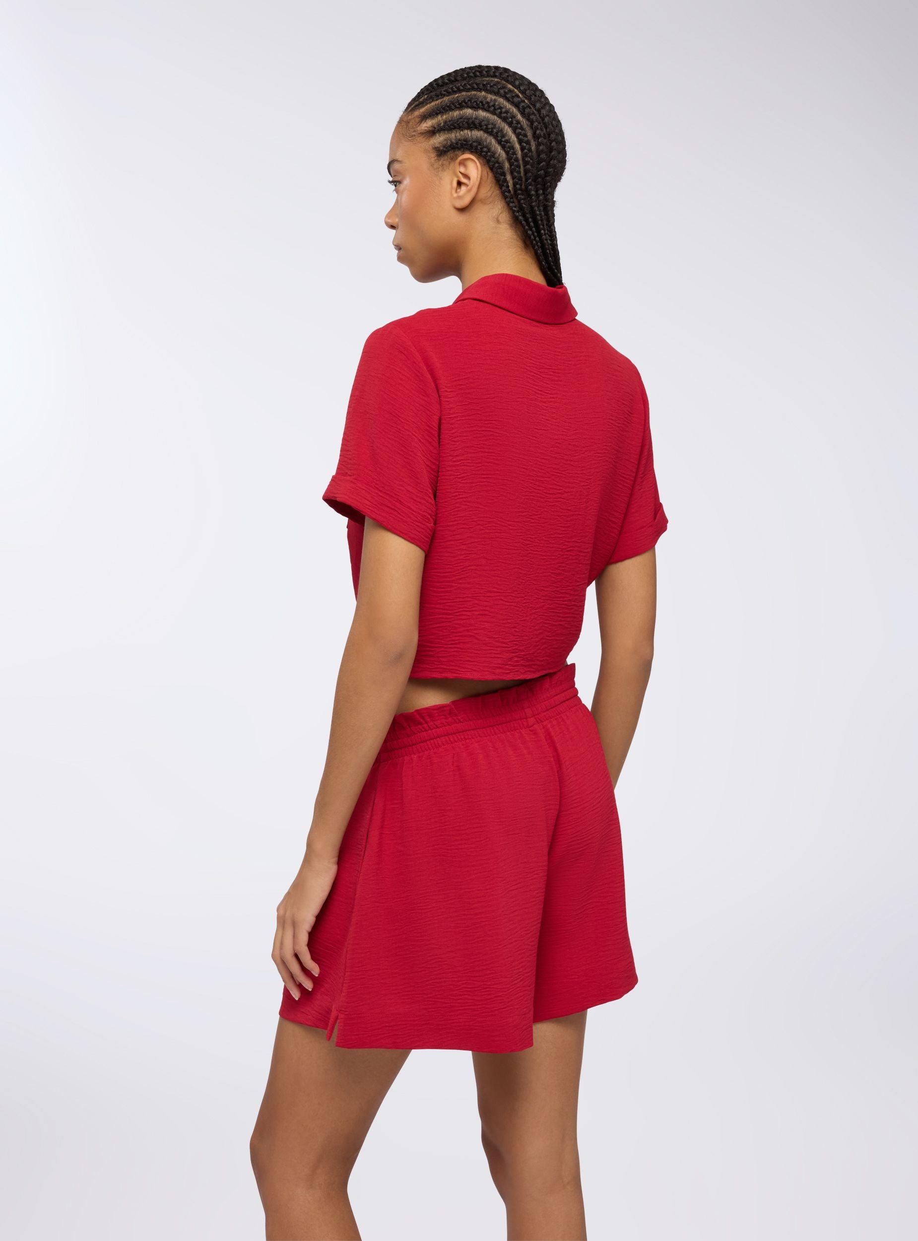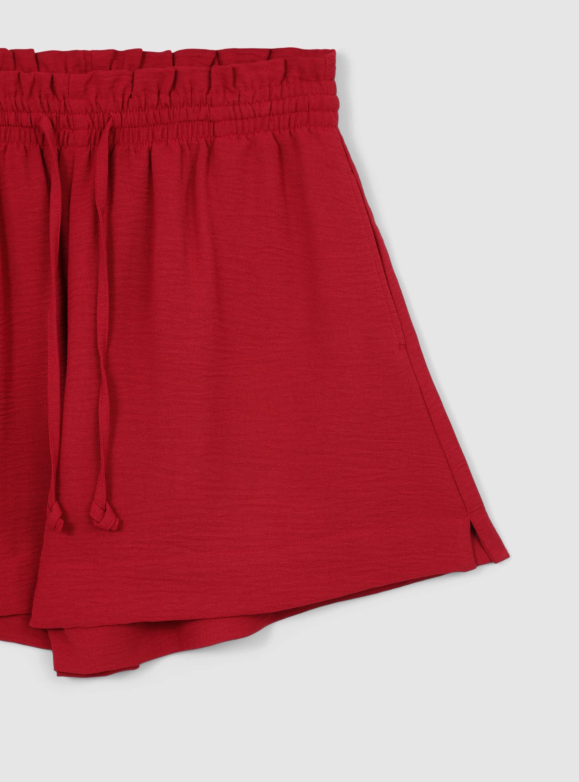 Pantaloncini da donna a tinta unita, con un design morbido che garantisce comfort e libertà di movimento. Il punto vita è elasticizzato e dotato di una coulisse regolabile. Le pratiche tasche laterali offrono spazio per piccoli oggetti, rendendo questi pantaloncini funzionali oltre che comodi. Ideali per un look casual e rilassato.Dettagli