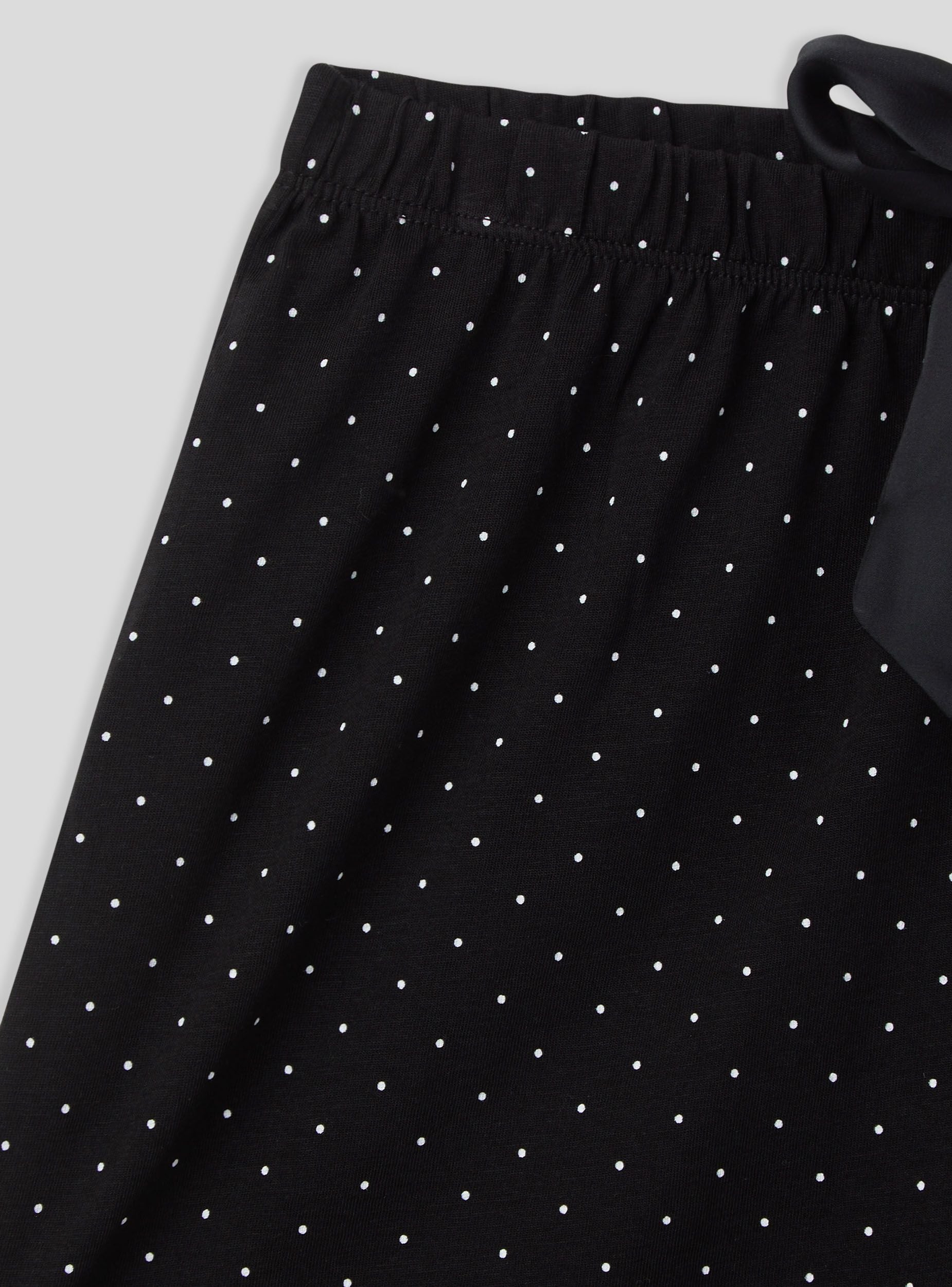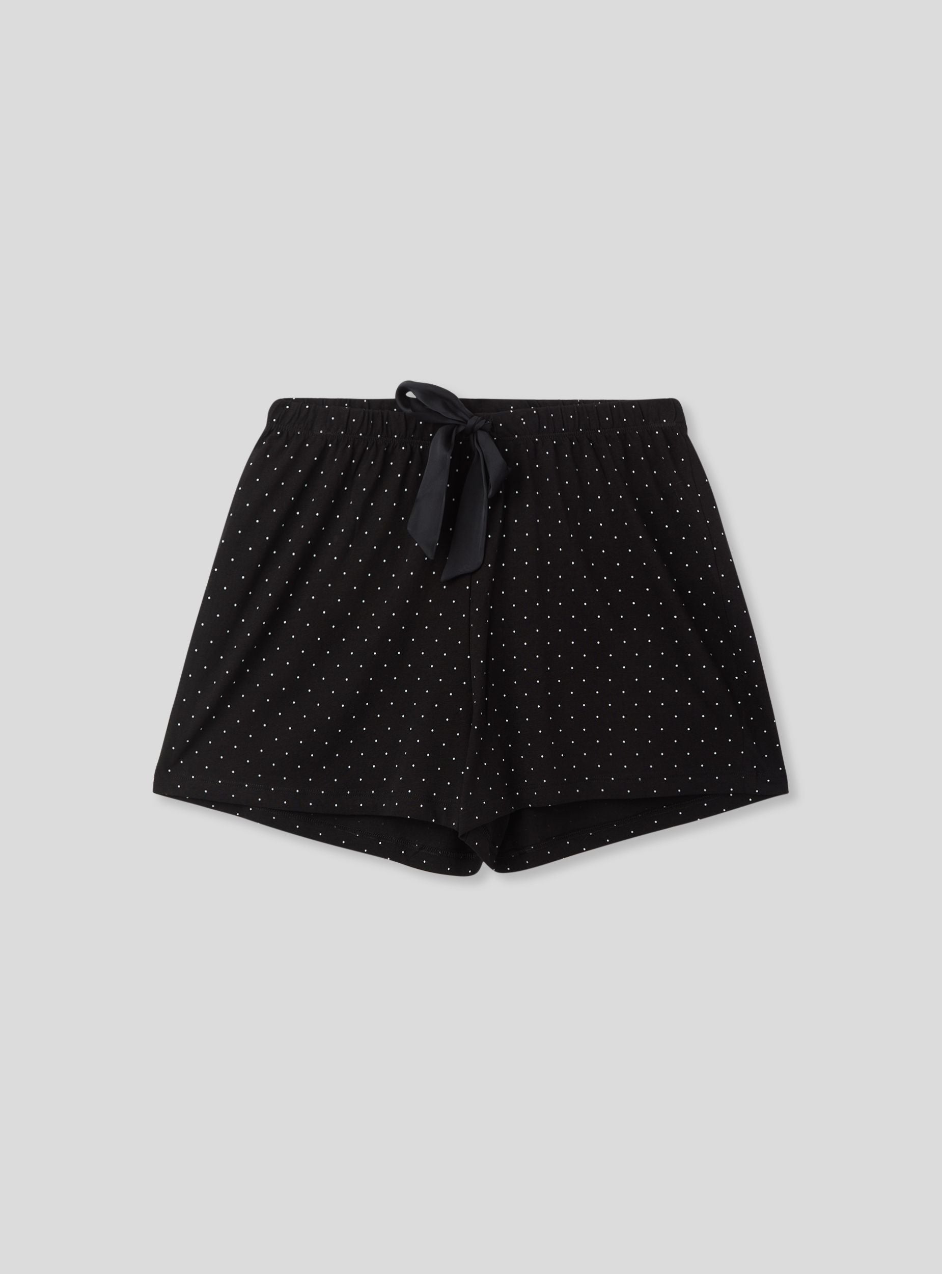 Pantaloncini del pigiama da donna corti, ideali per garantire comfort e leggerezza durante le ore di relax o il riposo. Il design a pois aggiunge un tocco femminile e vivace, mentre la pratica coulisse in vita consente una vestibilità personalizzata. Perfetti da abbinare a una canotta coordinata per un completo da notte elegante e confortevole, oppure con una t-shirt per un look informale da casa.Dettagli