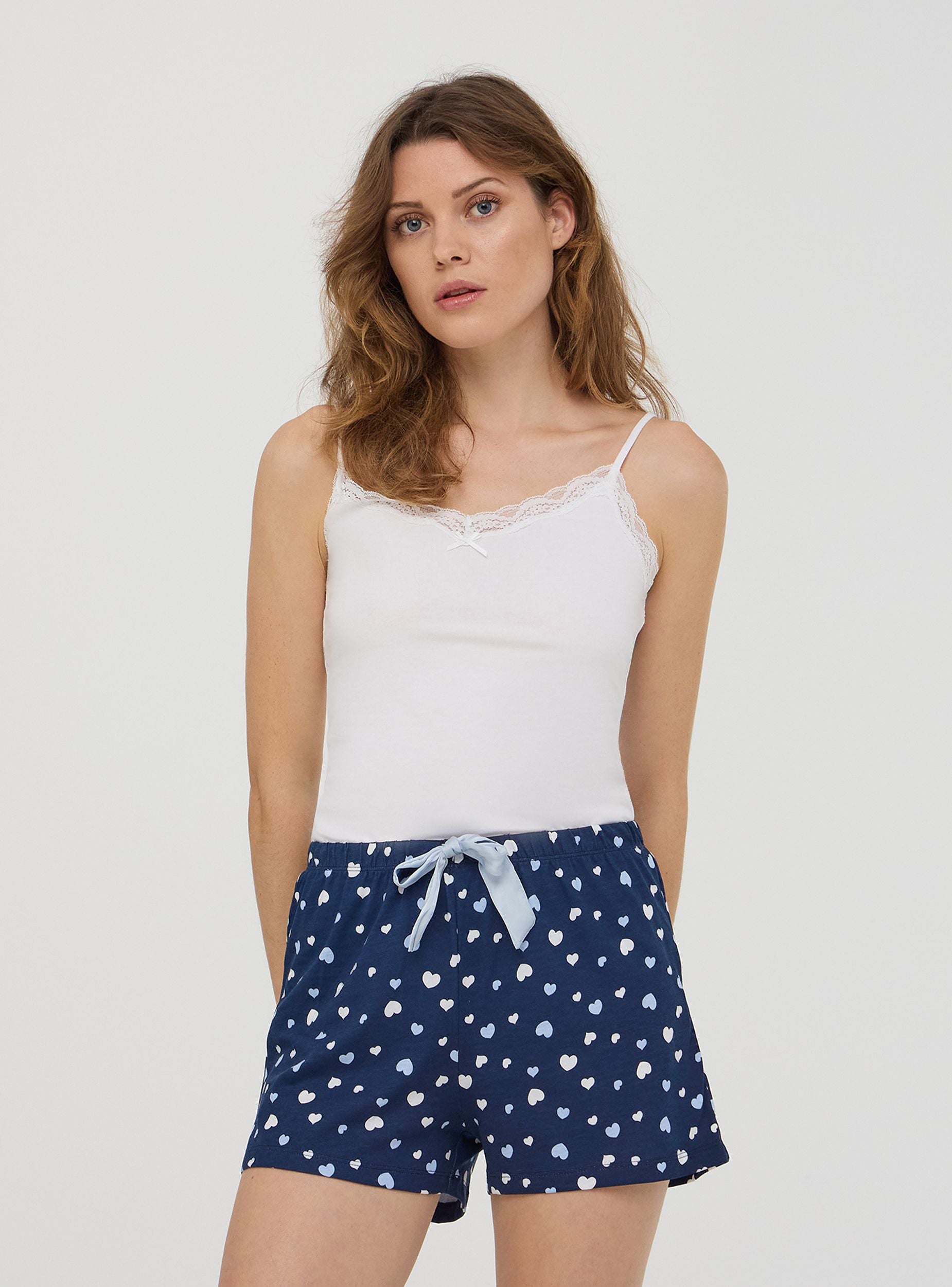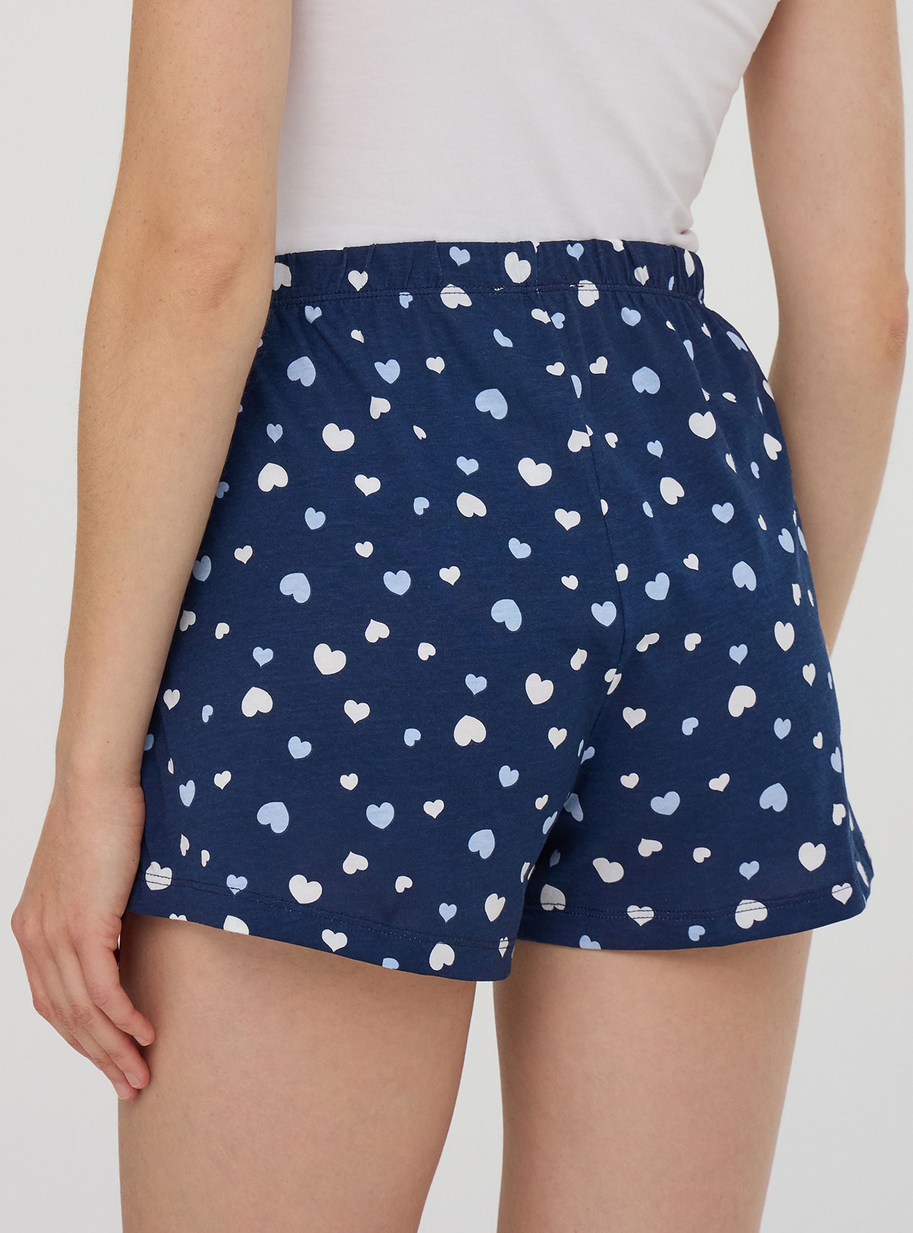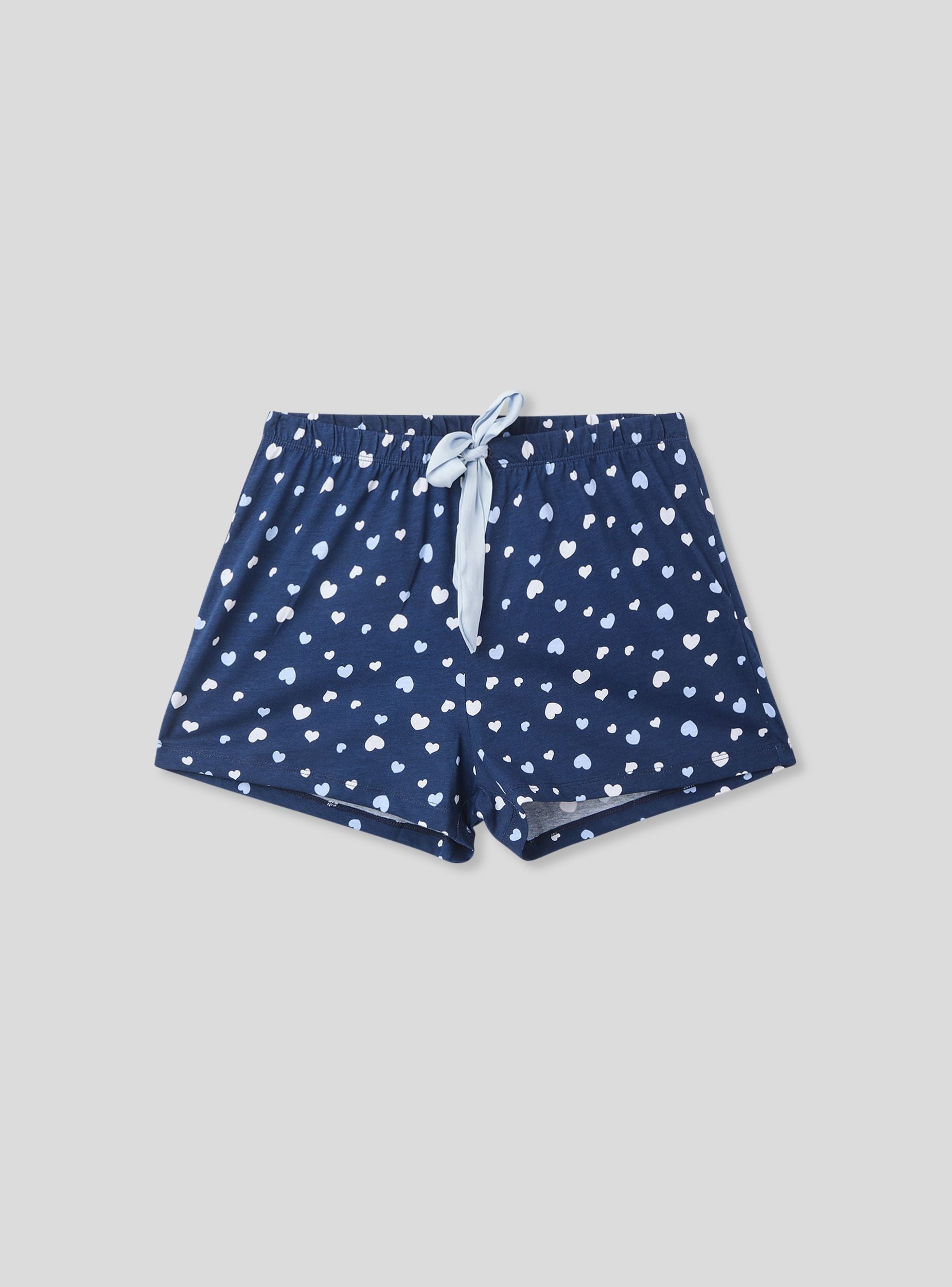 Pantaloncini del pigiama da donna perfetti per notti comode e rilassanti. Caratterizzati da una fantasia romantica di cuori, sono corti e dotati di una pratica coulisse in vita per una vestibilità regolabile. Ideali per un look femminile e confortevole, pensati per le serate di relax in casa.Dettagli