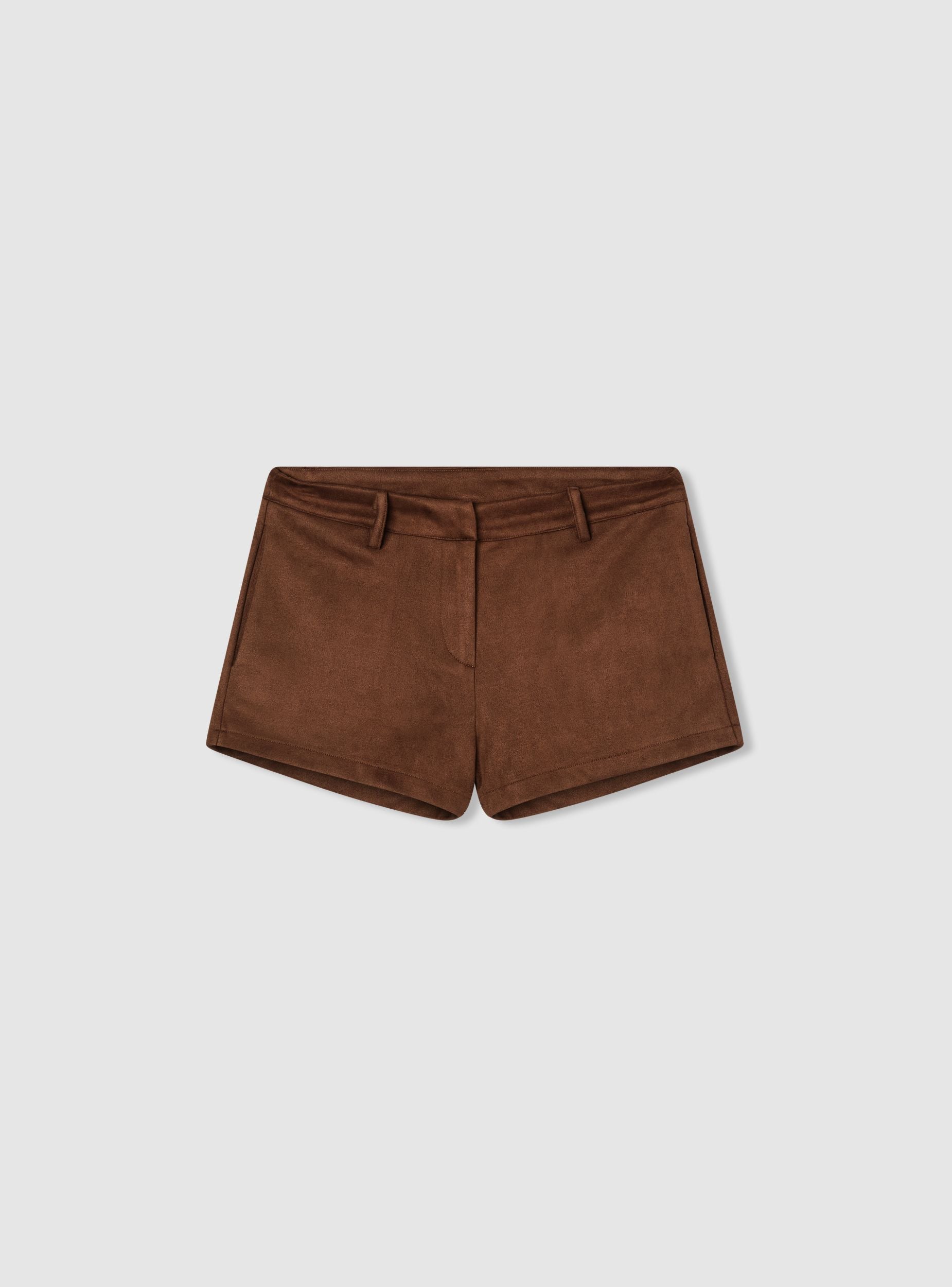 Shorts da donna effetto scamosciato a tinta unita con vita regolare e passanti per cintura. Chiusura anteriore nascosta con gancio e cerniera. La vestibilità regular e la linea corta valorizzano la figura, ideali con camicie morbide o top aderenti per il tempo libero o serate informali. Facili da abbinare con blazer o biker per un outfit contemporaneo.Dettagli