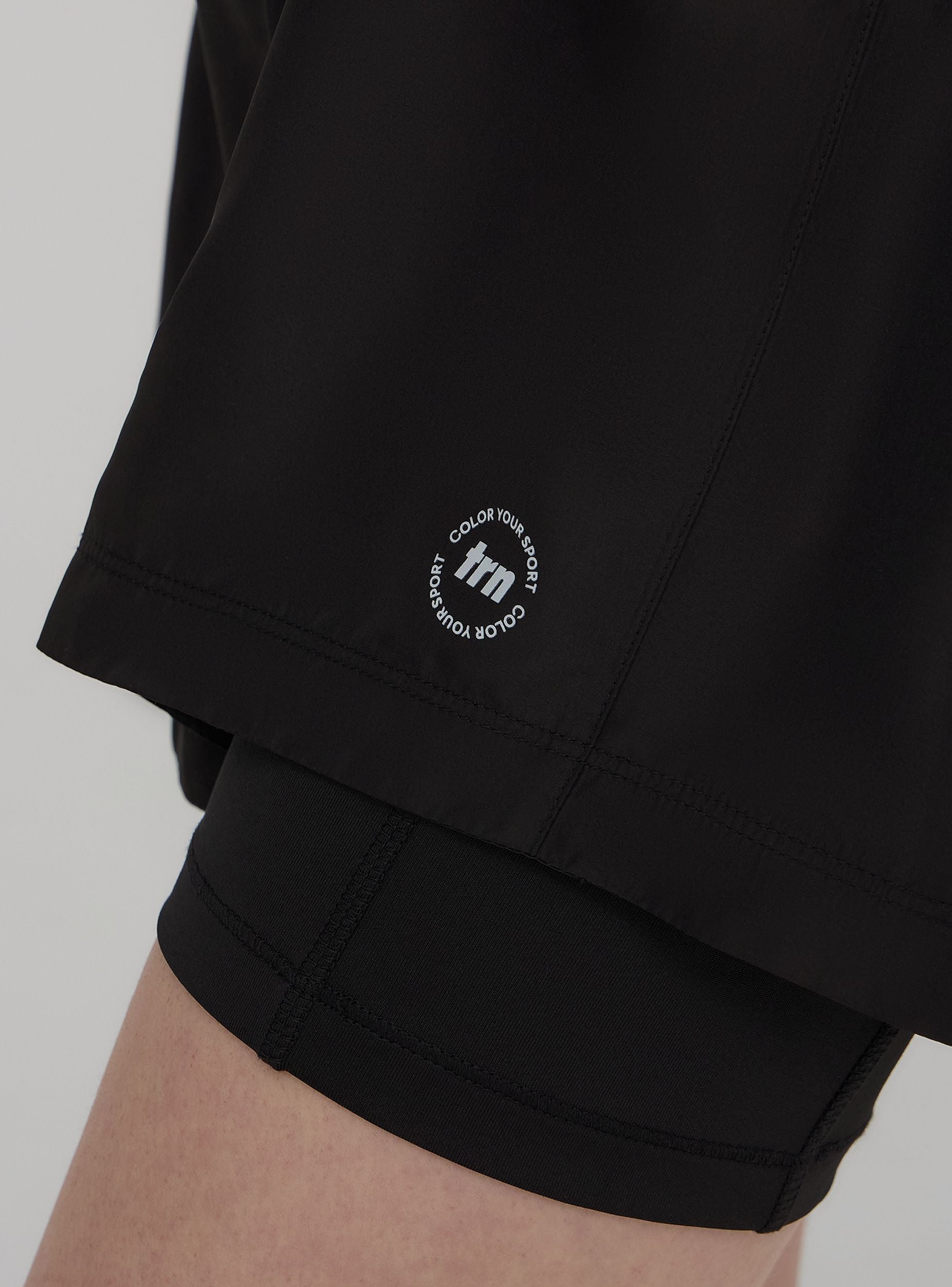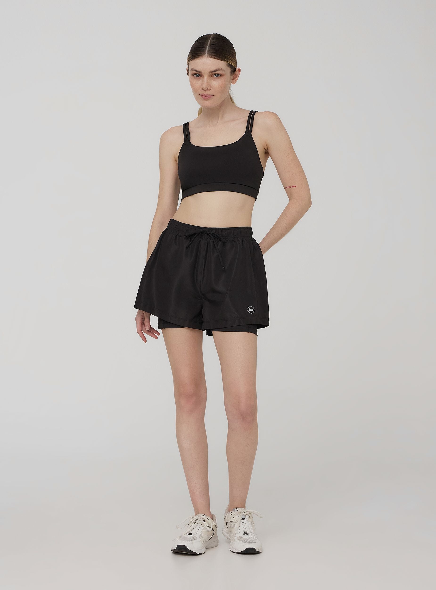 Pantaloncini corti da donna a tinta unita, con design che include una pratica coulisse regolabile in vita per un maggiore comfort. Il modello presenta tasche funzionali sui lati, offrendo comodità e praticità, mentre la struttura interna incorpora leggings per un effetto avvolgente e supporto durante il movimento. Questi pantaloncini sono ideali per attività sportive o momenti di relax, garantendo comfort e libertà di movimento in ogni occasione. Linea Active.Dettagli