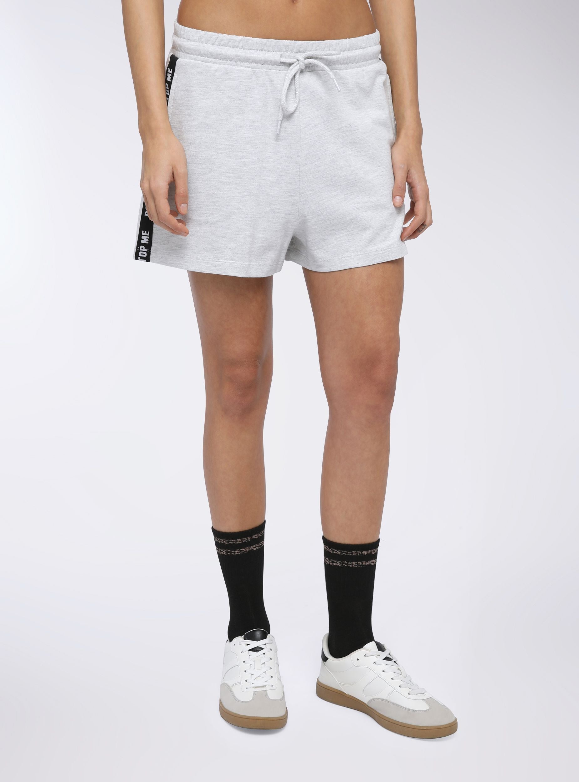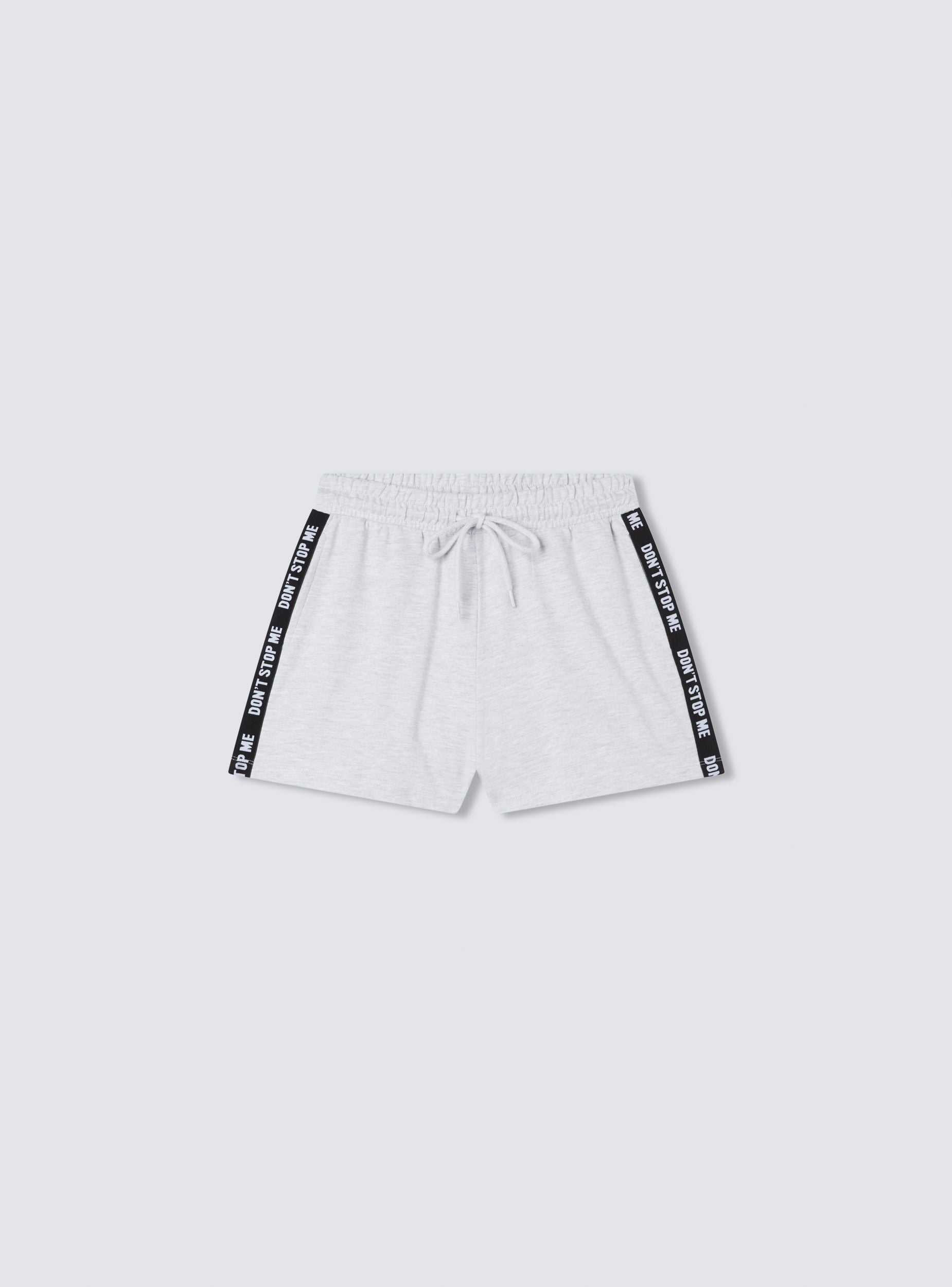 Pantaloncini della tuta leggeri da donna, ideali per un look sportivo e dinamico. Il design a vita alta assicura comfort e supporto, mentre la coulisse regolabile permette una vestibilità su misura. Le bande laterali con scritte aggiungono un tocco di carattere e modernità. Perfetti per il tempo libero e l’attività fisica, si abbinano a una t-shirt e sneakers per un outfit sportivo, oppure a un top aderente e sandali per un look casual e trendy.Dettagli