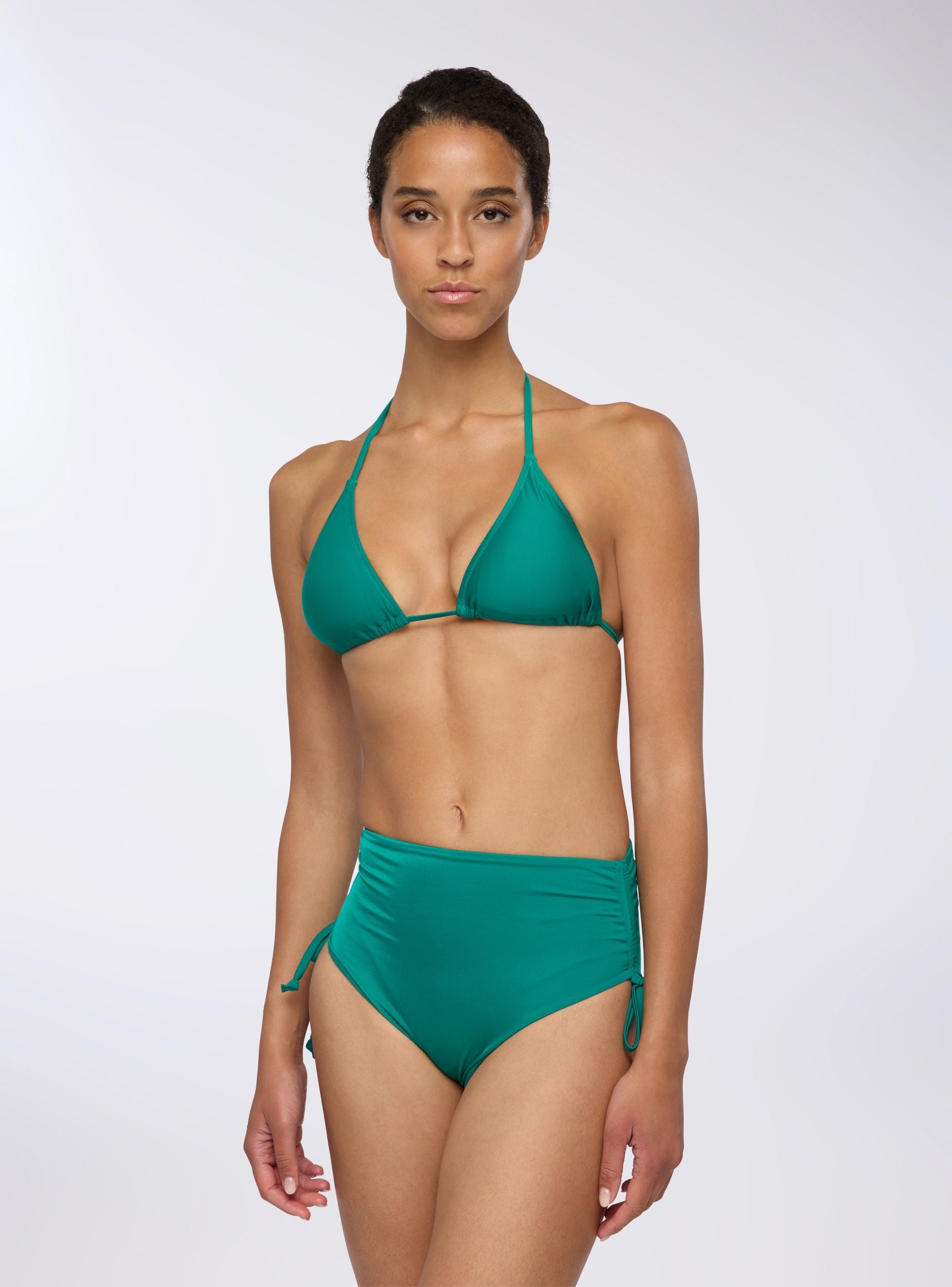 Slip da donna per bikini perfetto per una giornata al mare o in piscina. Caratterizzato da un design tinta unita, questo modello presenta una vita alta regolabile grazie ai laccetti laterali, che permettono di adattare la vestibilità e creare diverse opzioni di stile. Ideale per chi desidera comfort e versatilità senza rinunciare a un tocco di personalità, è un capo essenziale per completare il proprio look estivo.Dettagli