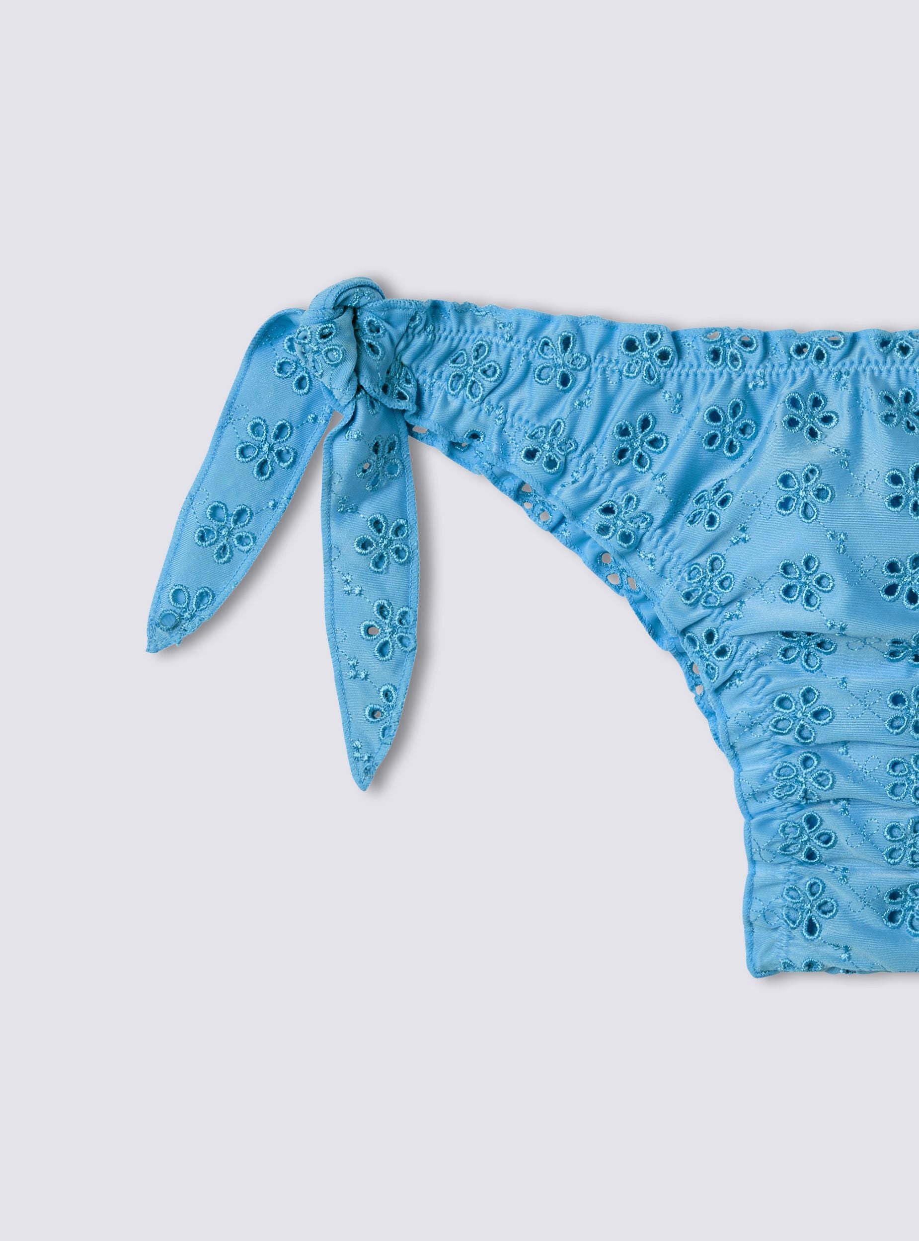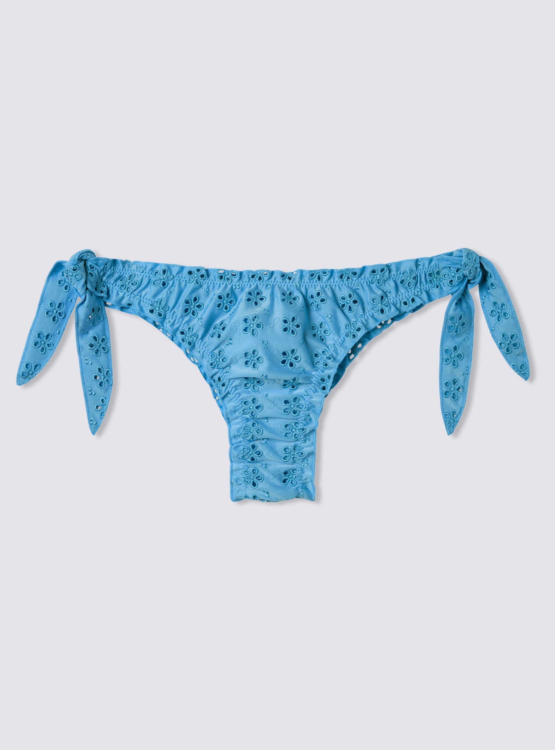Slip da donna per bikini, perfetto per un look romantico e femminile in spiaggia o in piscina. Il design brasiliana valorizza la silhouette, mentre il ricamo sangallo aggiunge un tocco raffinato. La tinta unita lo rende versatile e i laccetti laterali permettono una regolazione personalizzata. Ideale da abbinare a un top coordinato e un copricostume leggero per un outfit estivo chic e sofisticato.Dettagli
