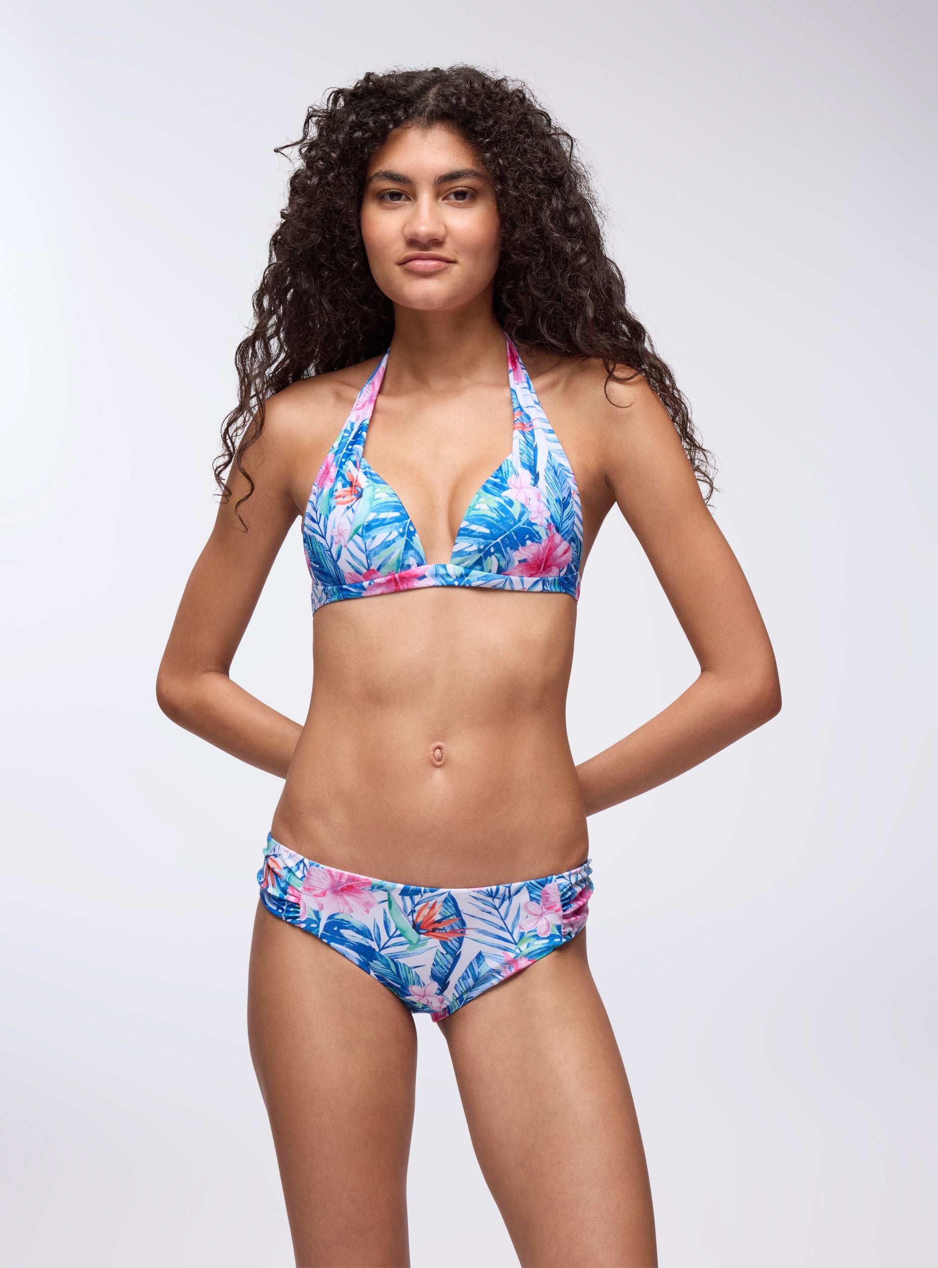 Slip da donna per bikini, ideale per un look esotico e raffinato in spiaggia o in piscina. La fantasia tropical aggiunge un tocco vivace e colorato, perfetto per chi ama distinguersi. Il design valorizza la silhouette, offrendo comfort e stile. Perfetto da abbinare a un top coordinato e un copricostume leggero per un outfit estivo fresco e glamour.Dettagli