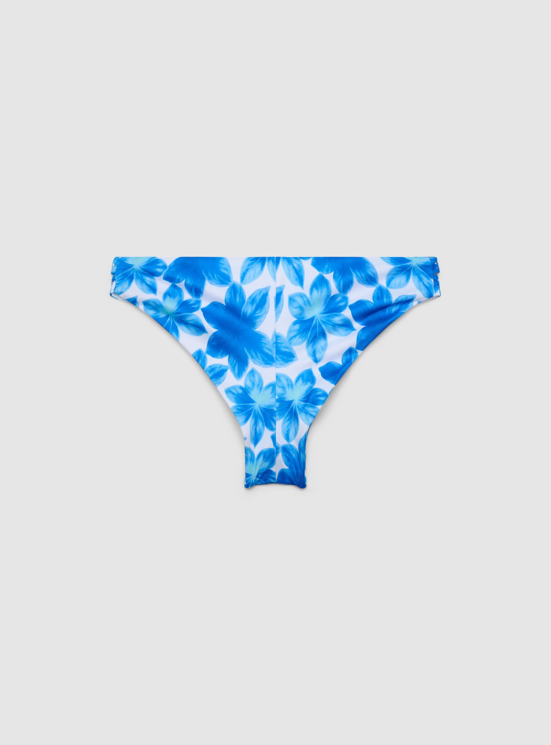 Slip bikini da donna con stampa fiori e applicazioni strass per un tocco effetto luccicante. Modello brasiliana con dettagli cut out e fascette laterali che valorizzano la silhouette. Linea elasticizzata pensata per mare e piscina, da abbinare a un reggiseno bikini coordinato e a un copricostume leggero per un look da vacanza curato.Dettagli
