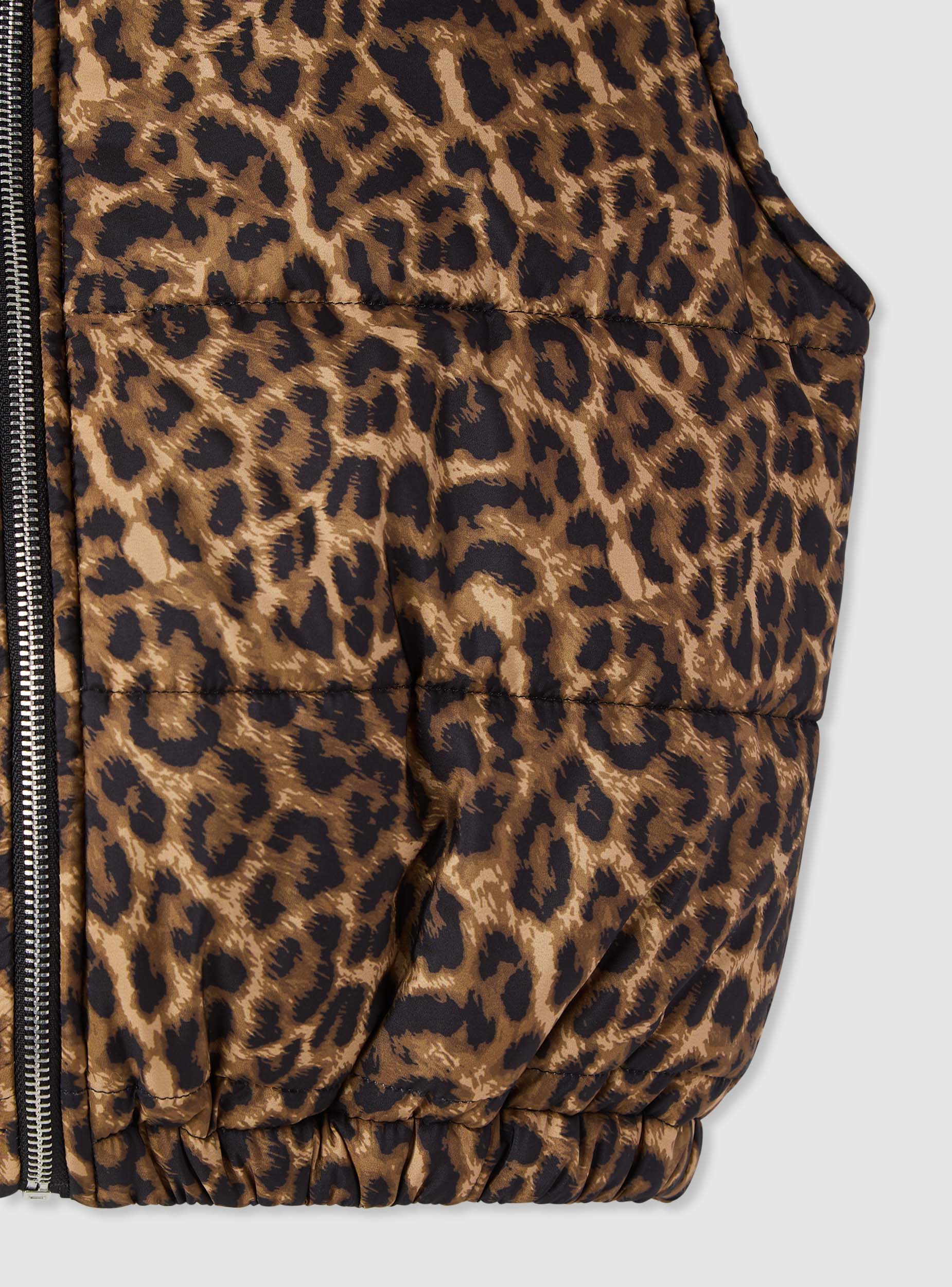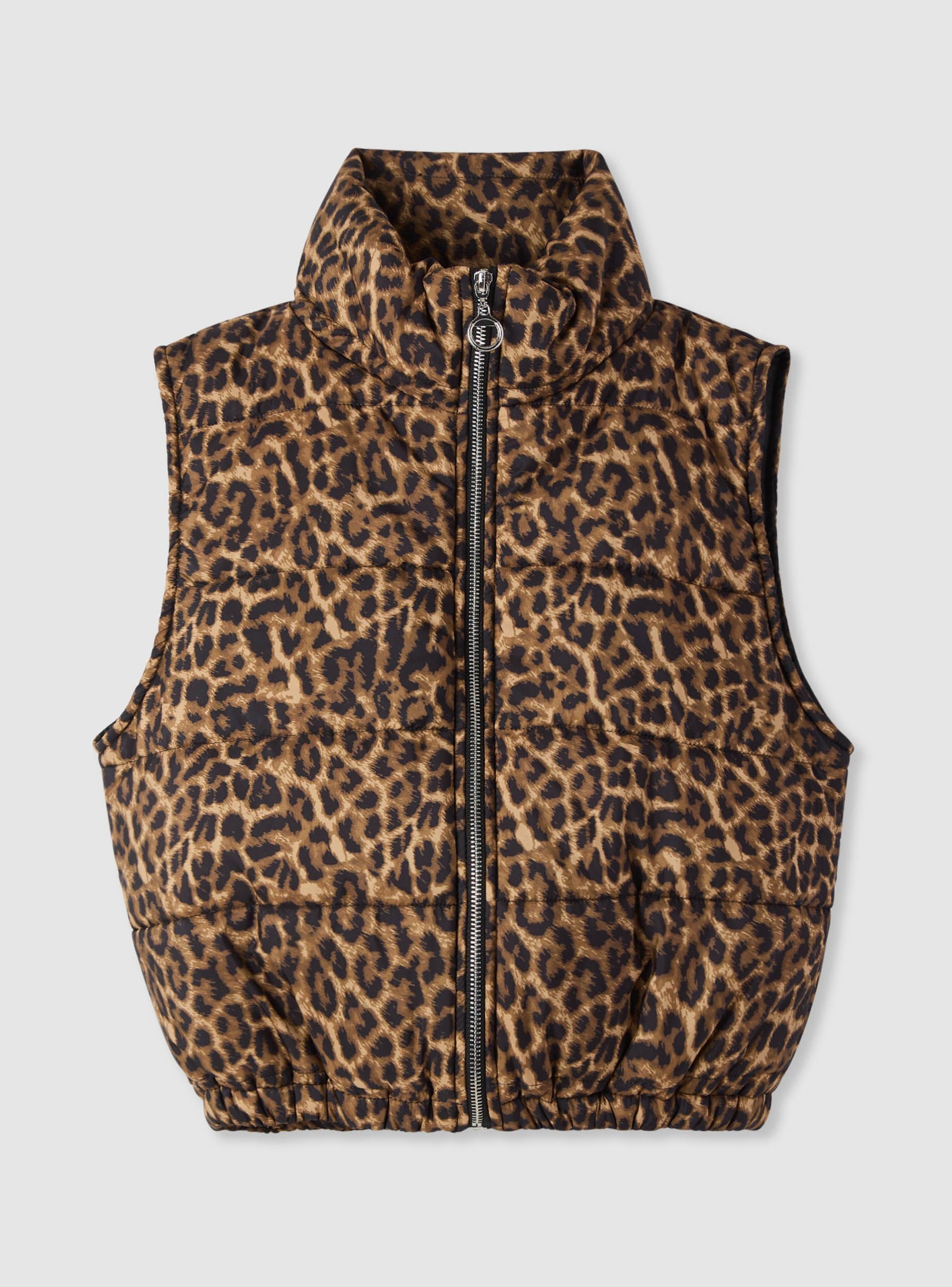 Smanicato da donna fantasia animalier, ideale per completare look casual o trendy nelle mezze stagioni. Collo alto e chiusura frontale con zip. Fondo con bordo elasticizzato che assicura una vestibilità confortevole e valorizza la silhouette. Perfetto sopra maglietta o felpa per creare sovrapposizioni pratiche e di carattere, aggiunge un tocco deciso a jeans e pantaloni.Dettagli