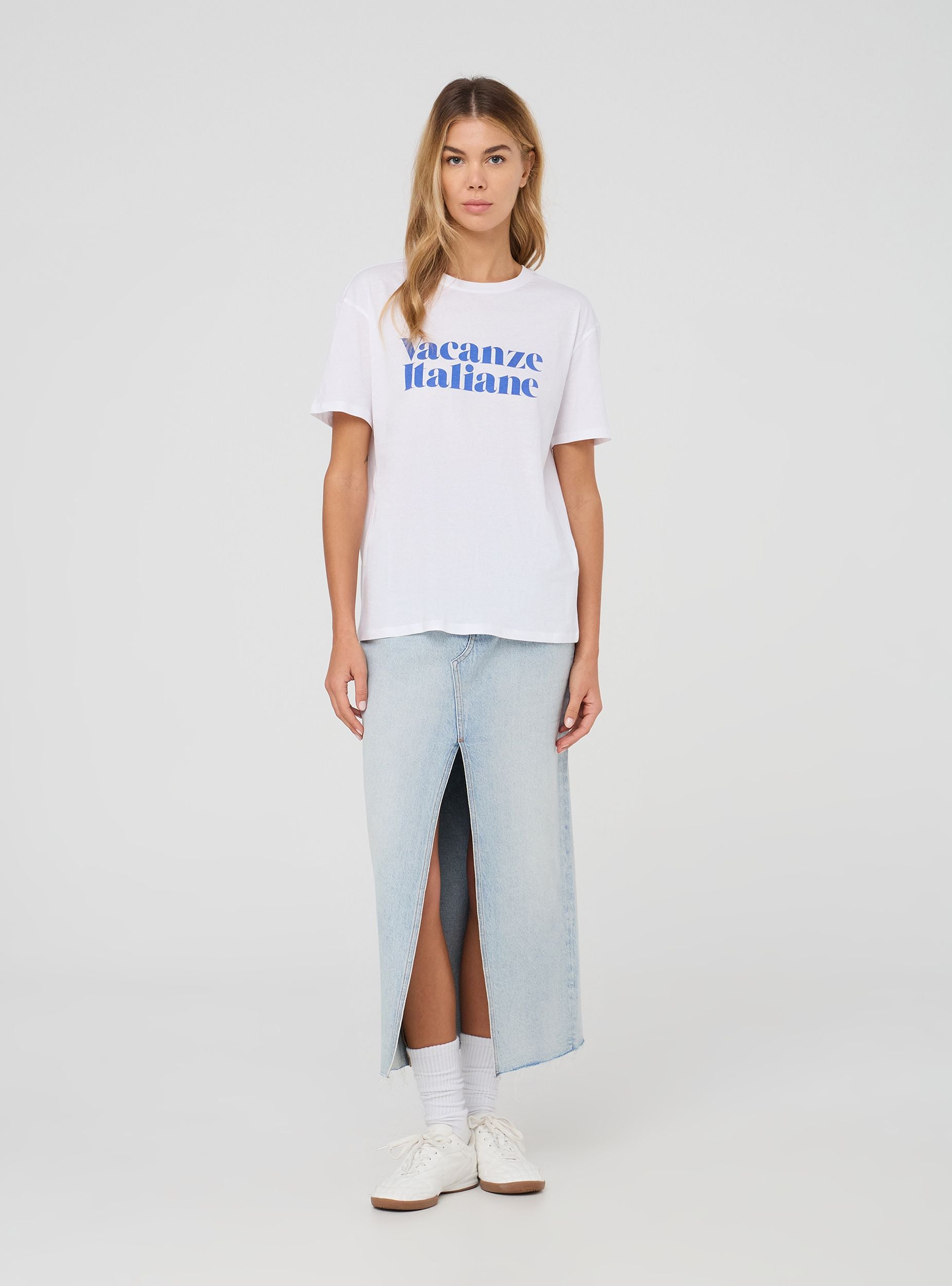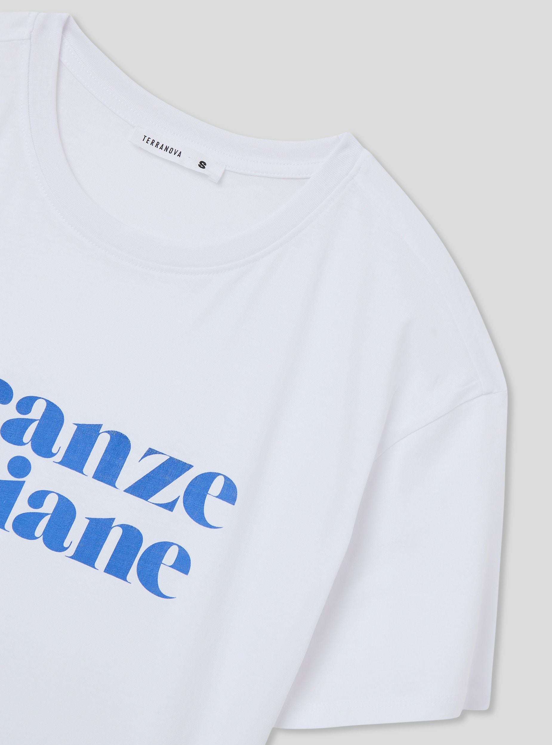 Maglietta da donna dal taglio ampio, con girocollo e maniche corte che offrono un look rilassato e confortevole. Caratterizzata da una scritta divertente e d'impatto sul davanti, questa maglietta è perfetta per chi cerca un capo casual e di tendenza. Ideale per il tempo libero, la sua vestibilità comoda la rende un'ottima scelta per outfit quotidiani all'insegna della semplicità e dello stile.Dettagli