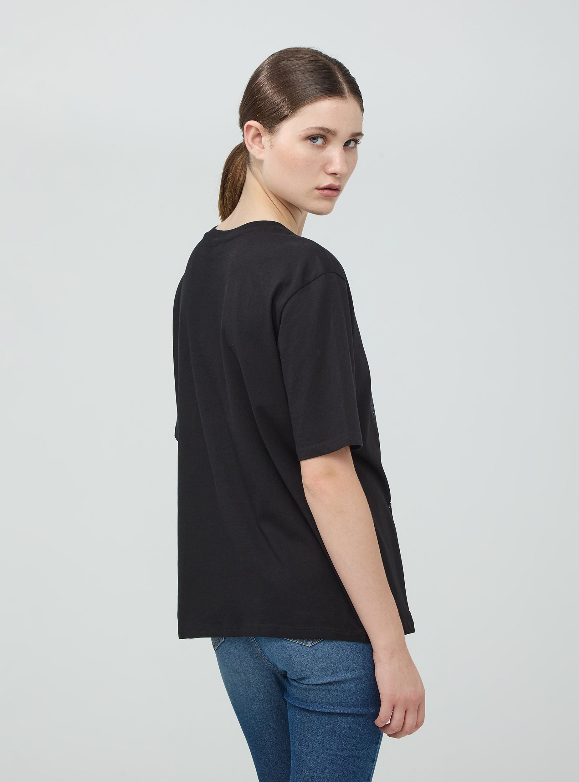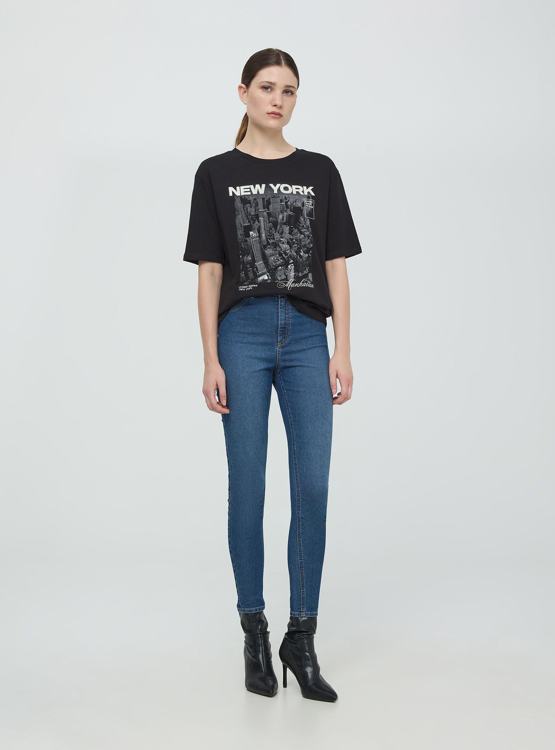 Maglietta da donna con stampa fotografica New York. Modello girocollo con maniche corte. Vestibilità ampia.Dettagli