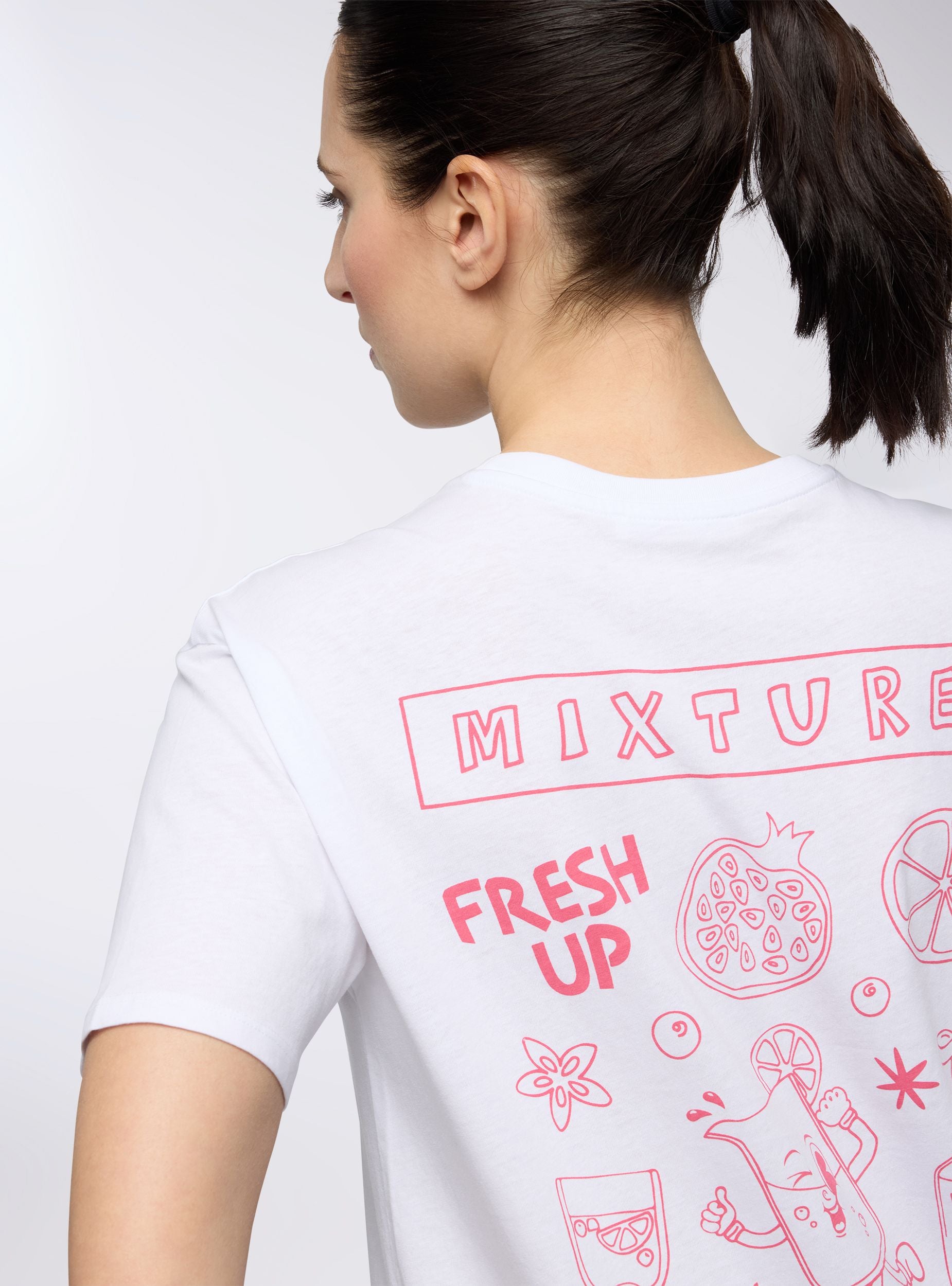 Maglietta da donna ideale per un look casual e dinamico, perfetta per il tempo libero o per un outfit informale. Caratterizzata da una vestibilità ampia, presenta un design con stampa grafica a tema drink piccola sul davanti e grande sul retro, e un girocollo. Una scelta versatile per chi cerca comfort e stile in ogni occasione.Dettagli