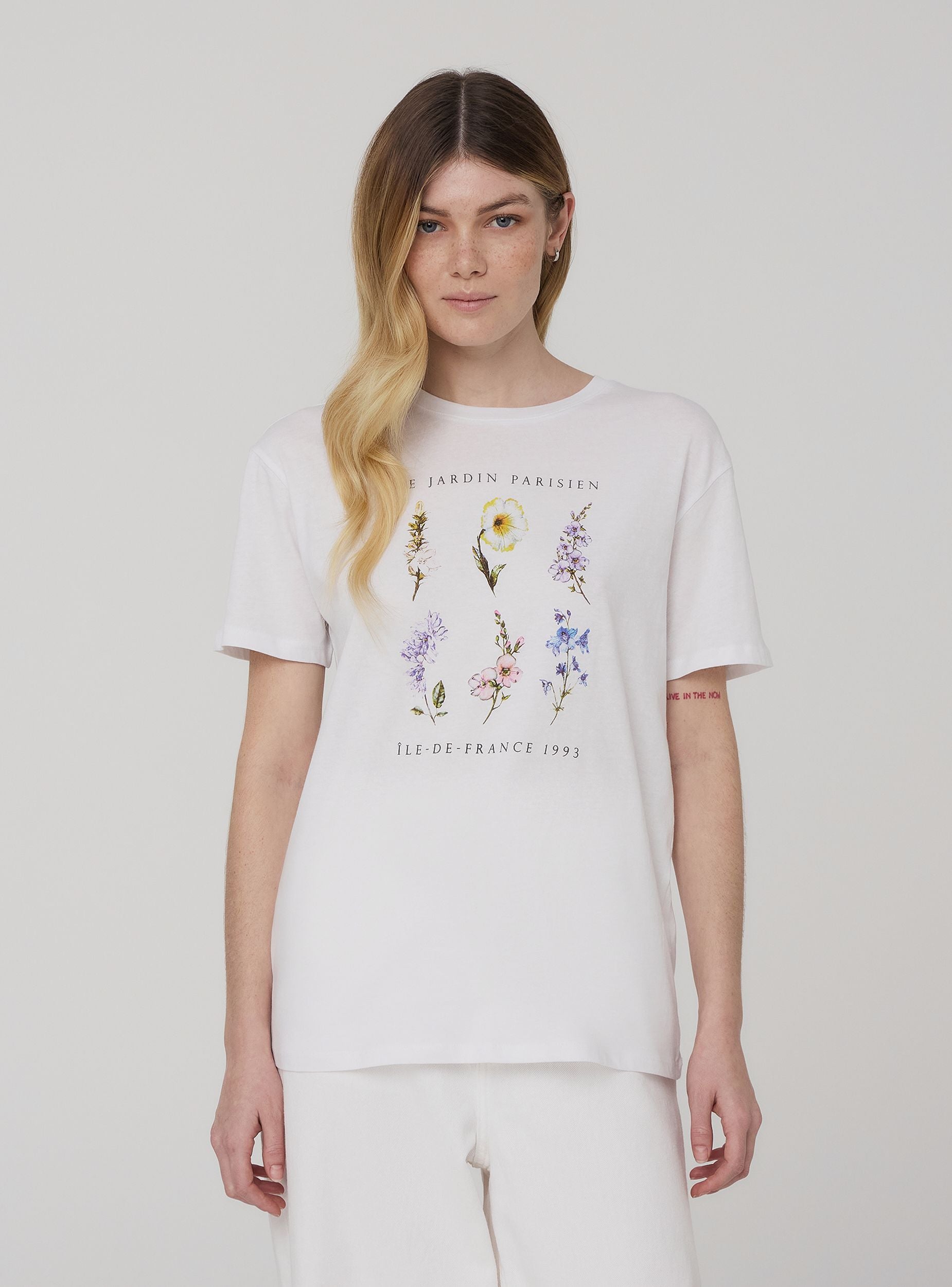 Maglietta da donna dal taglio ampio, ideale per chi cerca un capo comodo e casual. Le maniche corte e il girocollo rendono questa maglietta perfetta per essere indossata durante le giornate più calde, offrendo una vestibilità rilassata. Sul davanti spicca una stampa floreale, accompagnata da scritte decorative, che dona un tocco femminile e romantico al design. La stampa aggiunge personalità al capo rendendolo ideale per abbinamenti sia casual che più curati. Una maglietta che unisce comfort e stile, perfetta per completare un look fresco e disinvolto.Dettagli