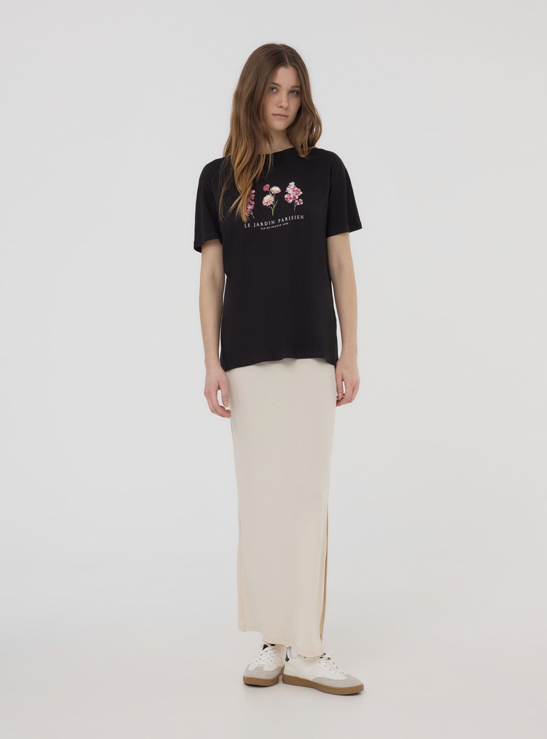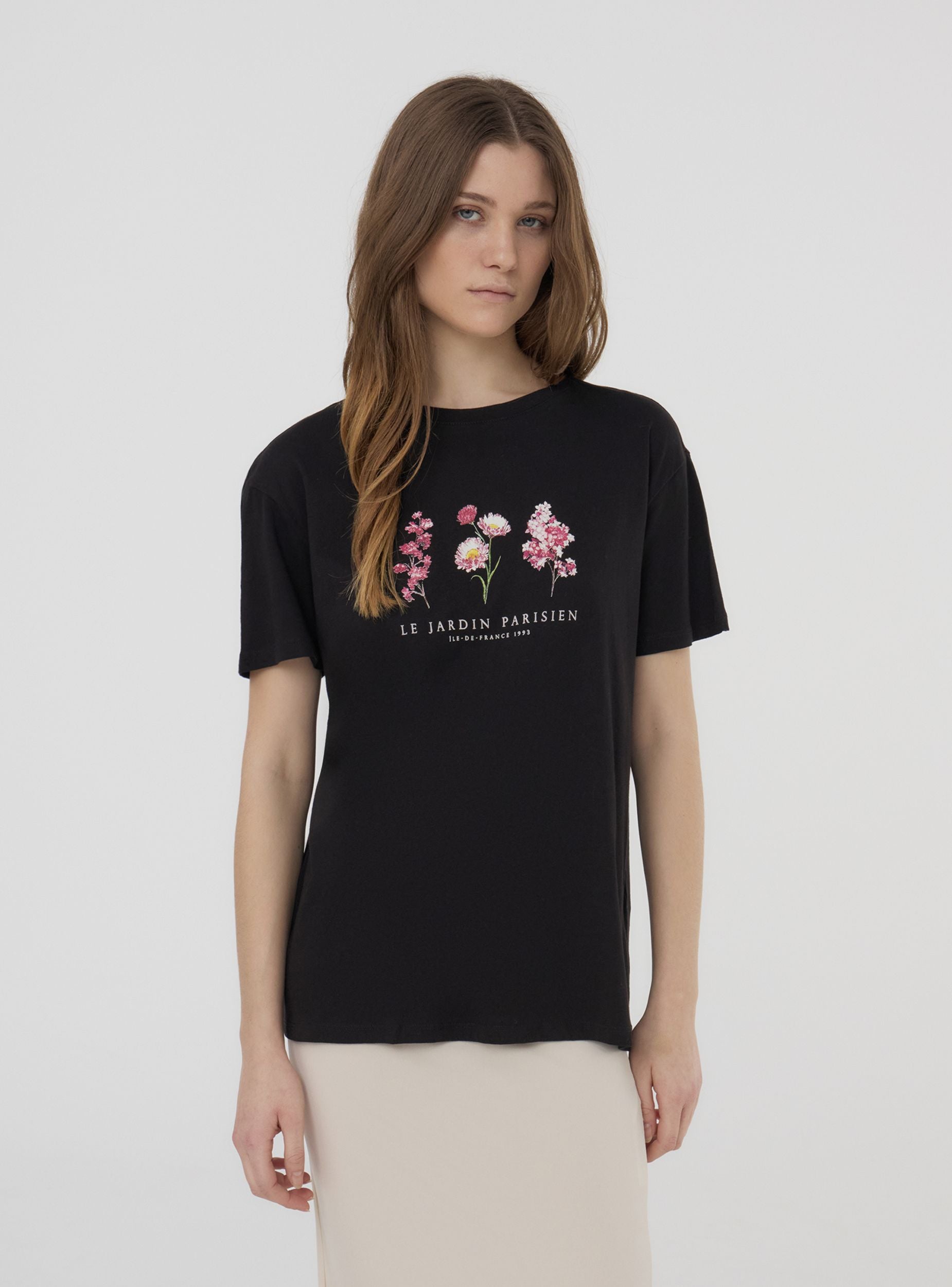 Maglietta da donna dal taglio ampio, ideale per chi cerca un capo comodo e casual. Le maniche corte e il girocollo rendono questa maglietta perfetta per essere indossata durante le giornate più calde, offrendo una vestibilità rilassata. Sul davanti spicca una stampa floreale, accompagnata da scritte decorative, che dona un tocco femminile e romantico al design. La stampa aggiunge personalità al capo rendendolo ideale per abbinamenti sia casual che più curati. Una maglietta che unisce comfort e stile, perfetta per completare un look fresco e disinvolto.Dettagli