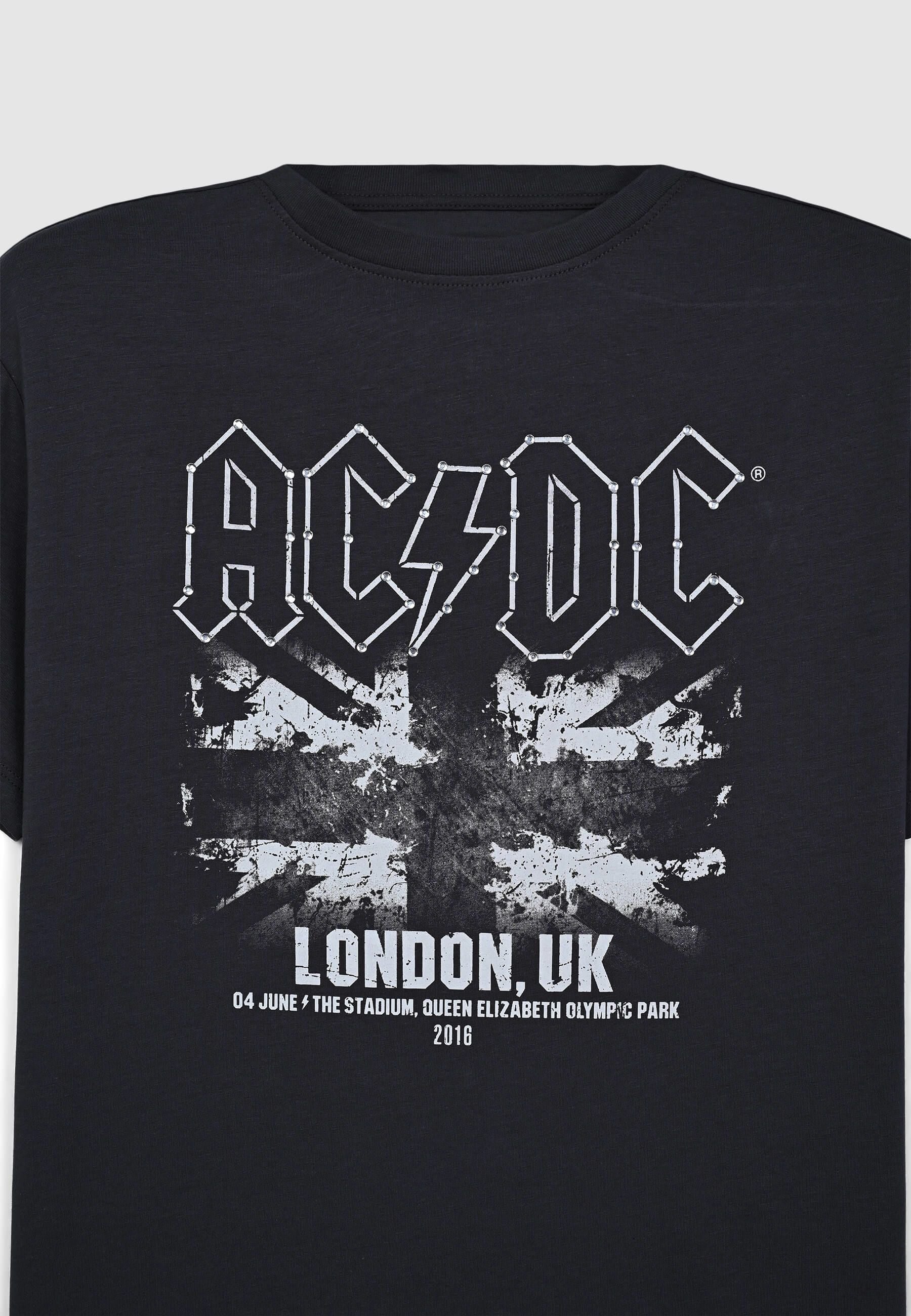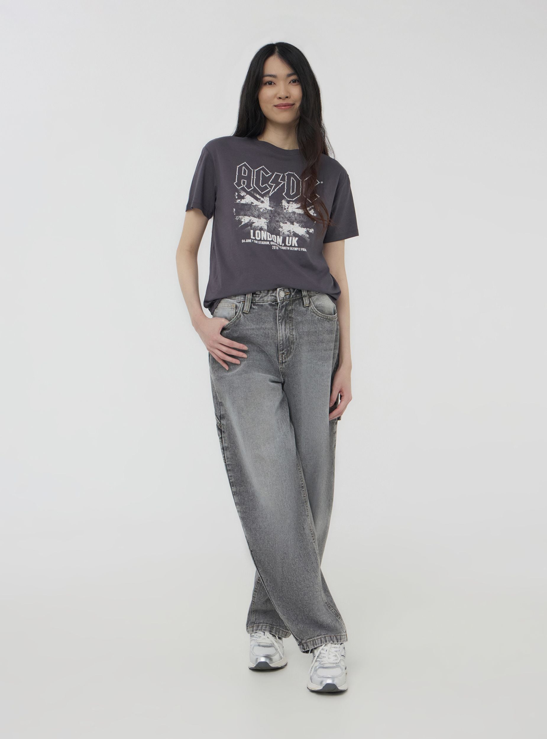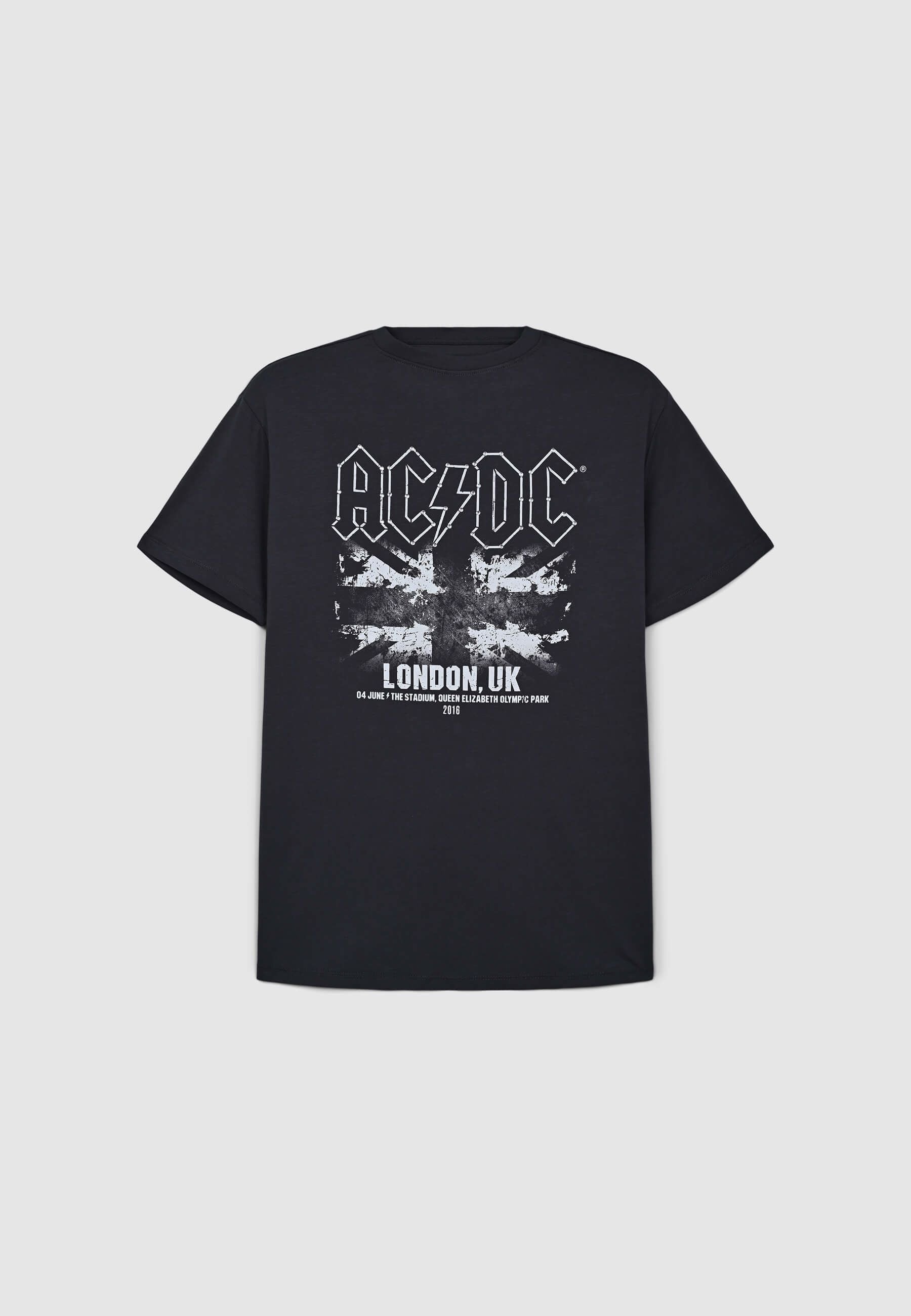 Maglietta da donna con girocollo e maniche corte, caratterizzata da una stampa frontale AC/DC® arricchita da strass. Il taglio ampio la rende comoda e adatta per un look casual e rock, perfetta per chi ama lo stile musicale iconico della band. Un capo ideale per aggiungere un tocco grintoso al proprio guardaroba.