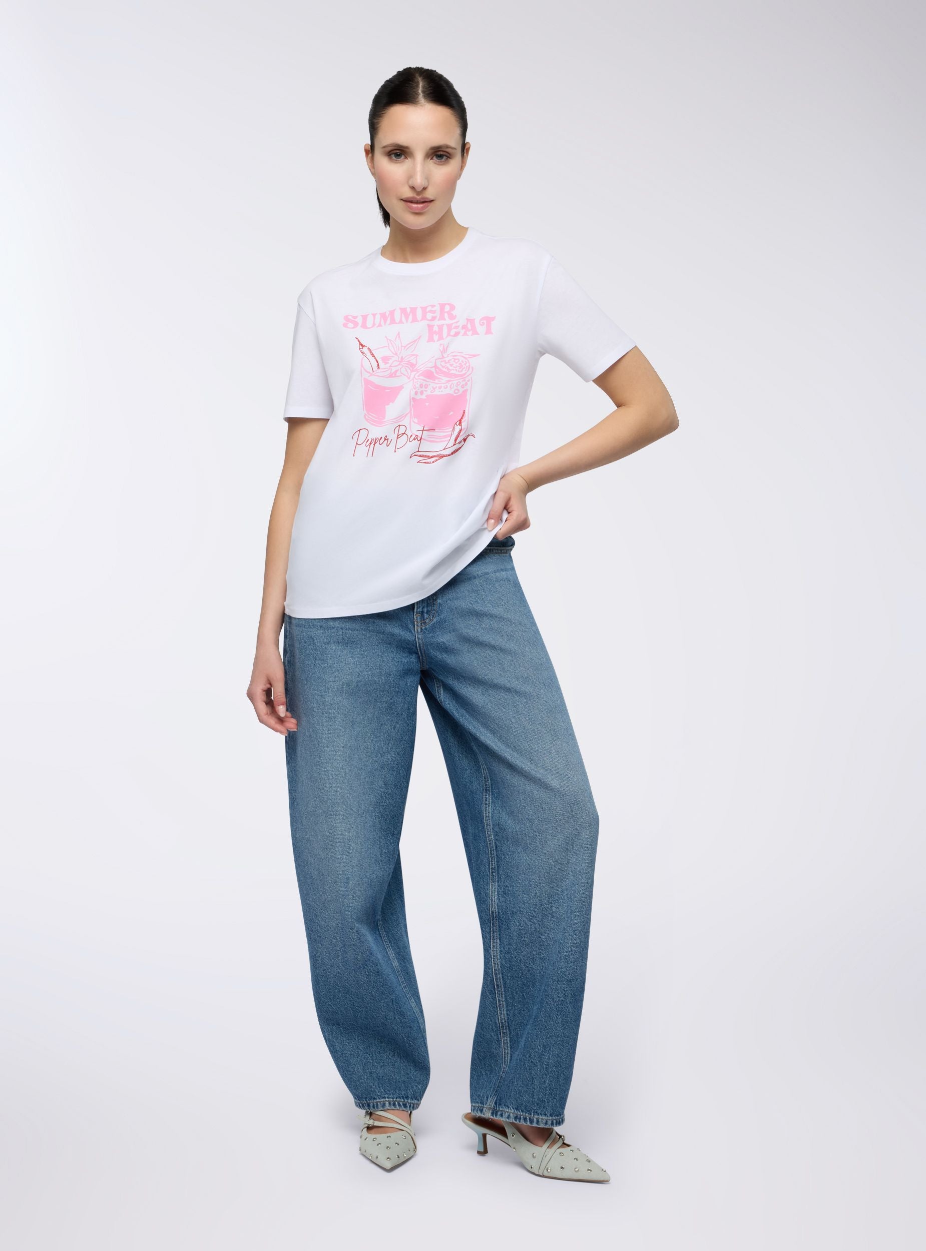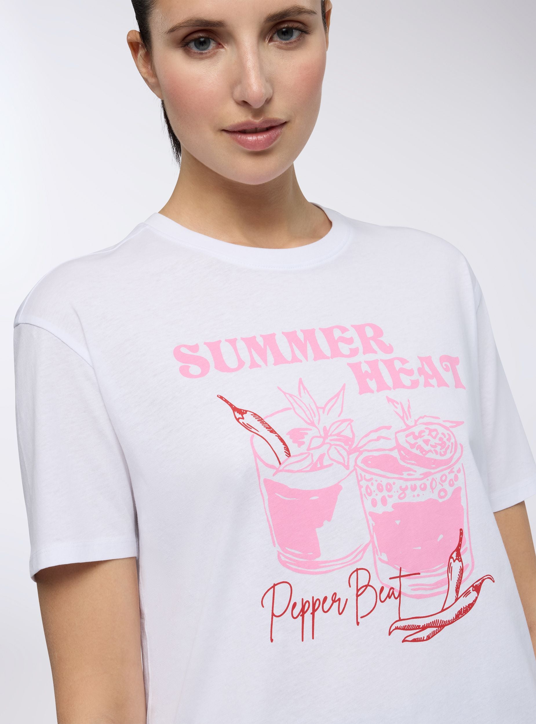 Maglietta da donna ideale per un look casual e dinamico. Caratterizzata da una vestibilità ampia, presenta una stampa a tema cocktail e un girocollo. Una scelta versatile per chi cerca comfort e stile in ogni occasione.Dettagli