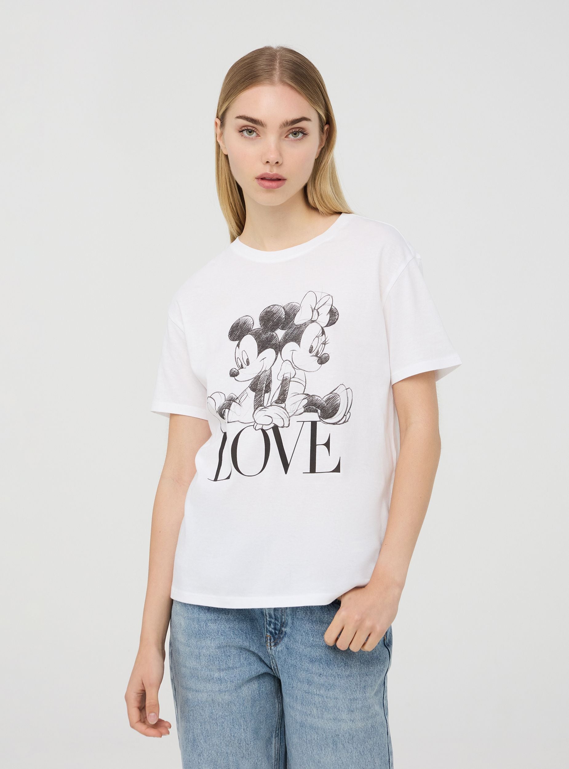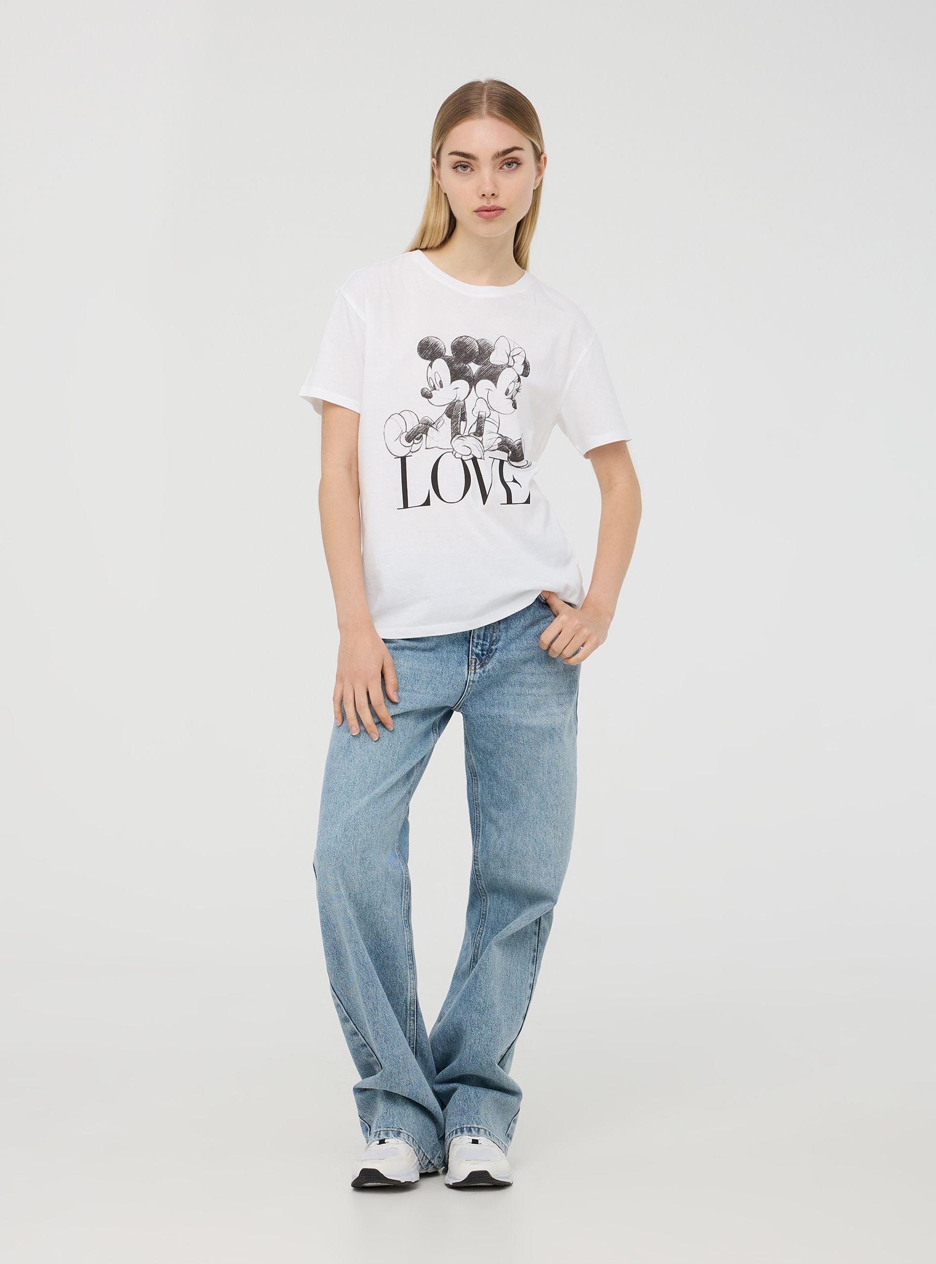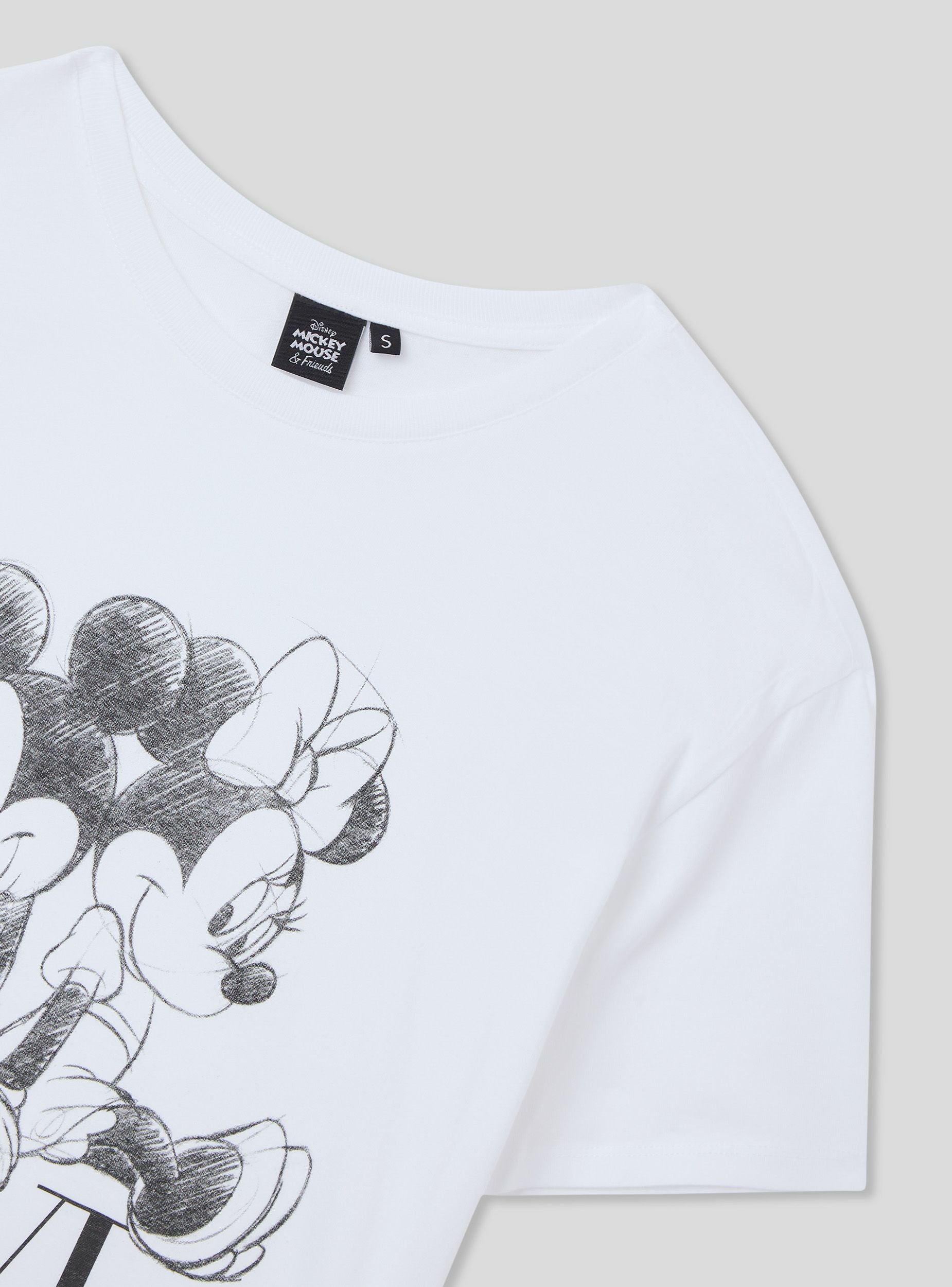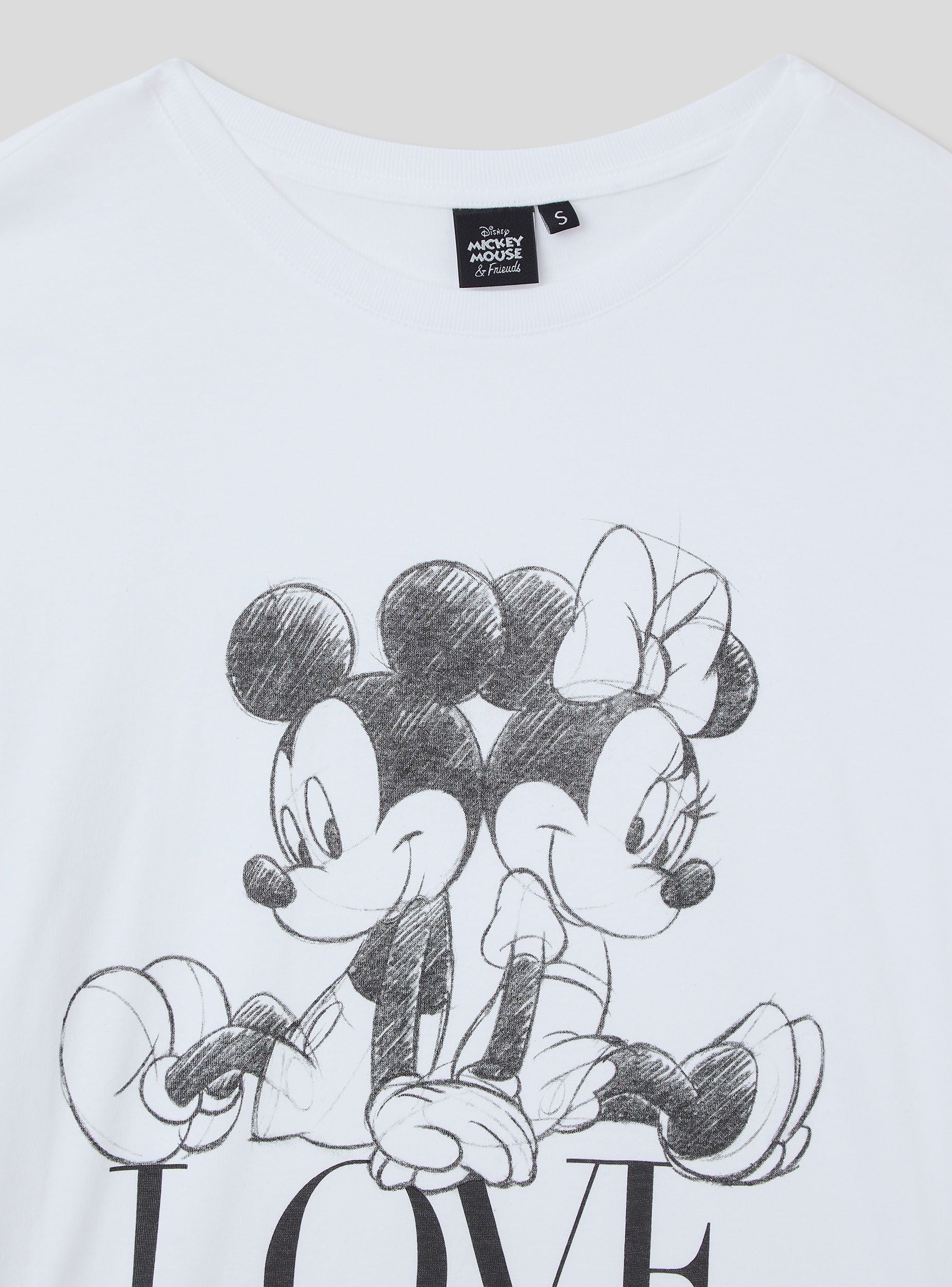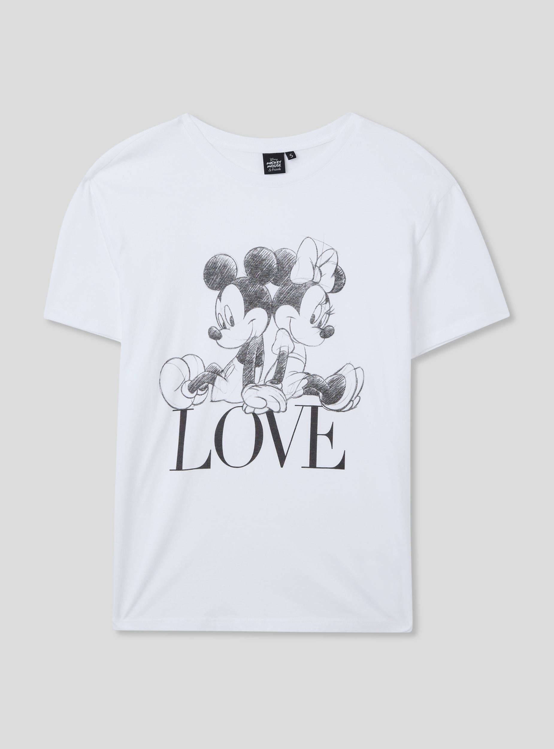 Maglietta da donna con girocollo e maniche corte, caratterizzata da una stampa frontale di Minnie e Topolino® accompagnata dalla scritta "LOVE". Il taglio ampio conferisce una vestibilità comoda, perfetta per un look casual e rilassato.Dettagli