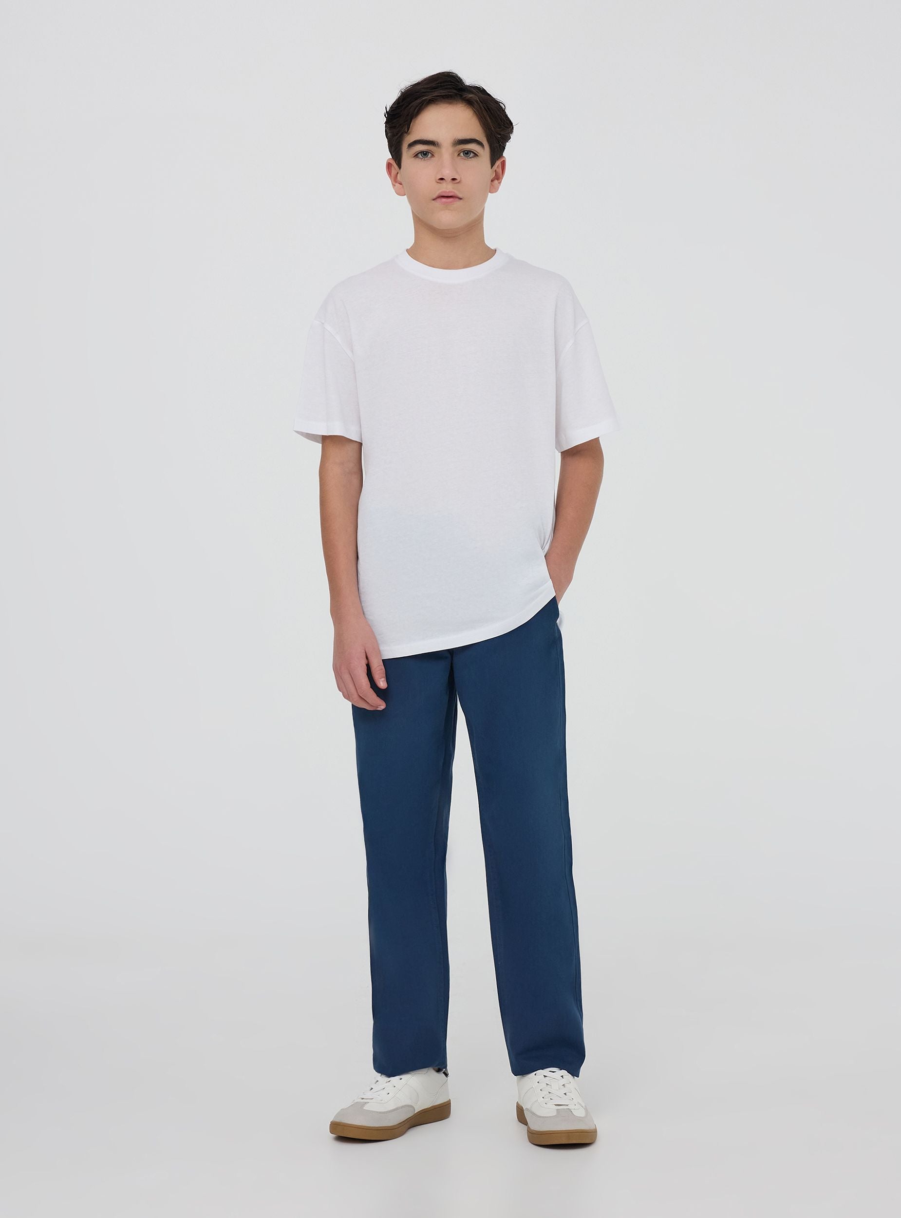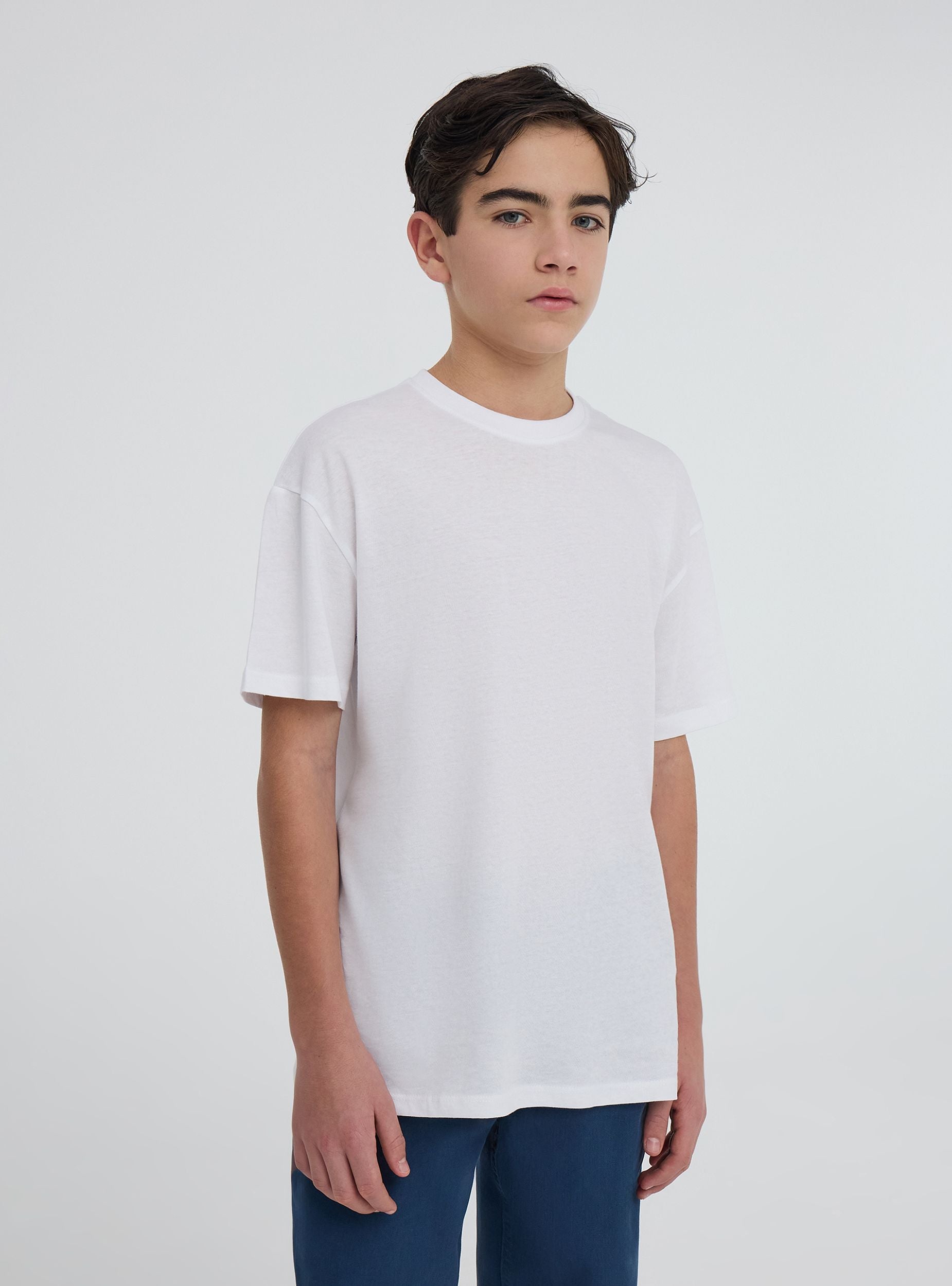 Maglietta da bambino a tinta unita con vestibilità comoda, ideale per un look casual. Il capo presenta maniche corte e un girocollo, conferendo uno stile semplice e versatile. Realizzata in cotone, questa t-shirt è perfetta per essere indossata durante le stagioni calde, garantendo leggerezza e comfort per tutta la giornata. La sua semplicità la rende facilmente abbinabile con altri capi d'abbigliamento, risultando adatta per ogni occasione informale. Un capo essenziale per il guardaroba quotidiano dei più piccoli.Dettagli