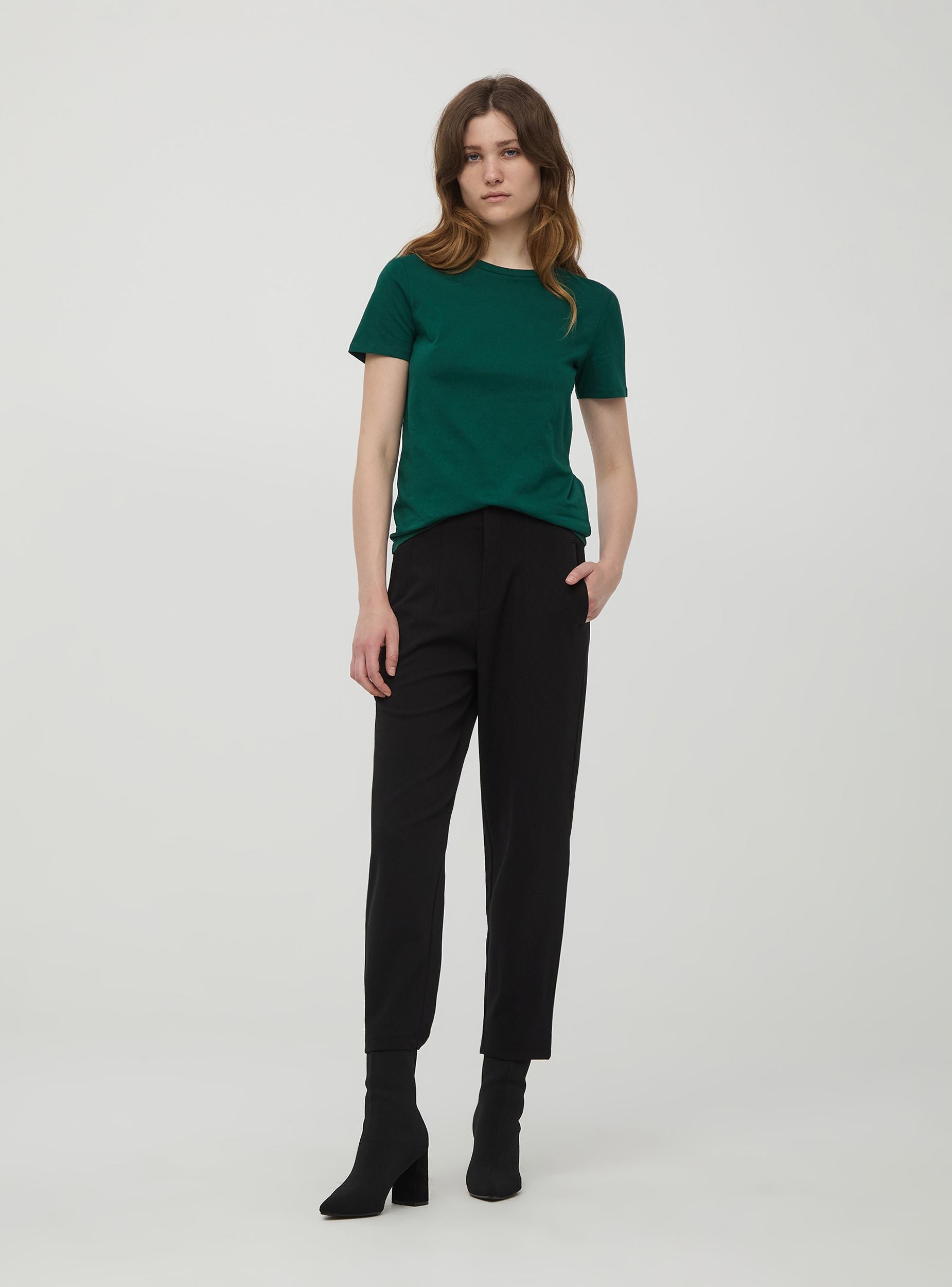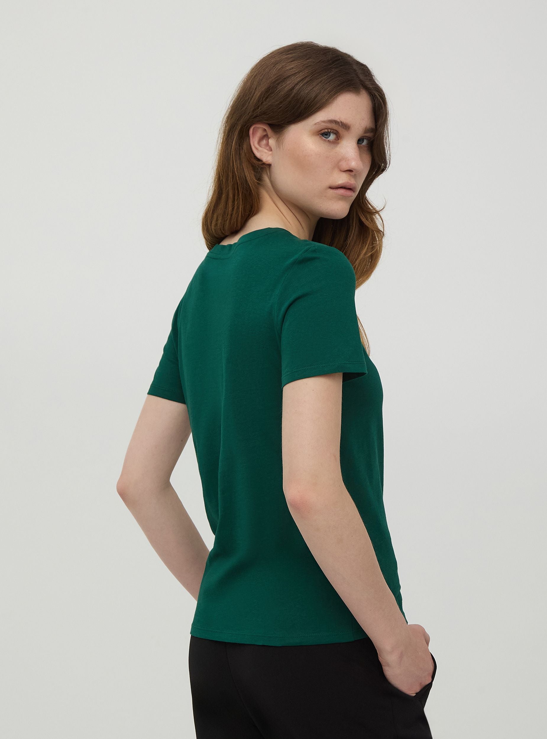Maglietta da donna in jersey di cotone a tinta unita. Modello girocollo con maniche corte. Capo basic ideale per i look di tutti i giorni. Vestibilità regular.Dettagli