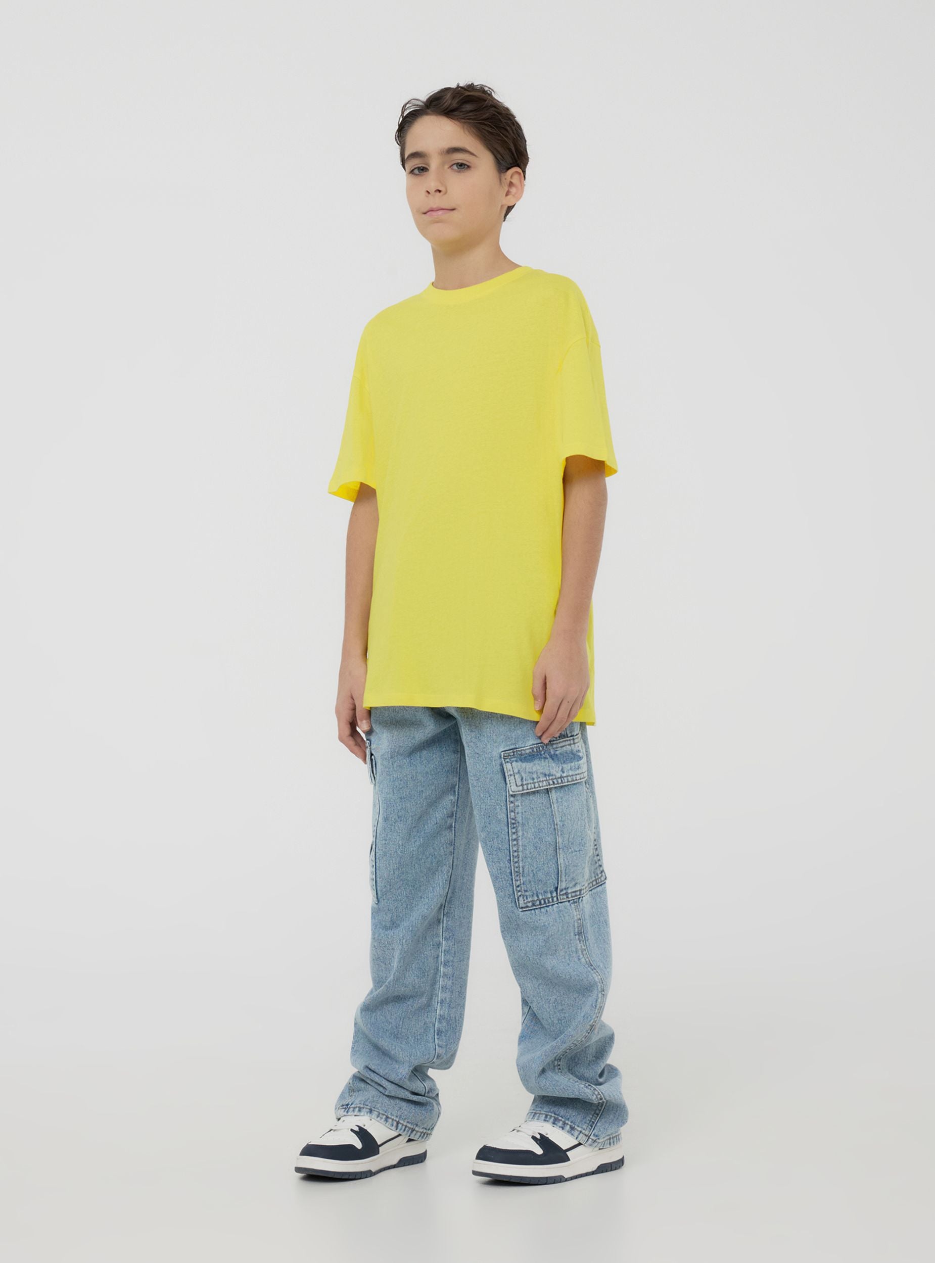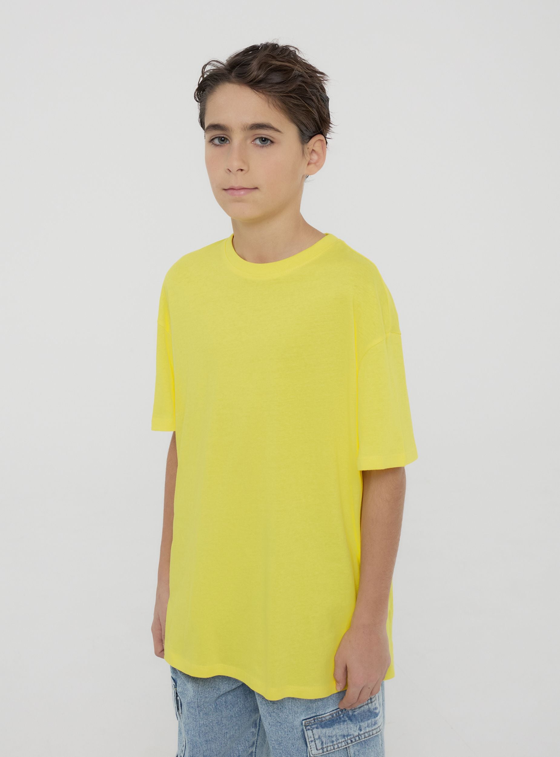 Maglietta da bambino a tinta unita con vestibilità comoda, ideale per un look casual. Il capo presenta maniche corte e un girocollo, conferendo uno stile semplice e versatile. Realizzata in cotone, questa t-shirt è perfetta per essere indossata durante le stagioni calde, garantendo leggerezza e comfort per tutta la giornata. La sua semplicità la rende facilmente abbinabile con altri capi d'abbigliamento, risultando adatta per ogni occasione informale. Un capo essenziale per il guardaroba quotidiano dei più piccoli.Dettagli