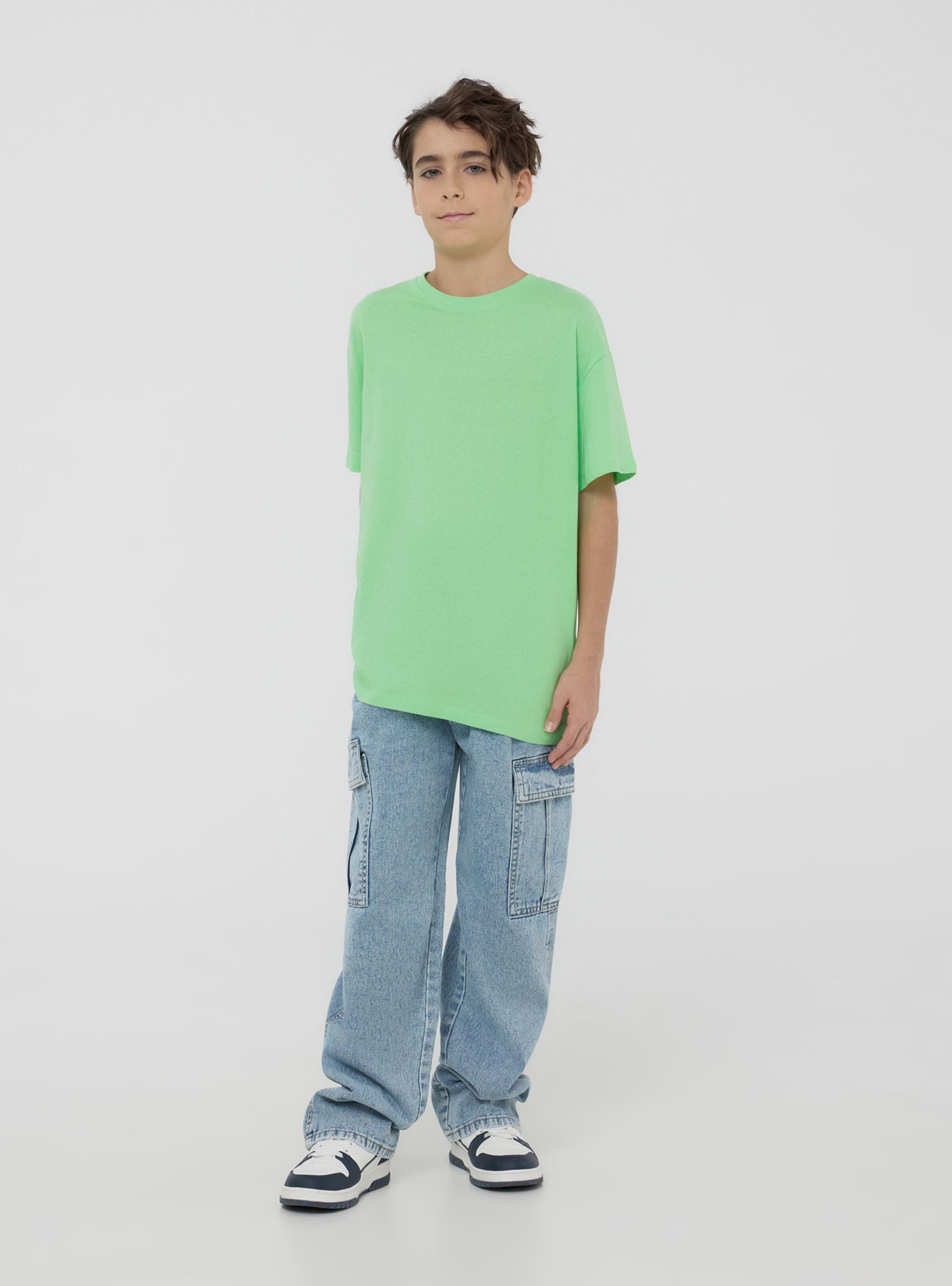 Maglietta da bambino a tinta unita con vestibilità comoda, ideale per un look casual. Il capo presenta maniche corte e un girocollo, conferendo uno stile semplice e versatile. Realizzata in cotone, questa t-shirt è perfetta per essere indossata durante le stagioni calde, garantendo leggerezza e comfort per tutta la giornata. La sua semplicità la rende facilmente abbinabile con altri capi d'abbigliamento, risultando adatta per ogni occasione informale. Un capo essenziale per il guardaroba quotidiano dei più piccoli.Dettagli
