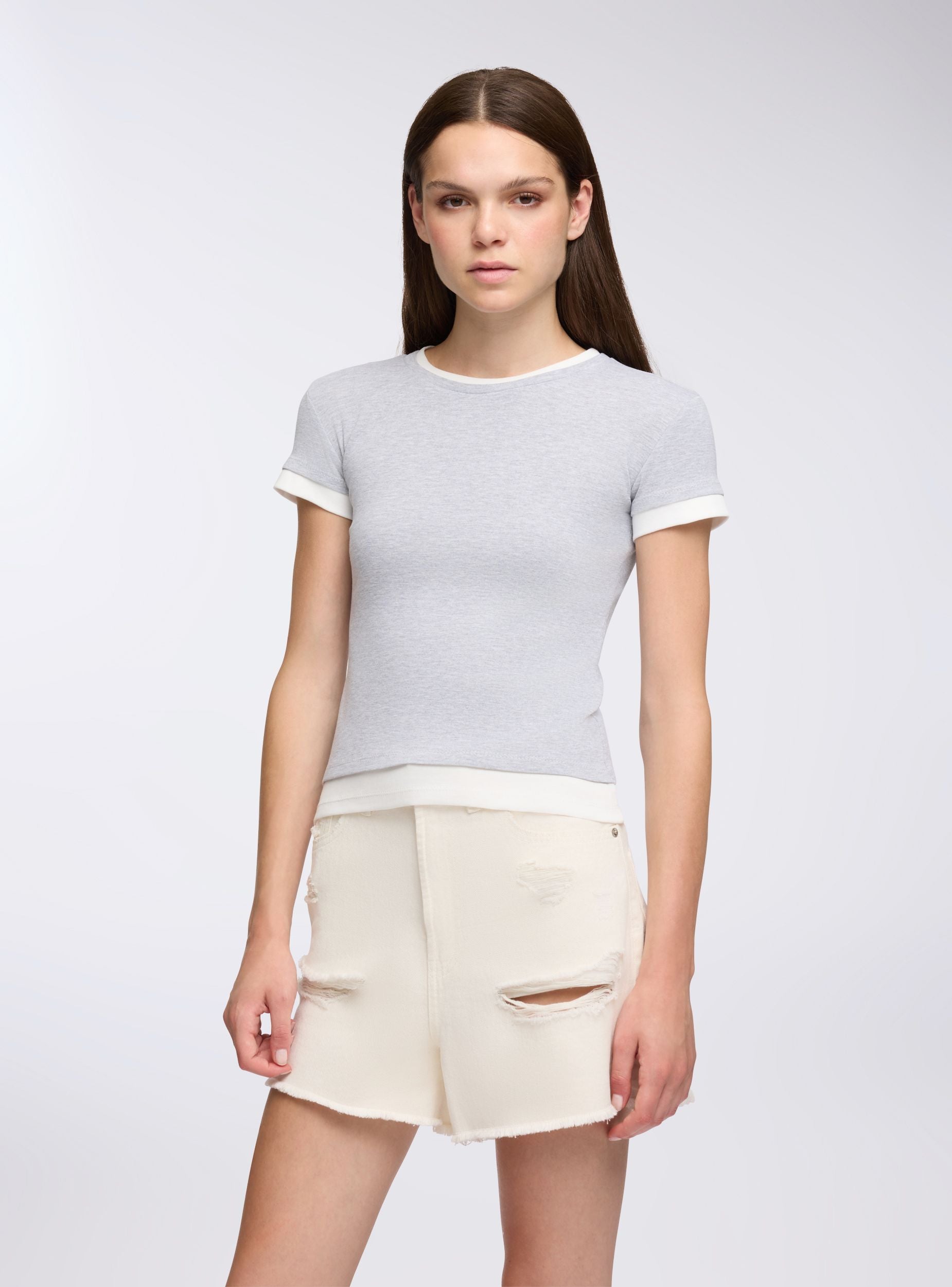 Maglietta da donna con bordi a contrasto, ideale per un look casual e versatile. Perfetta per abbinamenti con jeans o pantaloni sportivi, questa maglietta offre comfort e stile per ogni occasione. Il design semplice e il fit regolare la rendono un capo essenziale per il guardaroba quotidiano.Dettagli