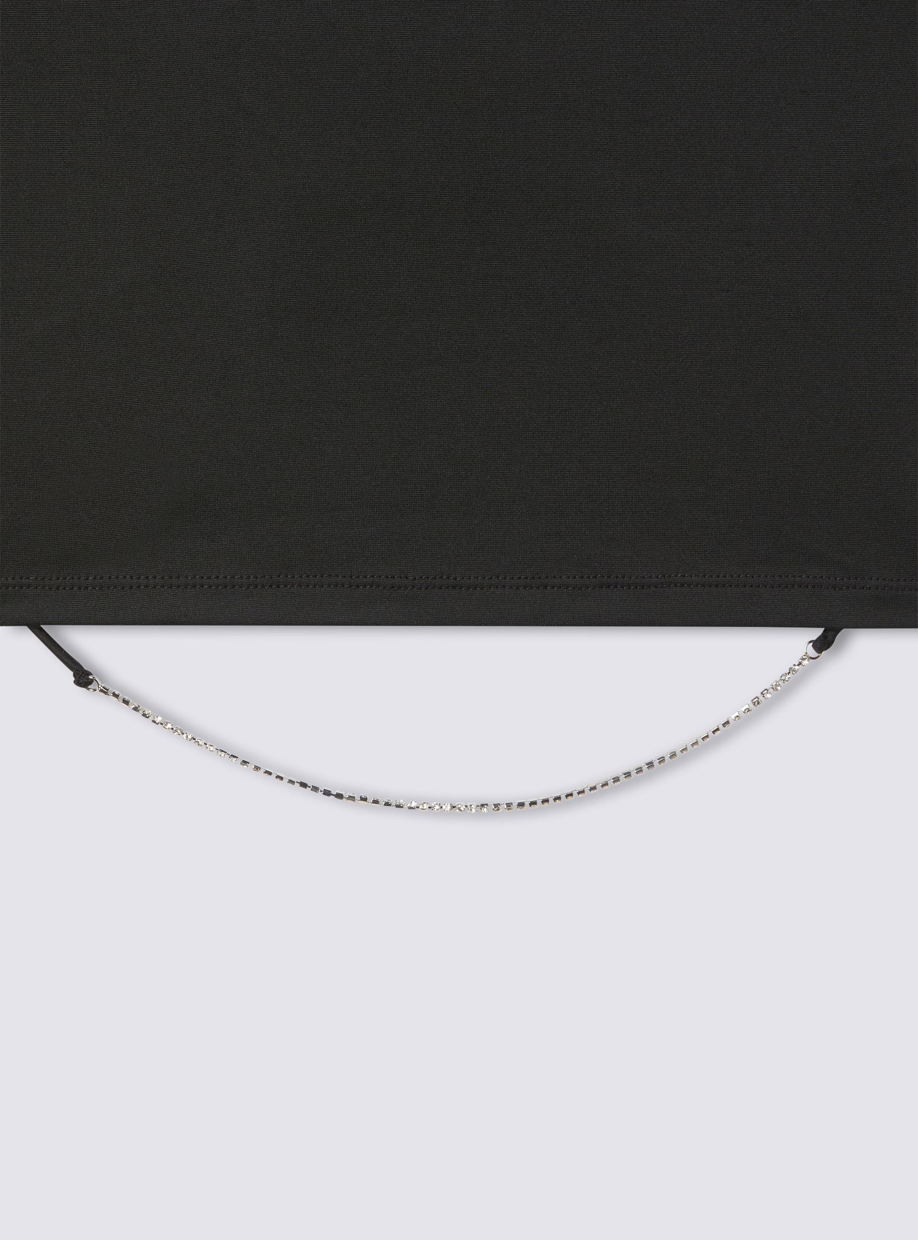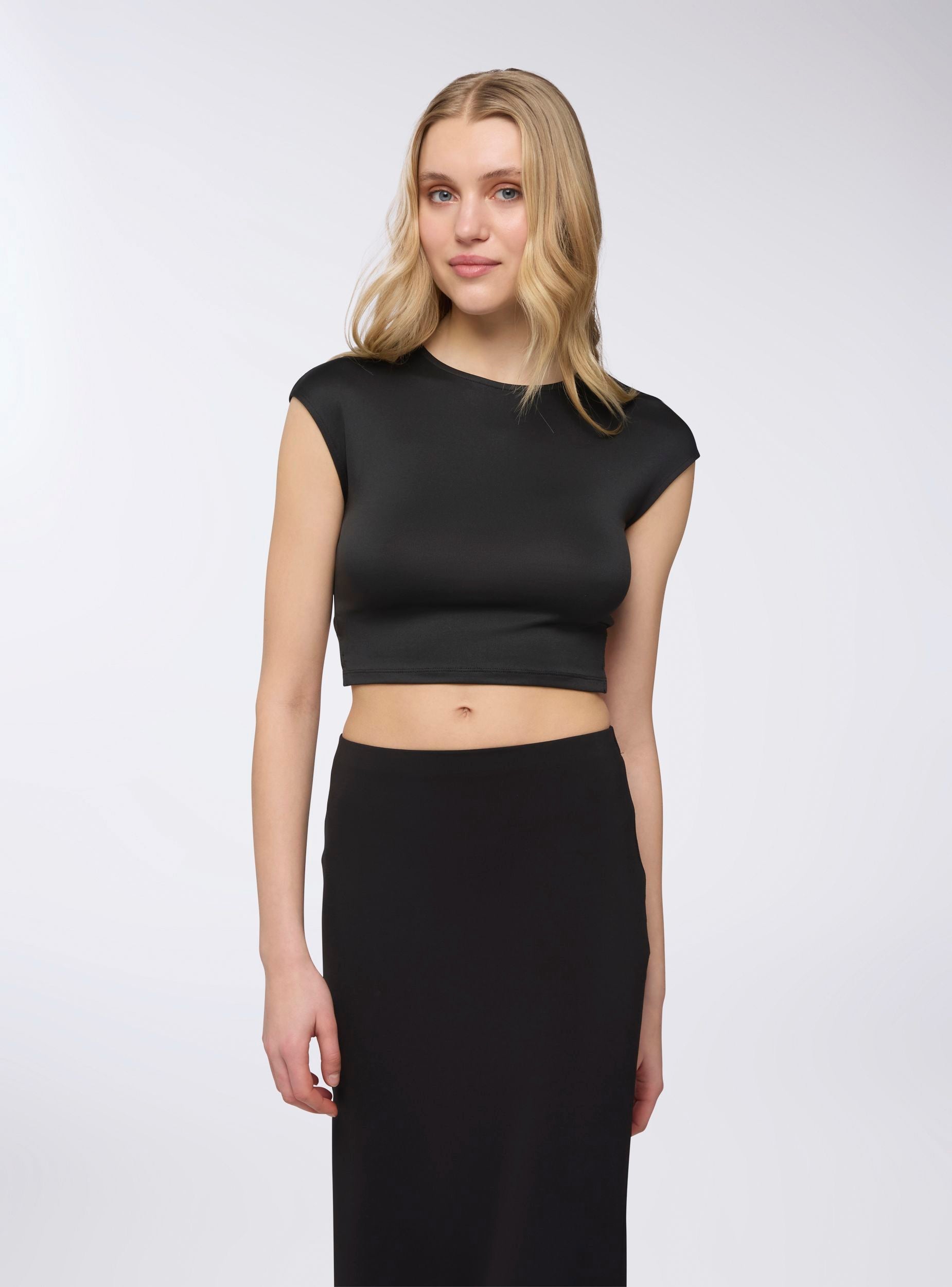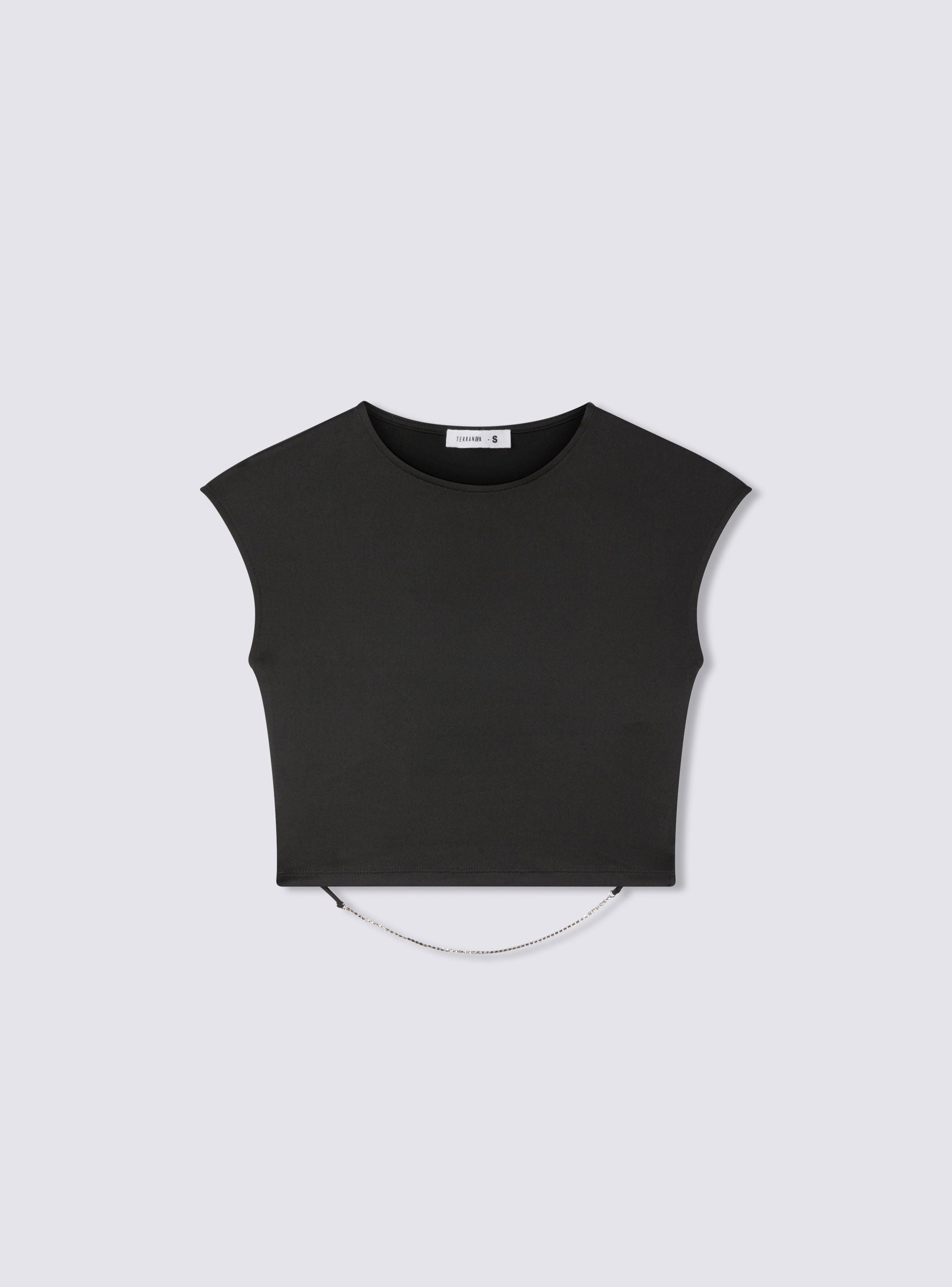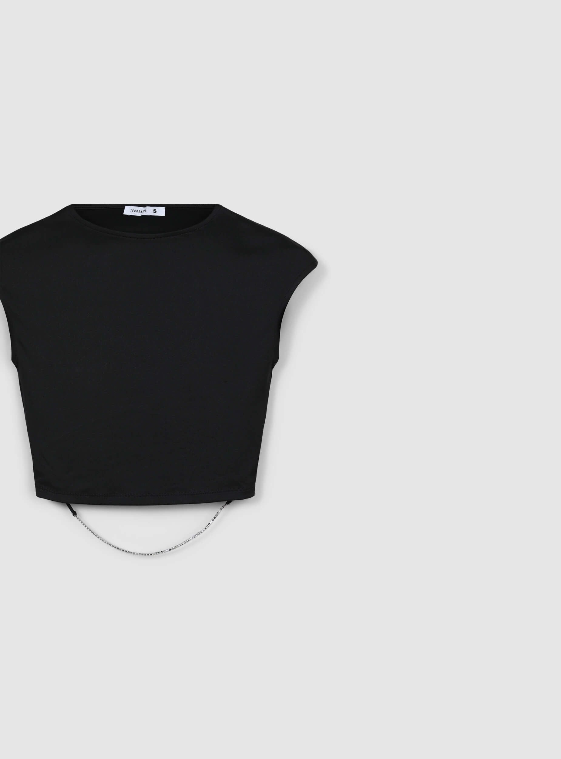 Maglietta da donna dal design moderno e femminile, perfetta per creare outfit grintosi e ricercati. Il girocollo e le maniche corte garantiscono comfort, mentre la tinta unita la rende versatile. Il dettaglio di oblò sul retro dona un tocco audace, enfatizzato dagli strass che aggiungono luminosità. Ideale con leggings per un look sporty-chic o con jeans e tacchi per un'uscita serale.Dettagli
