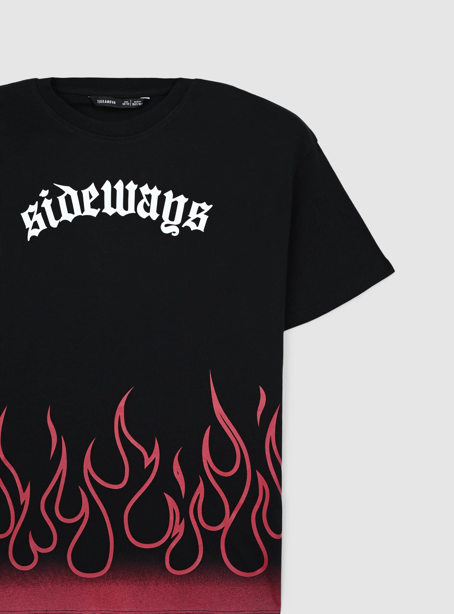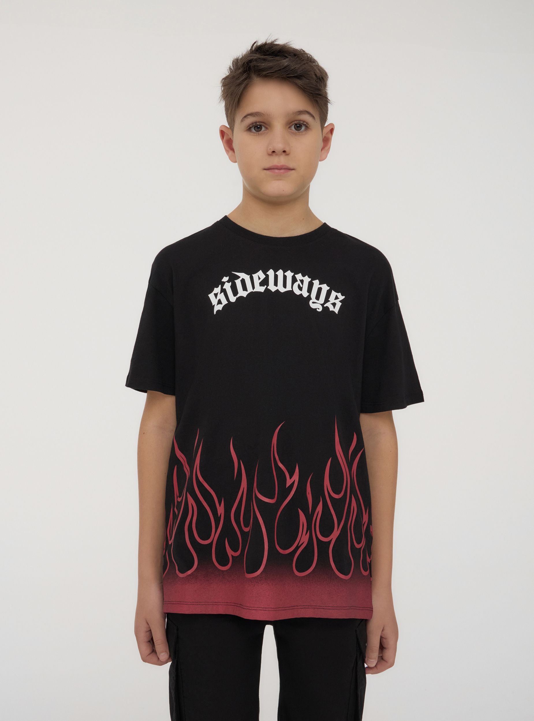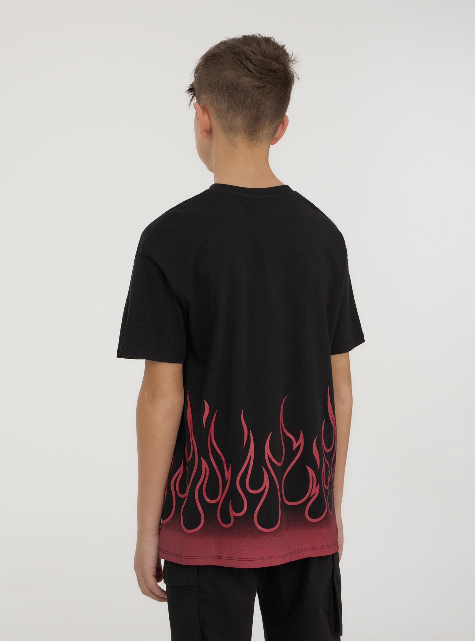 Maglietta da bambino dallo stile grintoso, perfetta per chi ama un look energico e di carattere. Il design a maniche corte e girocollo assicura comfort e versatilità, mentre la stampa con fiamme e scritta aggiunge un tocco dinamico e moderno. Ideale per il tempo libero, si abbina perfettamente a jeans e sneakers per un outfit urban, oppure a joggers per un look più sportivo e rilassato.Dettagli