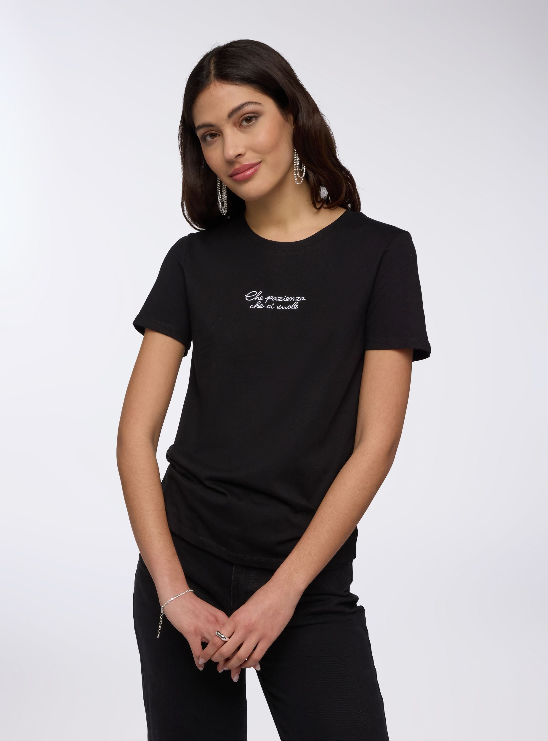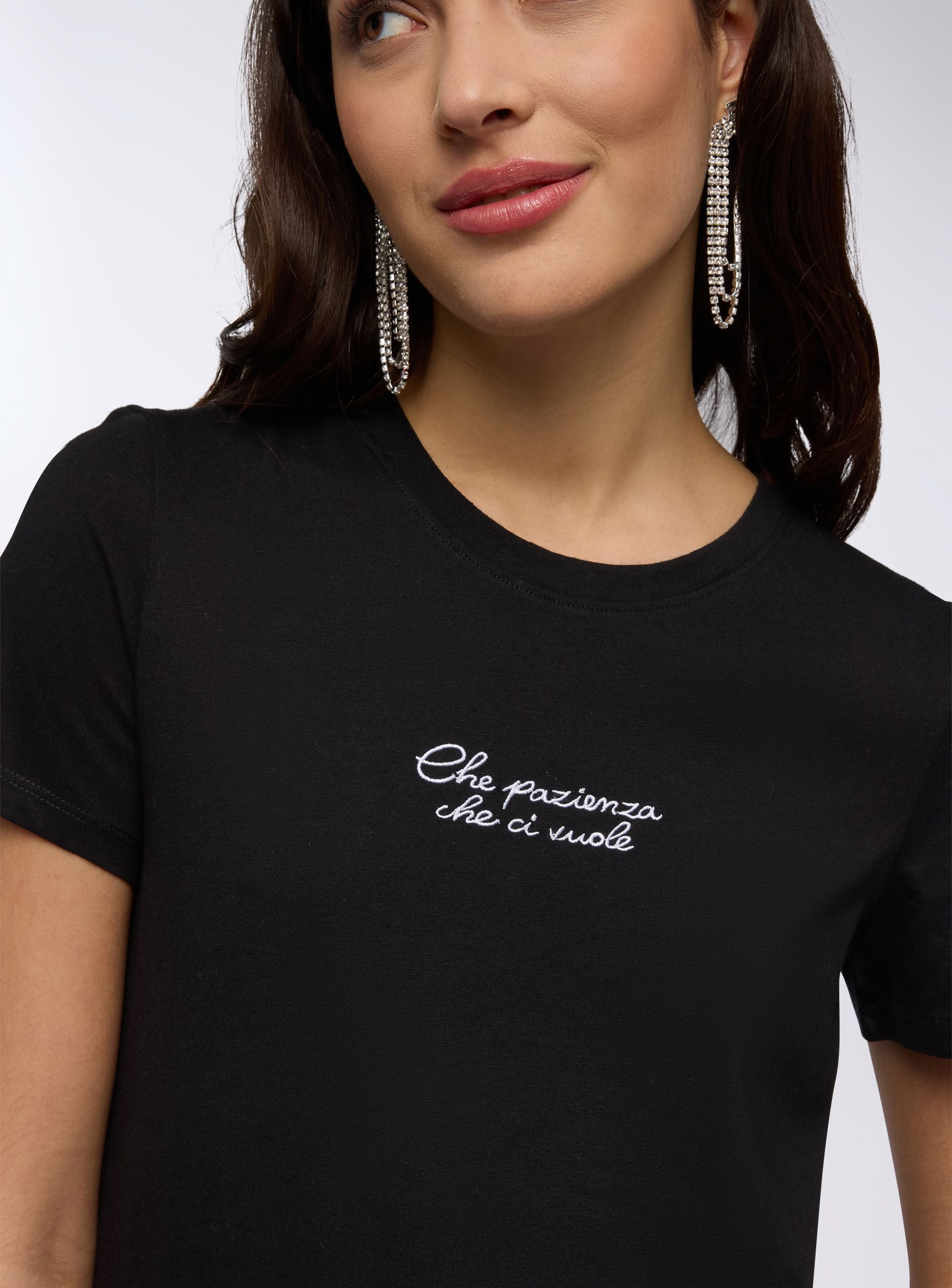Maglietta da donna dal design essenziale e moderno, con maniche corte e girocollo per un comfort quotidiano. La scritta simpatica aggiunge un tocco di originalità, perfetto per esprimere il proprio stile con leggerezza. Ideale da abbinare a jeans, shorts o gonne casual, si adatta a momenti di relax, uscite informali o giornate dinamiche.Dettagli