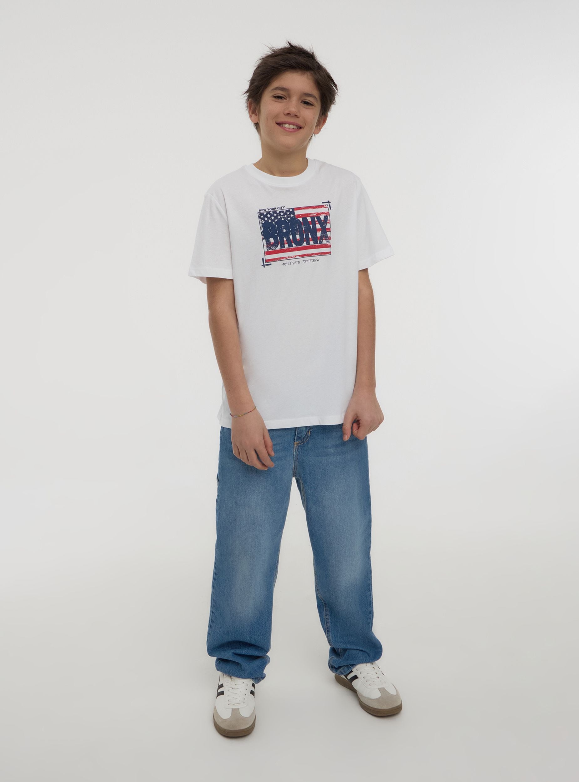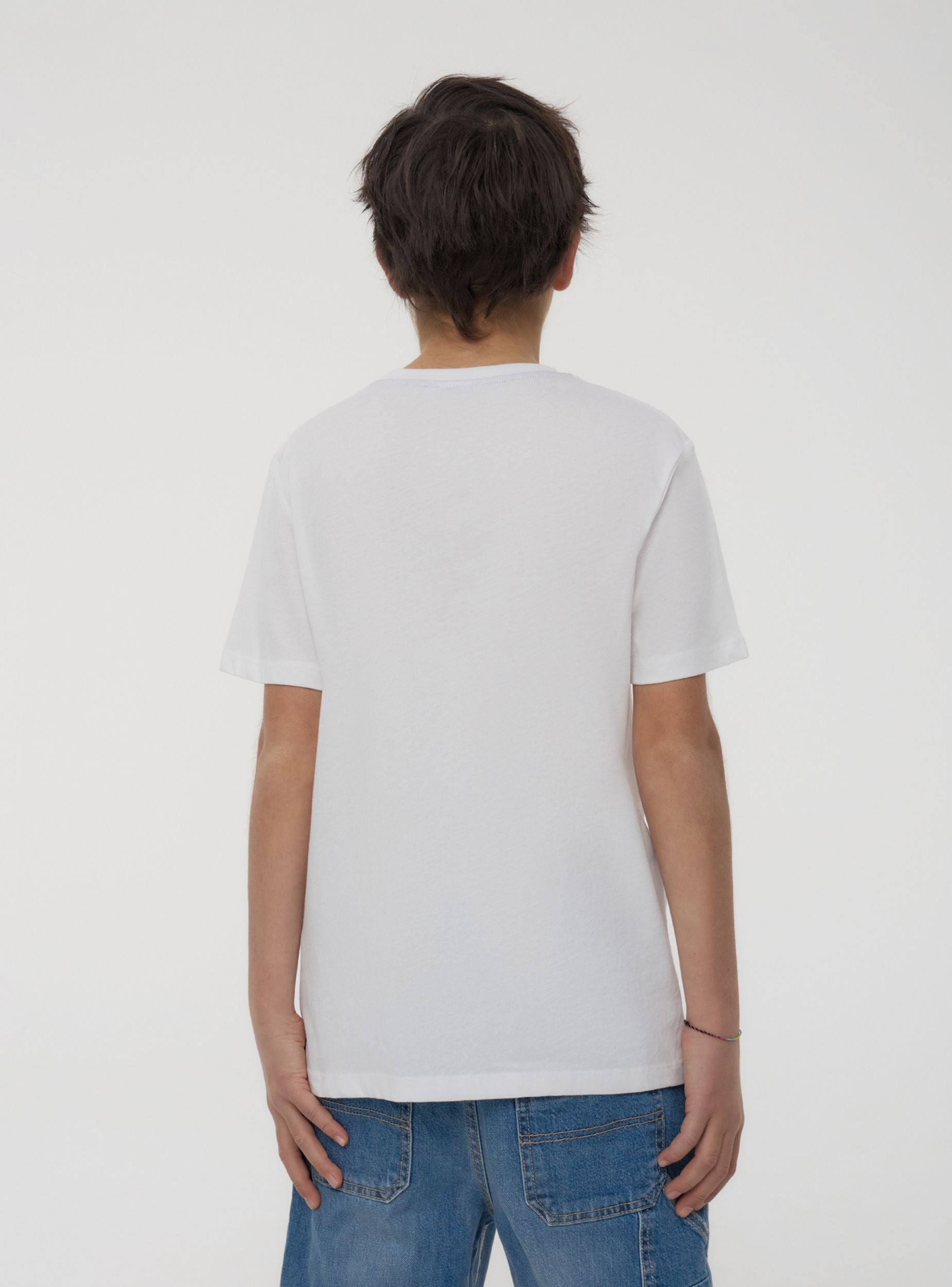 Maglietta da bambino a maniche corte con girocollo, perfetta per un look dinamico e moderno. Caratterizzata da una scritta centrale racchiusa in un box, questa maglietta combina stile e praticità, ideale per ogni occasione casual.Dettagli