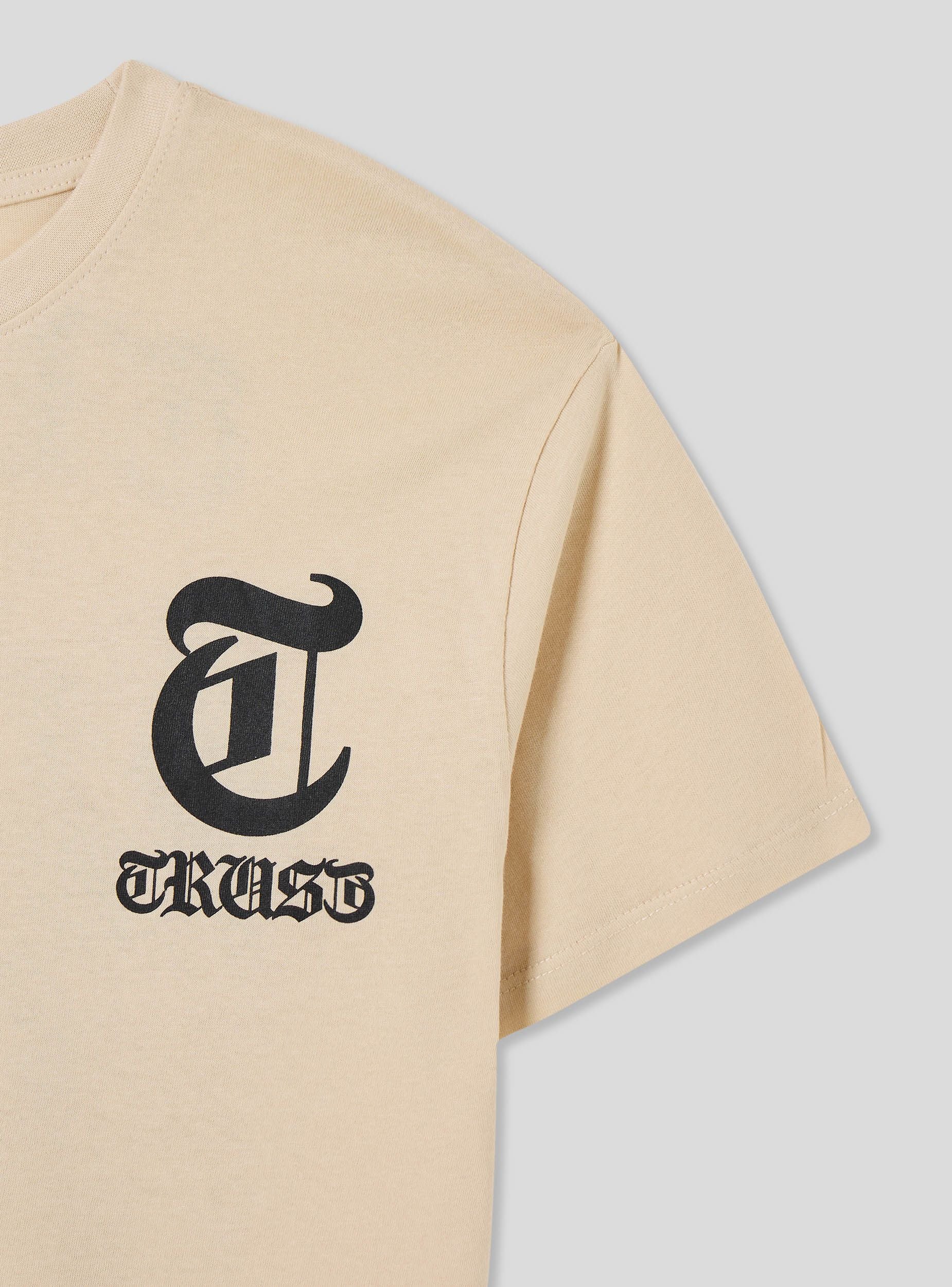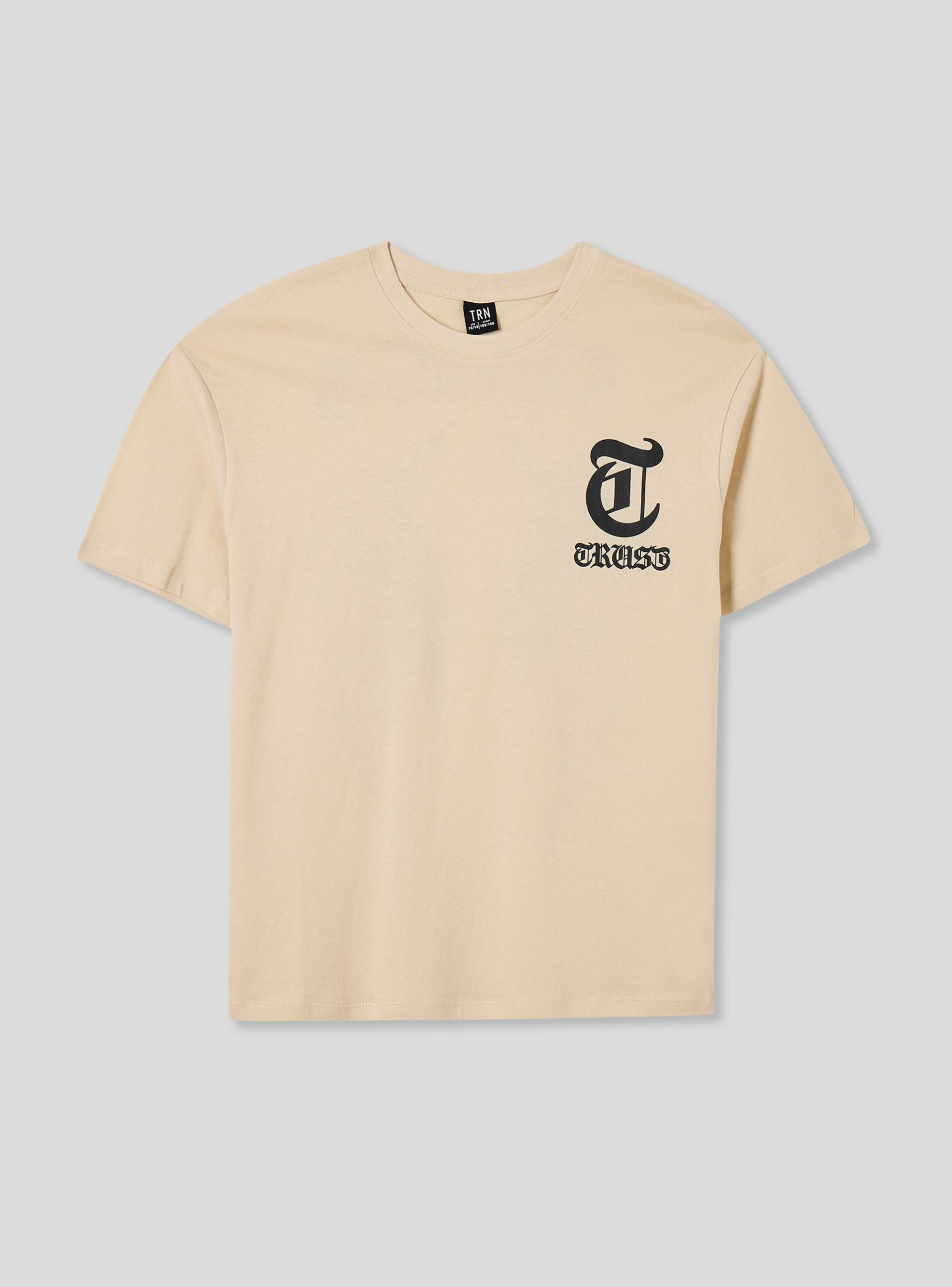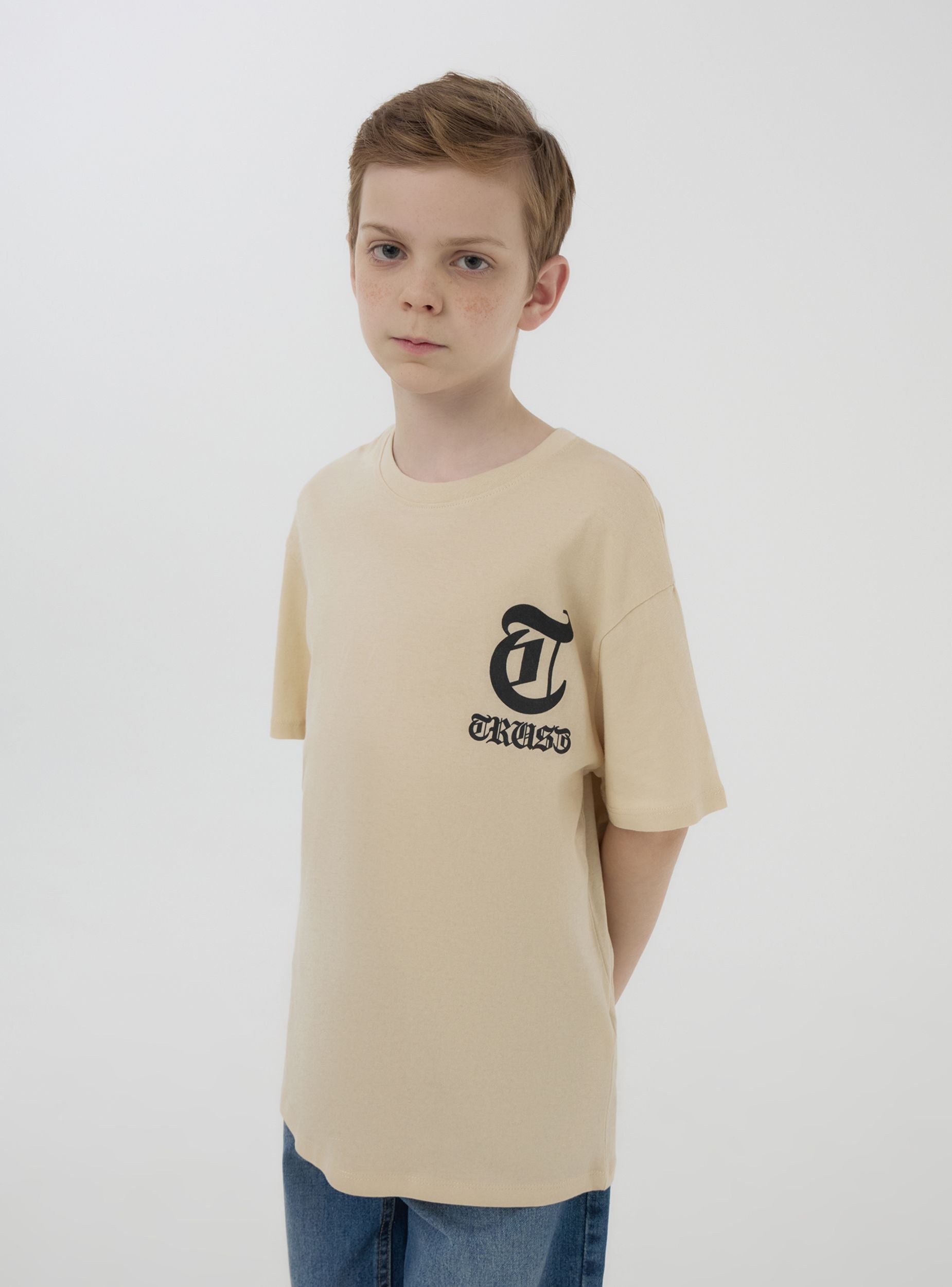 Maglietta da bambino con maniche corte e girocollo, ideale per un look urban e casual. La stampa presenta ali decorative sul retro e scritte che aggiungono un tocco distintivo e moderno. Perfetta per momenti di svago o per esprimere uno stile deciso, questa maglietta combina comfort e originalità.Dettagli