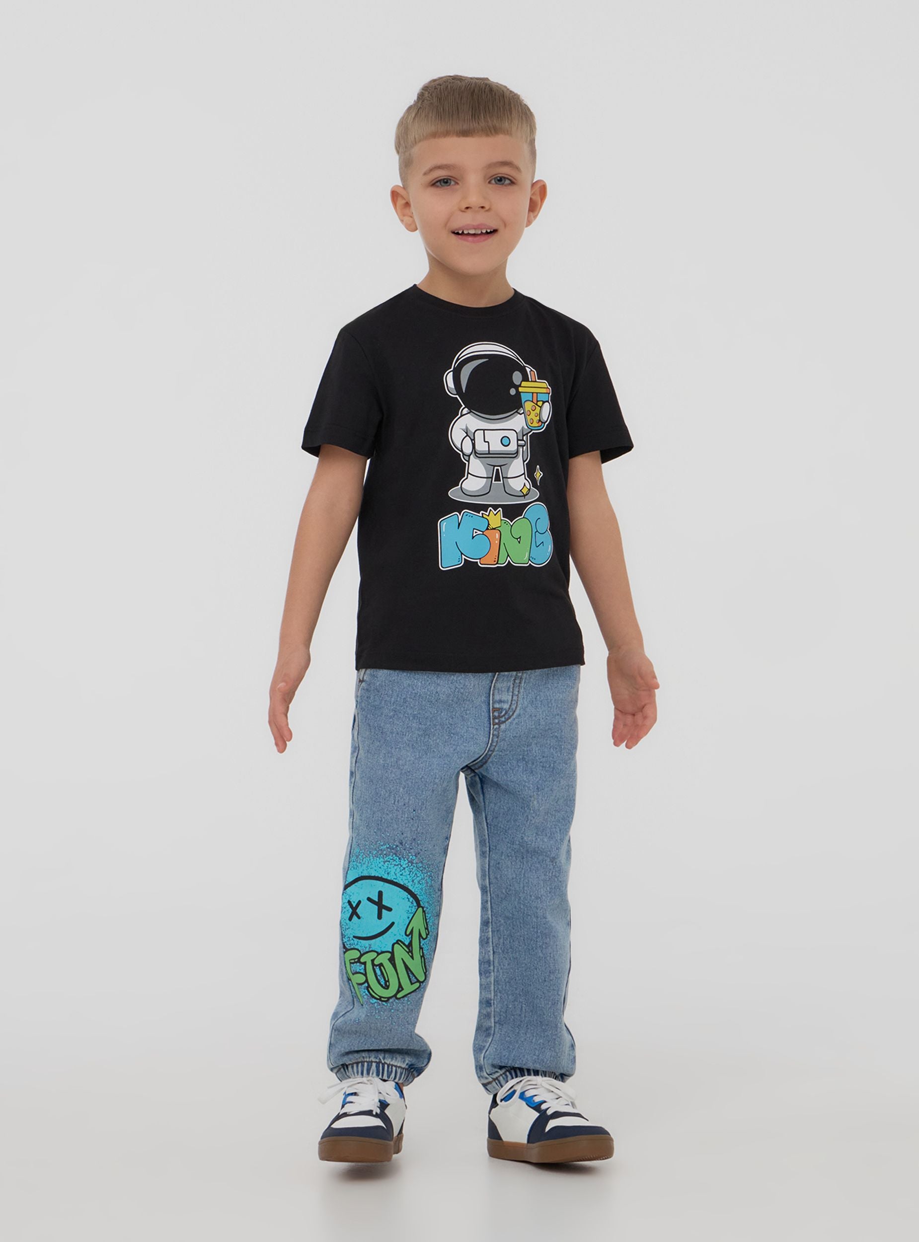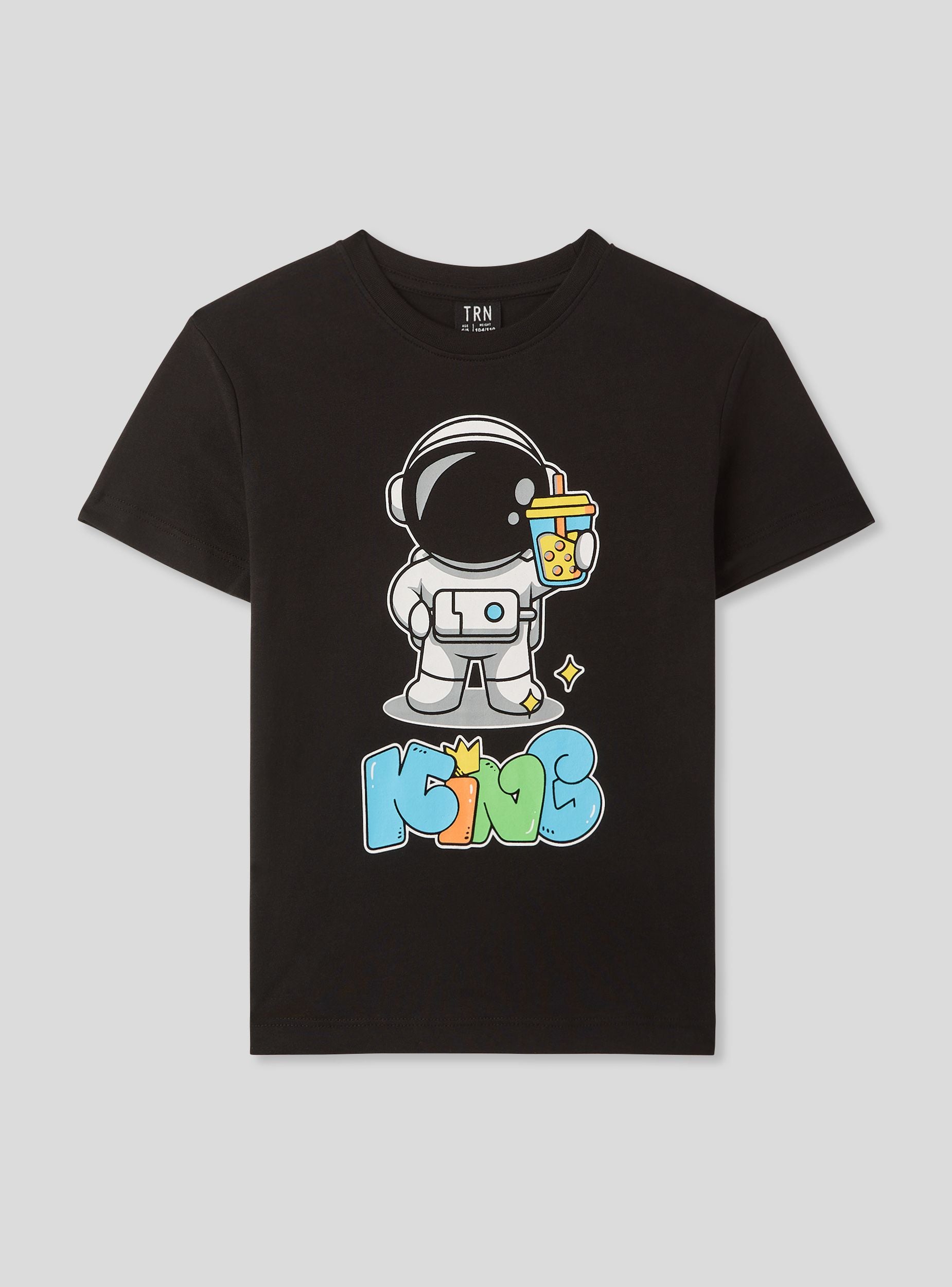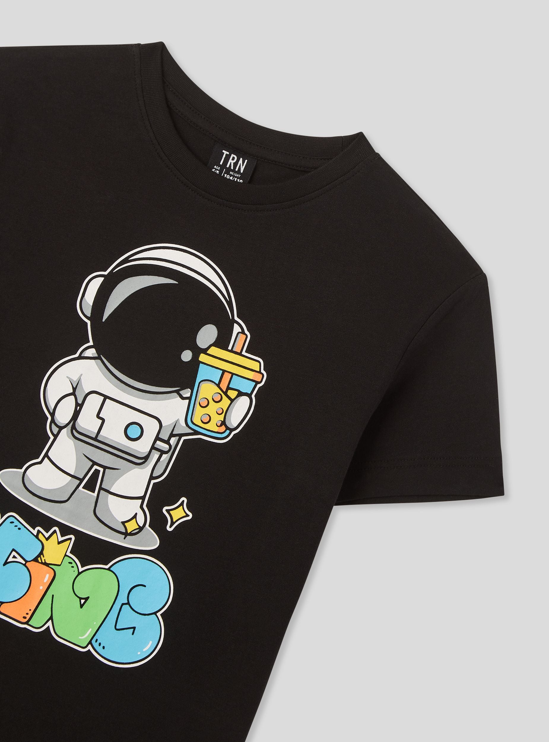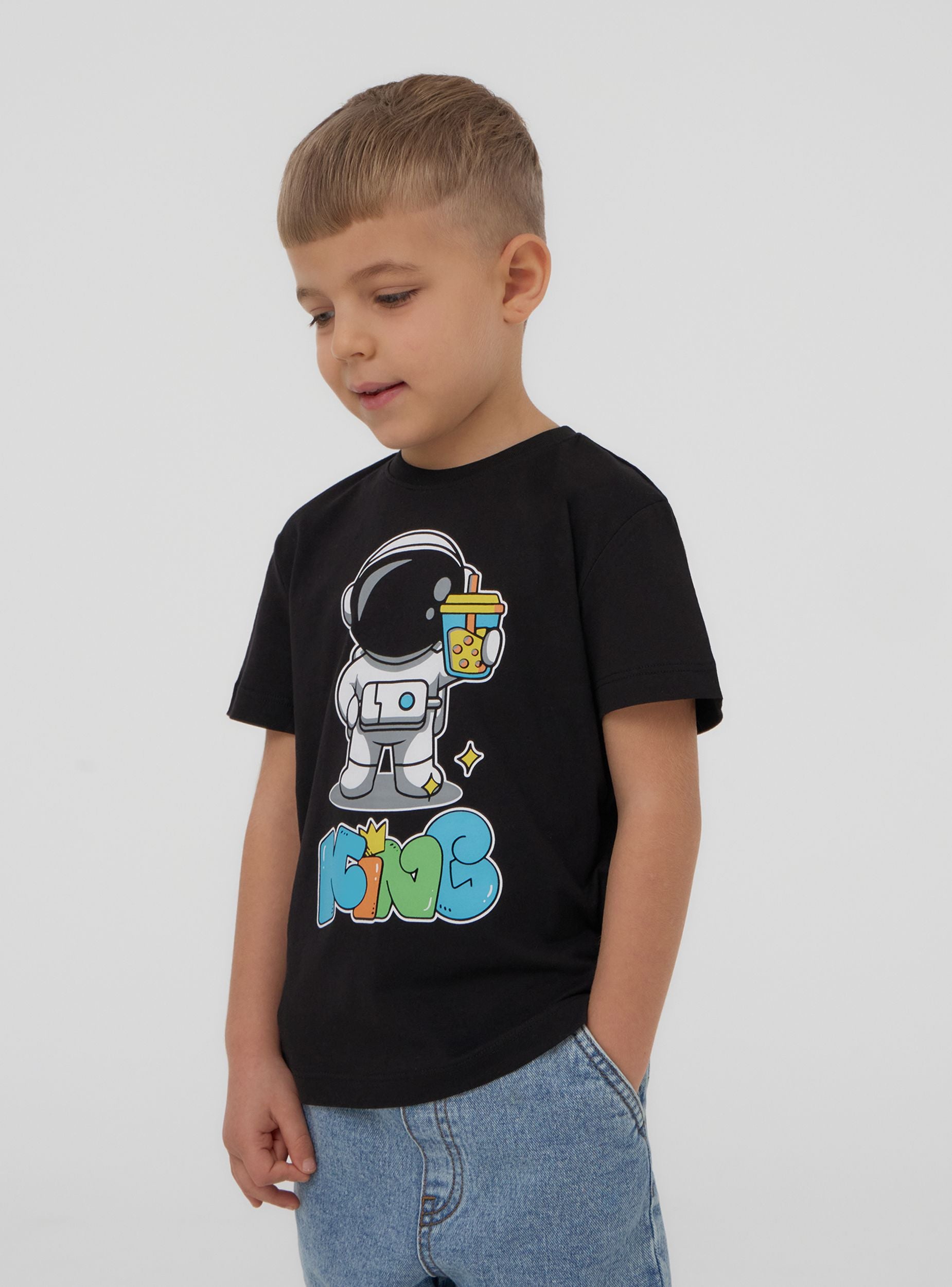 Maglietta da bimbo con maniche corte e girocollo, perfetta per un look casual e giocoso. La protagonista è una vivace stampa di un astronauta che regala un tocco di fantasia e avventura. Ideale per le giornate di gioco e relax, questa t-shirt aggiunge stile e personalità al guardaroba dei più piccoli.Dettagli
