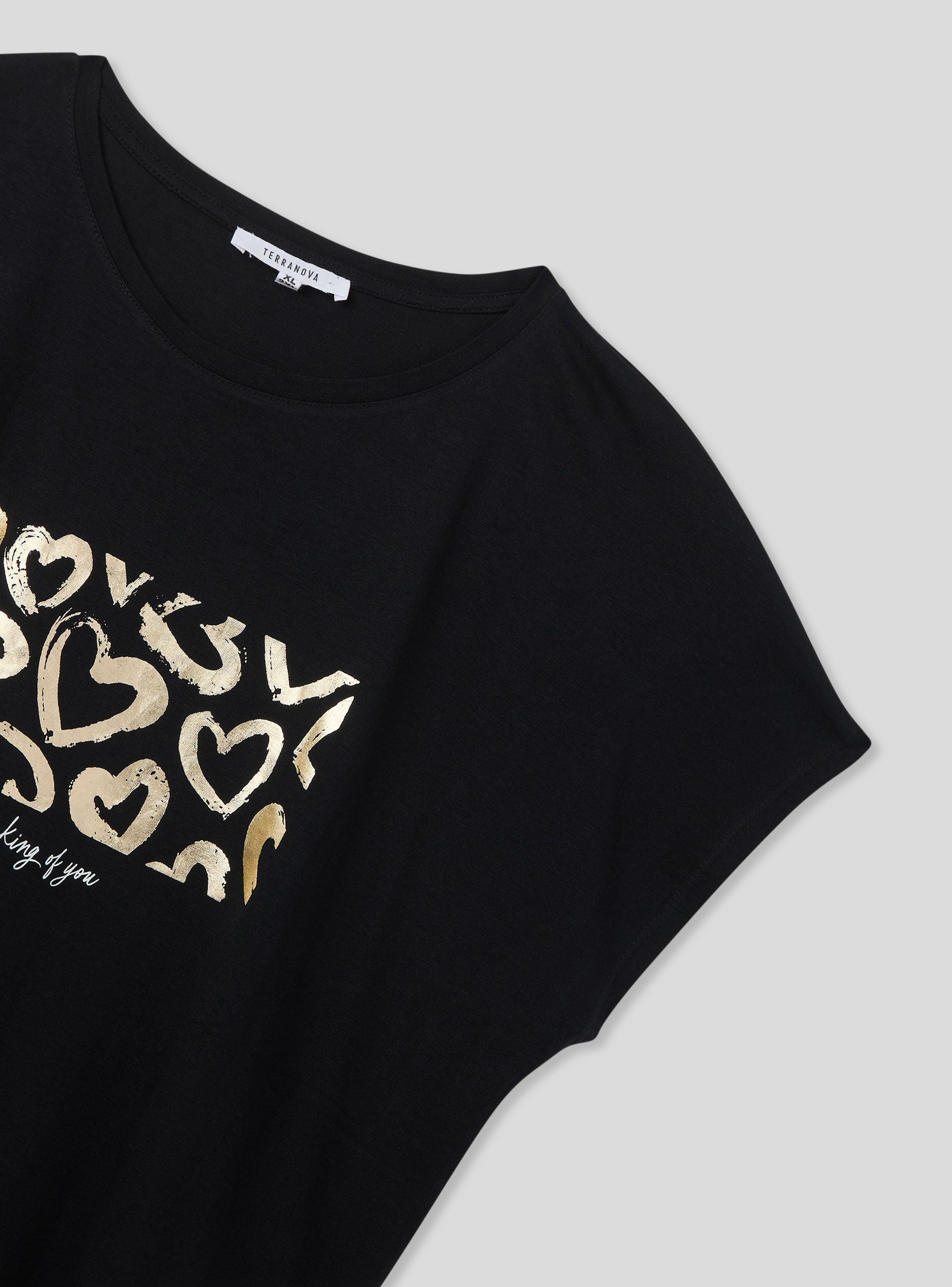 Maglietta da donna perfetta per un look casual e alla moda, ideale per le giornate informali o per aggiungere un tocco glamour agli outfit quotidiani. Caratterizzata da una stampa laminata con scritta che cattura l’attenzione, questa t-shirt con maniche corte e girocollo offre comfort e stile. Abbinala a jeans o pantaloni per un outfit versatile e moderno.Dettagli