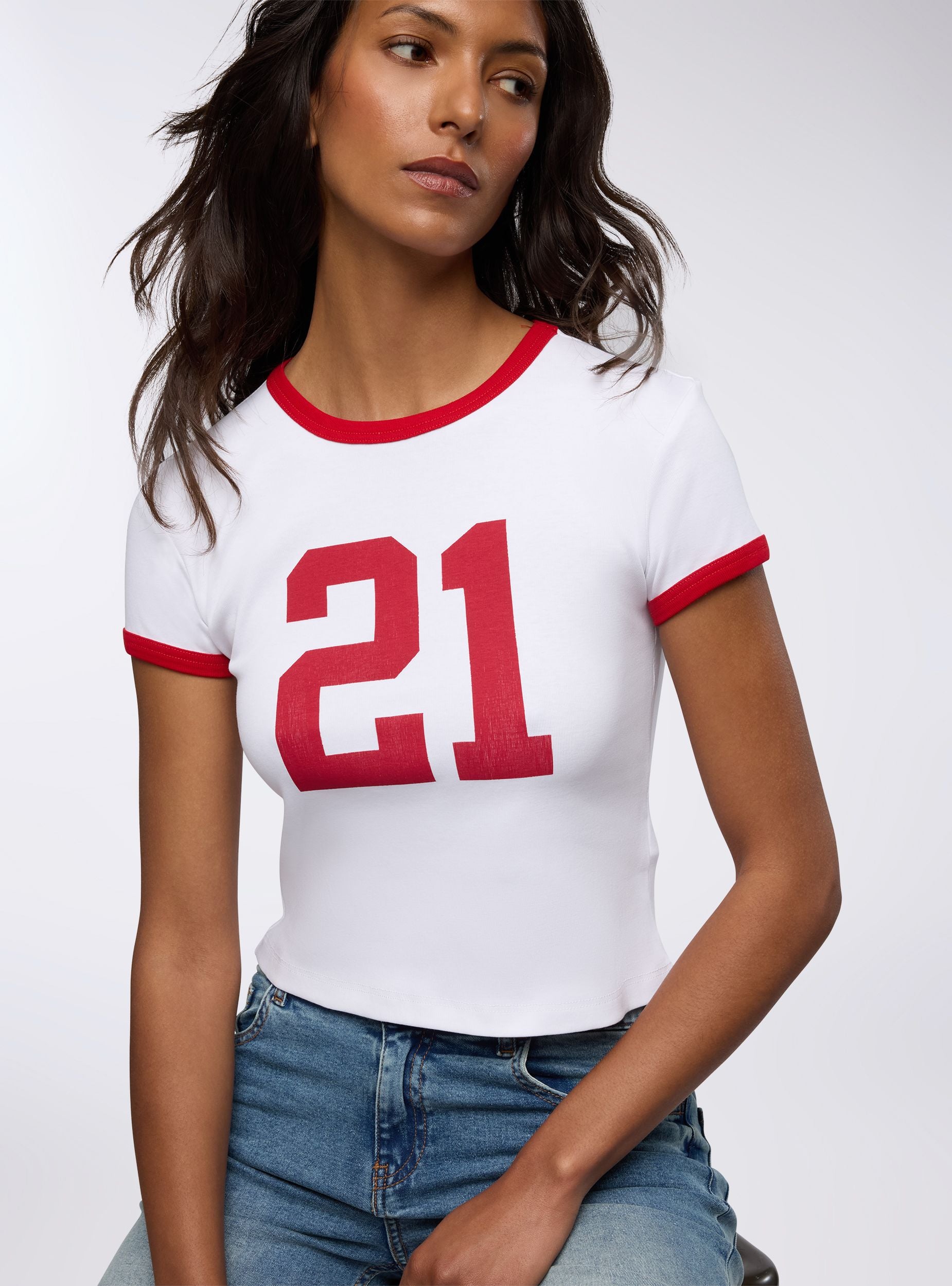 Maglietta da donna ideale per un look casual e sportivo. Perfetta per il tempo libero, si abbina facilmente a jeans o pantaloni jogger per un outfit comodo e alla moda. Il design con stampa numerica aggiunge un tocco dinamico, mentre il taglio regolare garantisce una vestibilità confortevole. Ideale per attività quotidiane o momenti di relax.Dettagli