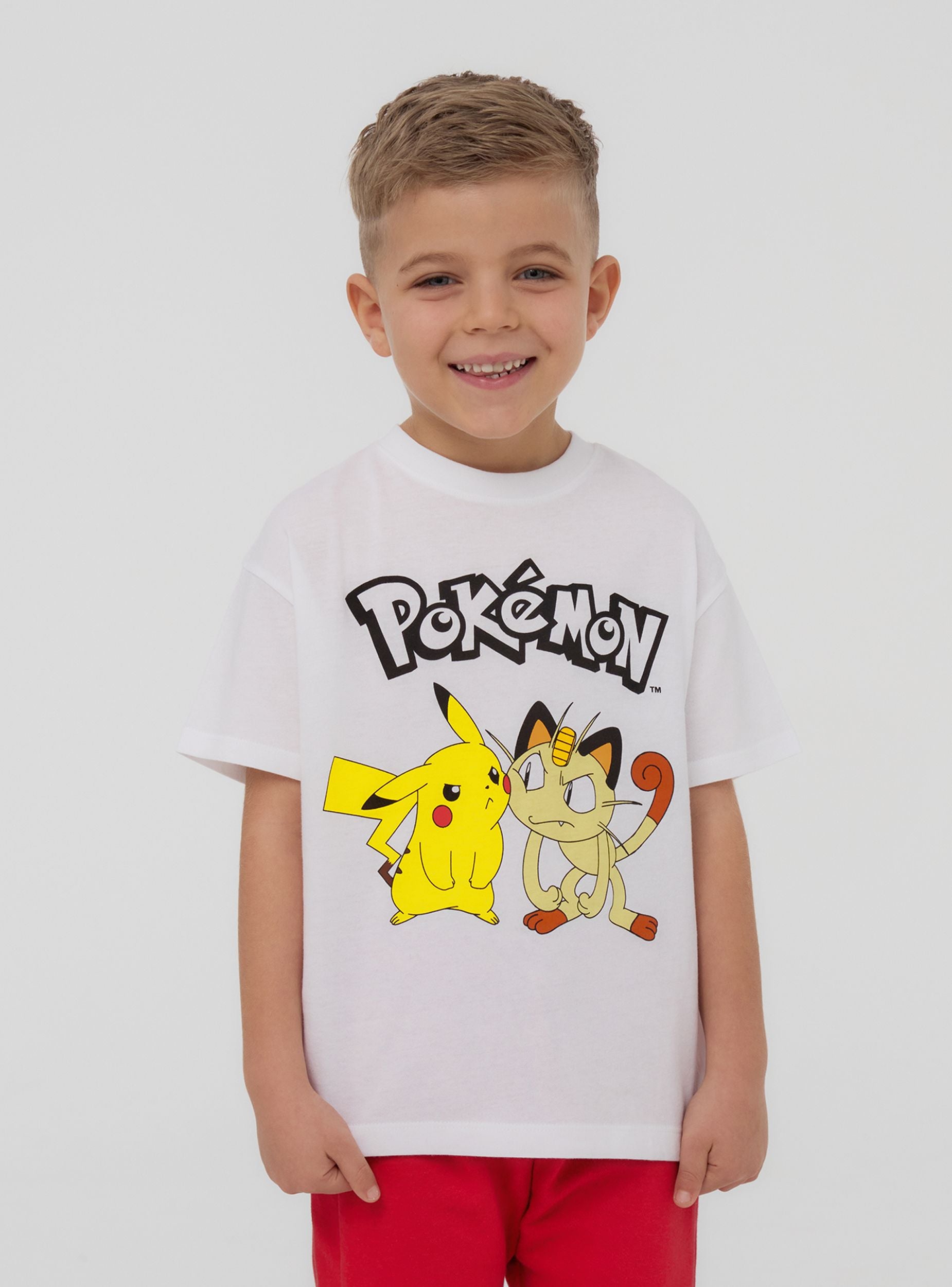 Maglietta da bimbo ideale per il tempo libero e le attività quotidiane, con maniche corte e girocollo per il massimo comfort. La vivace stampa Pokémon® con Pikachu e Meowth rende questo capo perfetto per i piccoli fan, aggiungendo un tocco di allegria e originalità al look.Dettagli