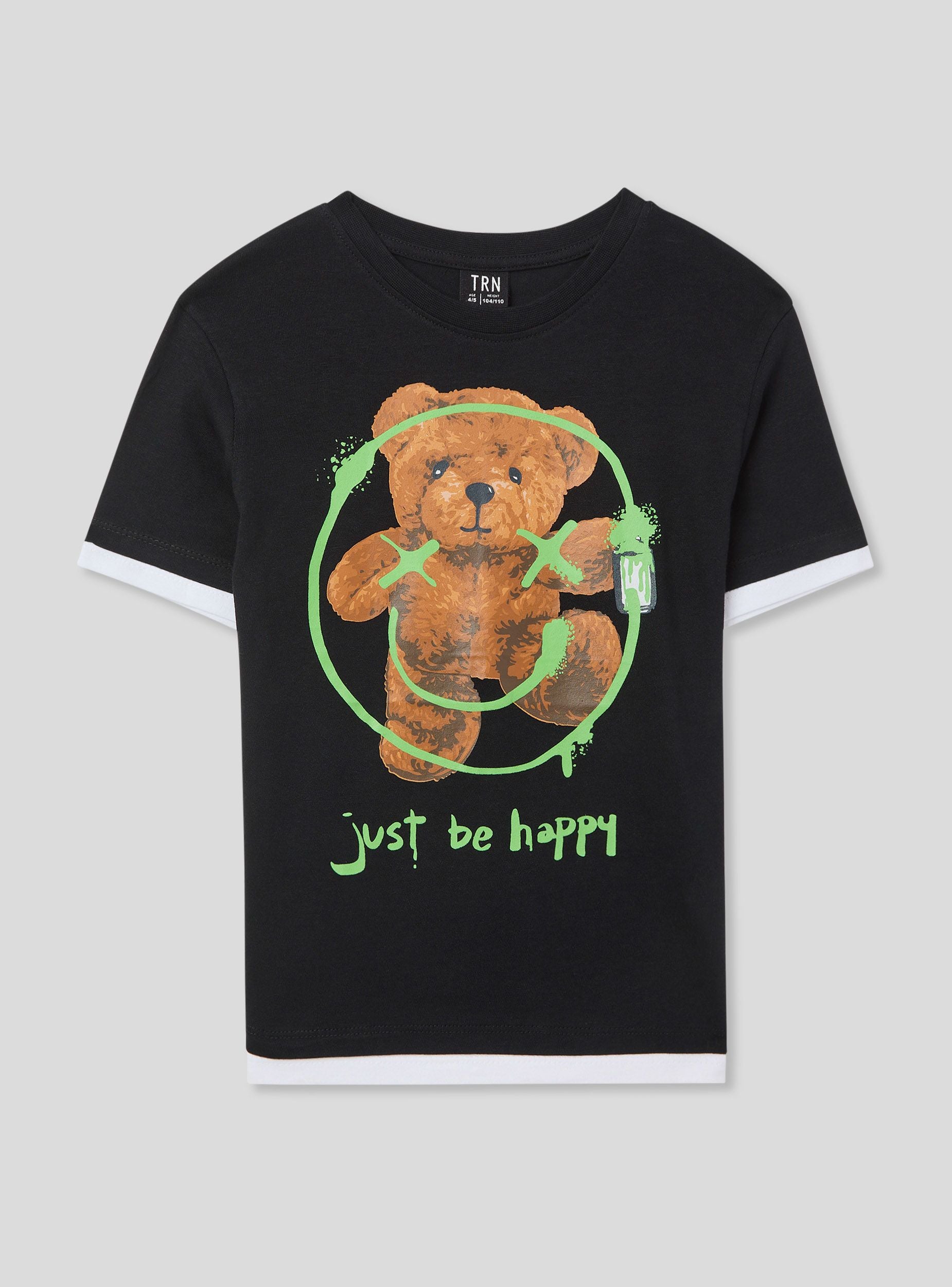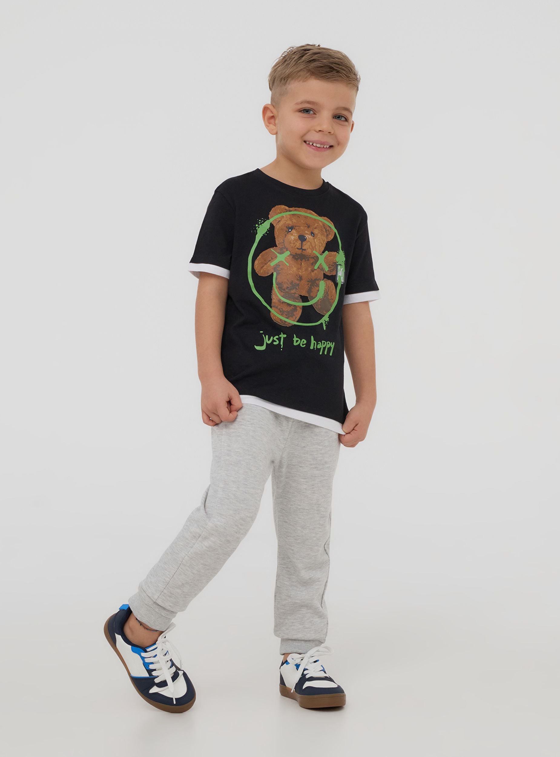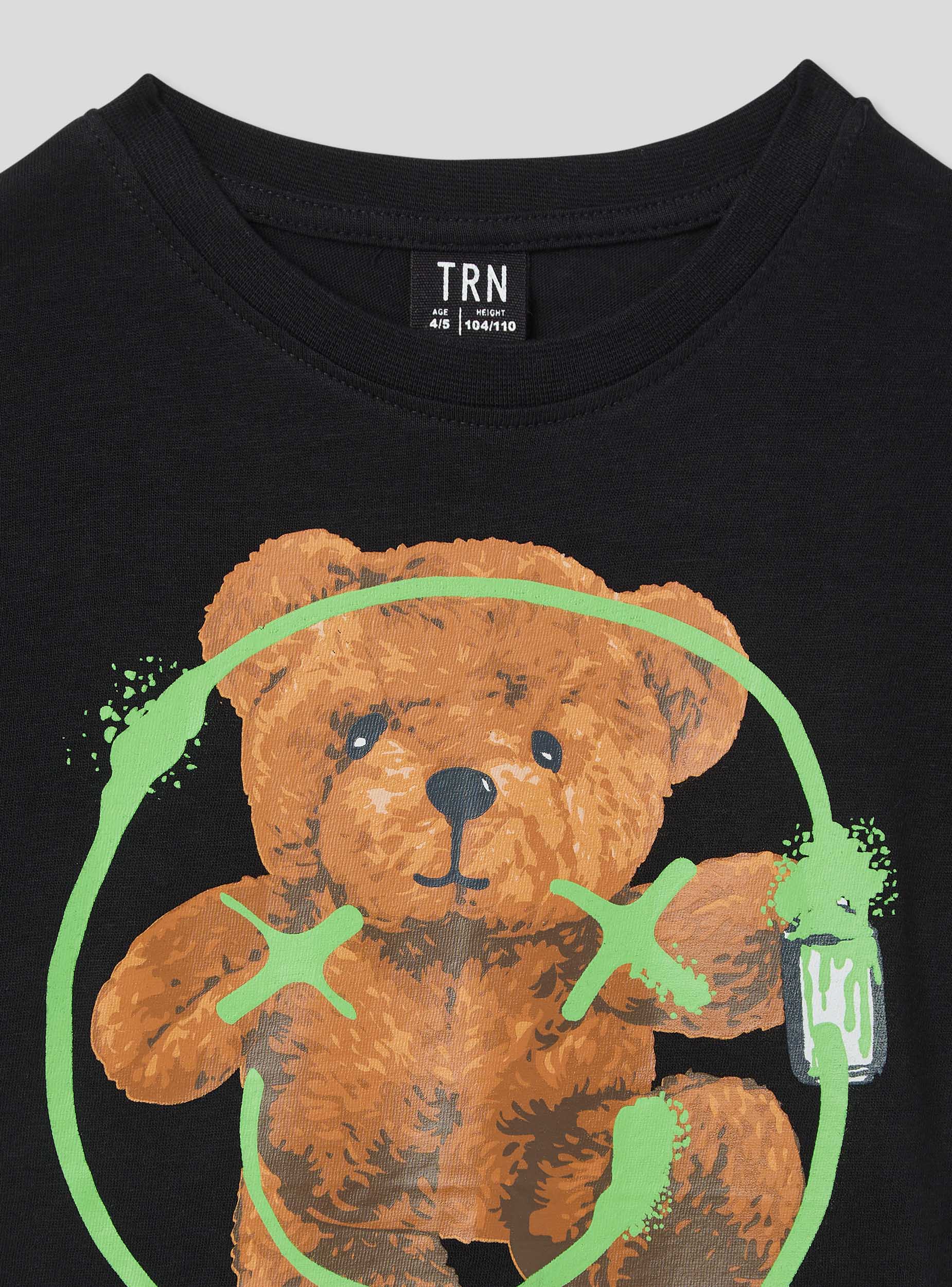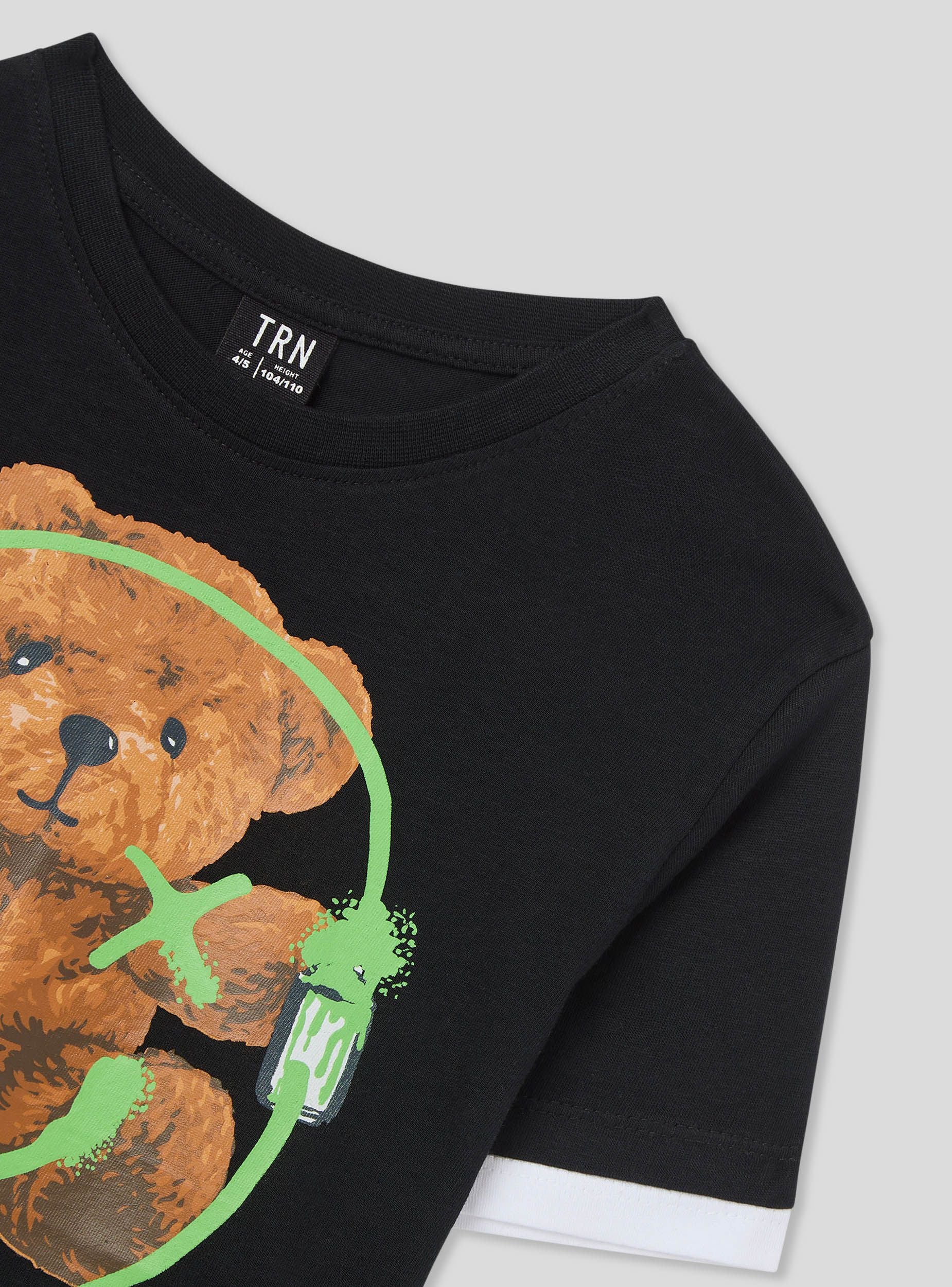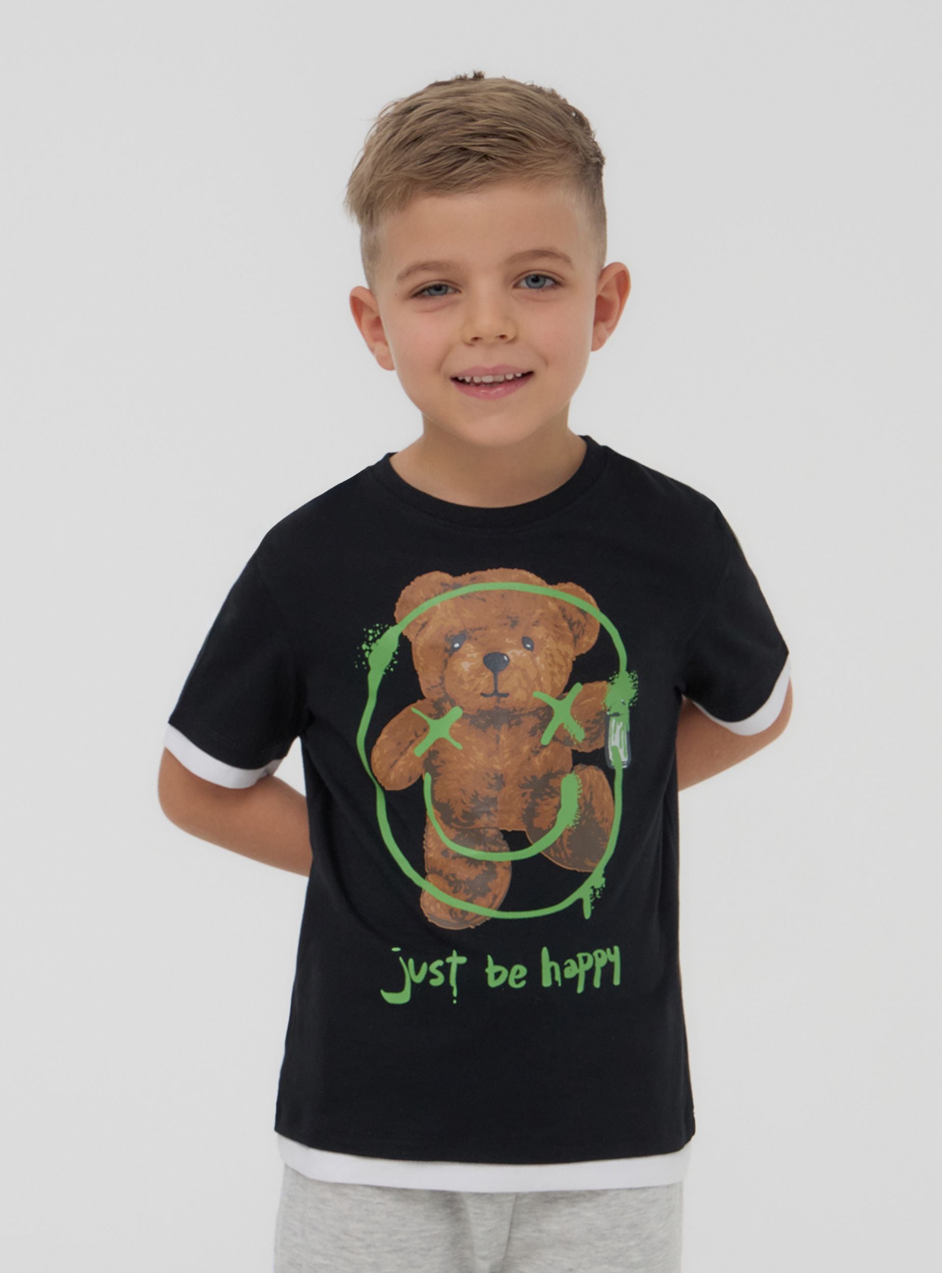 Maglietta da bimbo con un design vivace e divertente. La stampa protagonista è un simpatico orsetto che aggiunge un tocco di allegria e originalità. Le maniche corte e il girocollo garantiscono una vestibilità comoda e pratica, perfetta per accompagnare i più piccoli nelle loro giornate piene di energia. Un capo che unisce stile e spensieratezza, ideale per creare look casual e giocosi.Dettagli