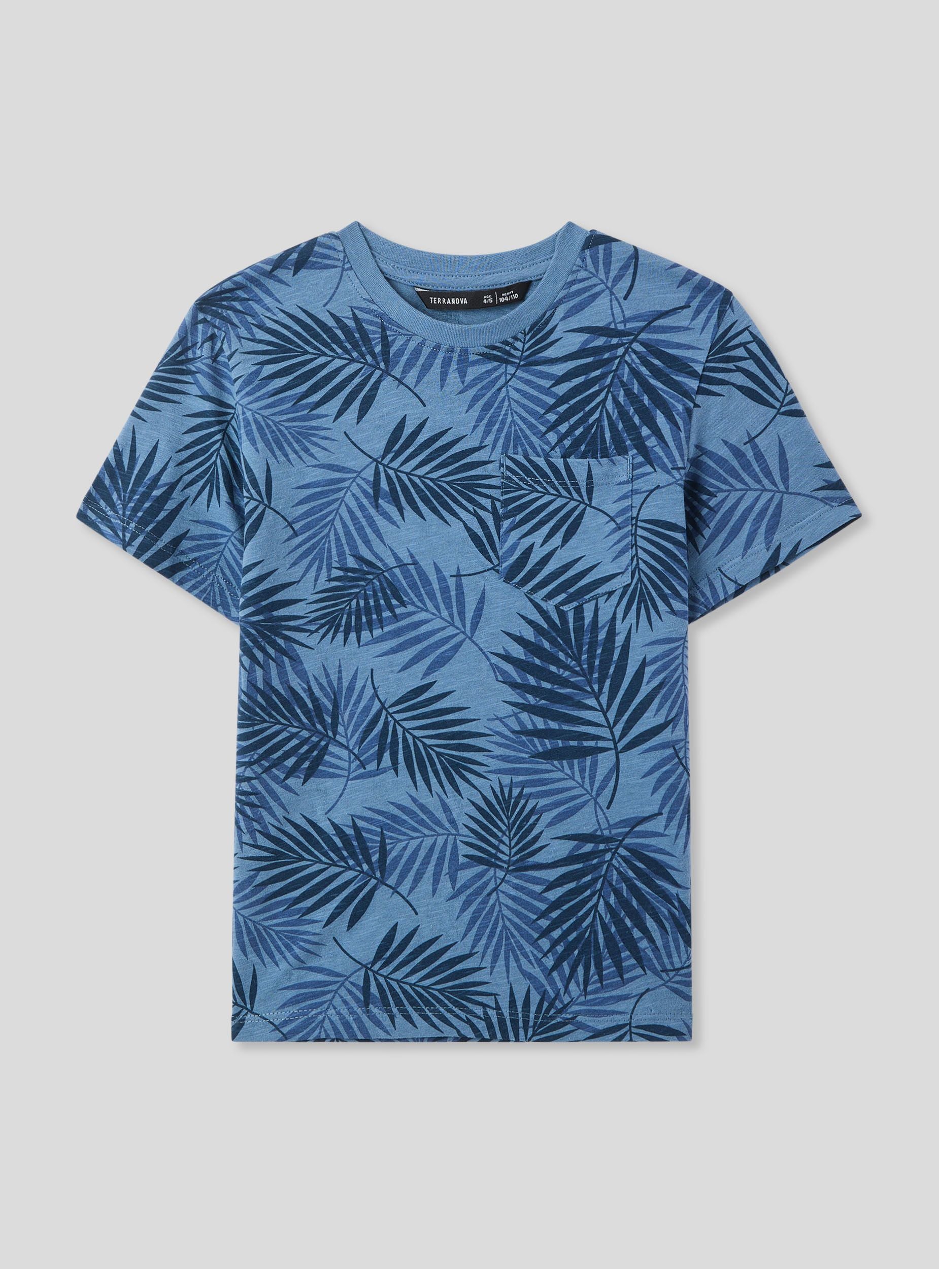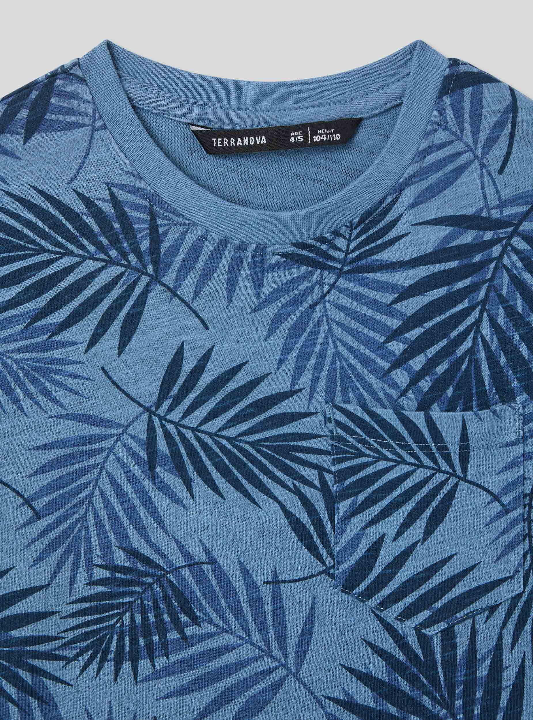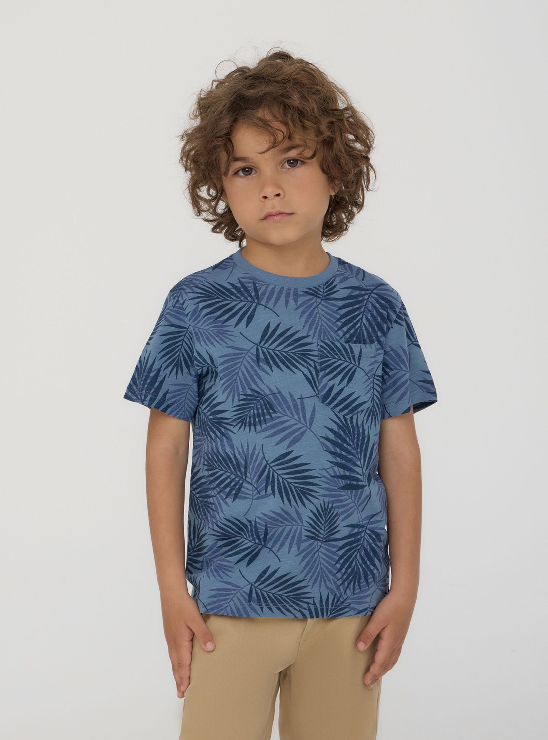 Maglietta da bambino dallo stile fresco e contemporaneo, ideale per le giornate estive e le avventure all’aria aperta. Il design con maniche corte e girocollo assicura comfort e praticità, mentre la stampa con foglie all-over dona un tocco tropicale e dinamico. La piccola tasca sul petto aggiunge un dettaglio casual e funzionale. Perfetta con shorts o jeans per un look pratico e alla moda.Dettagli