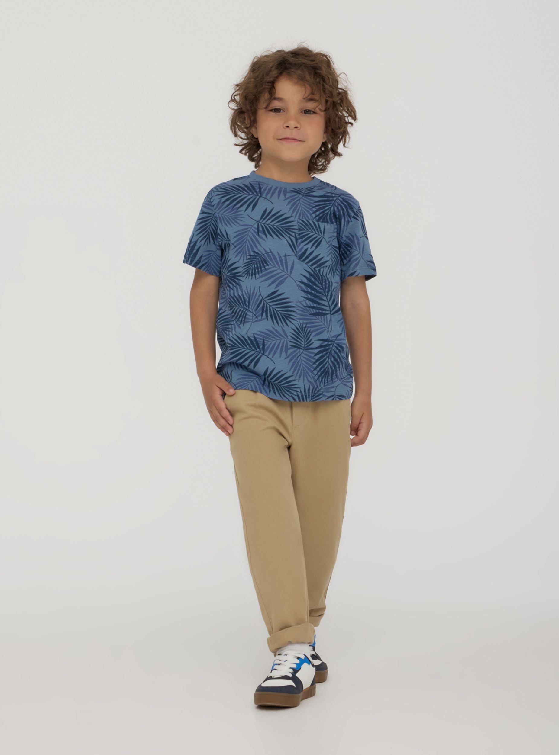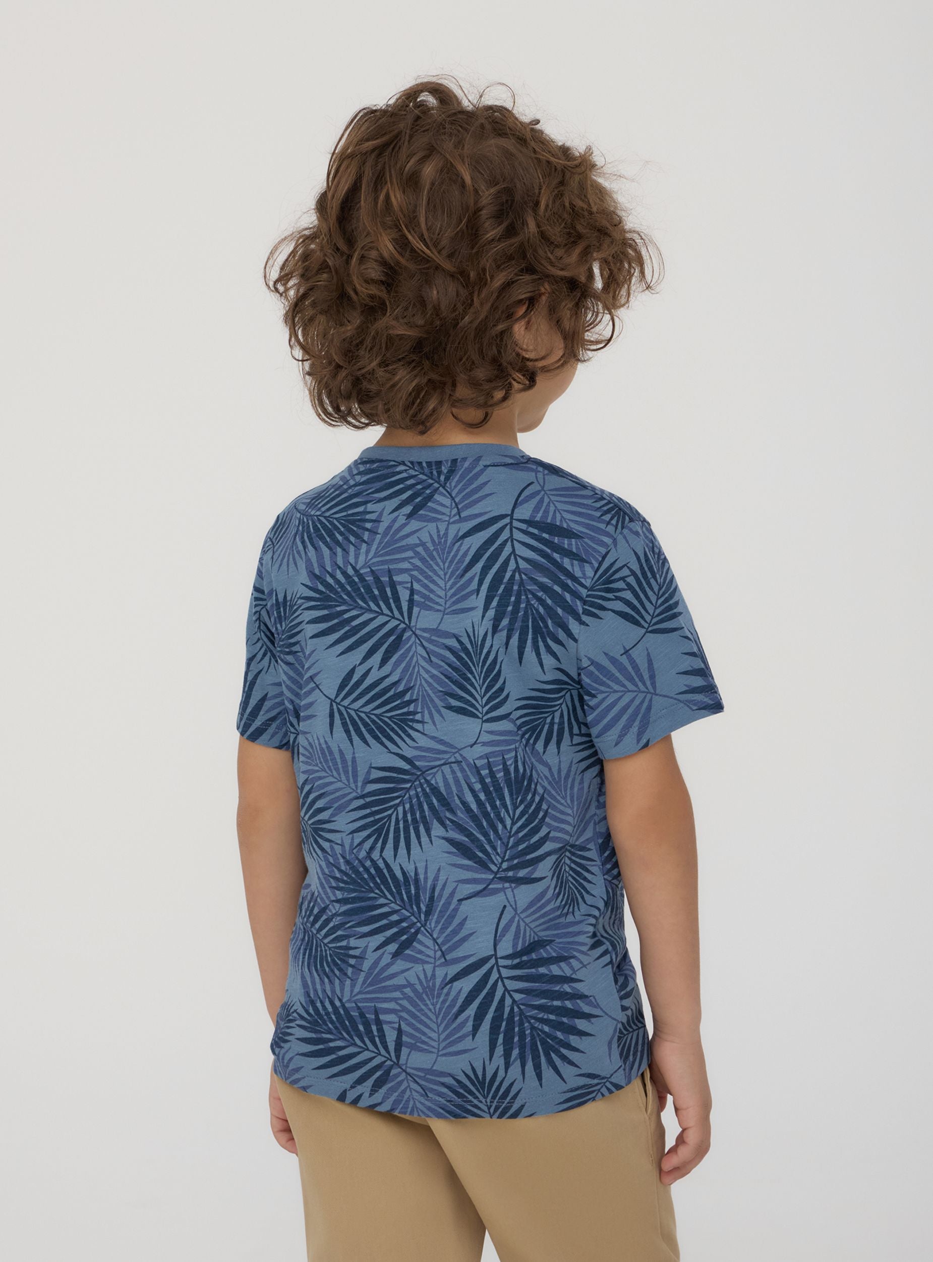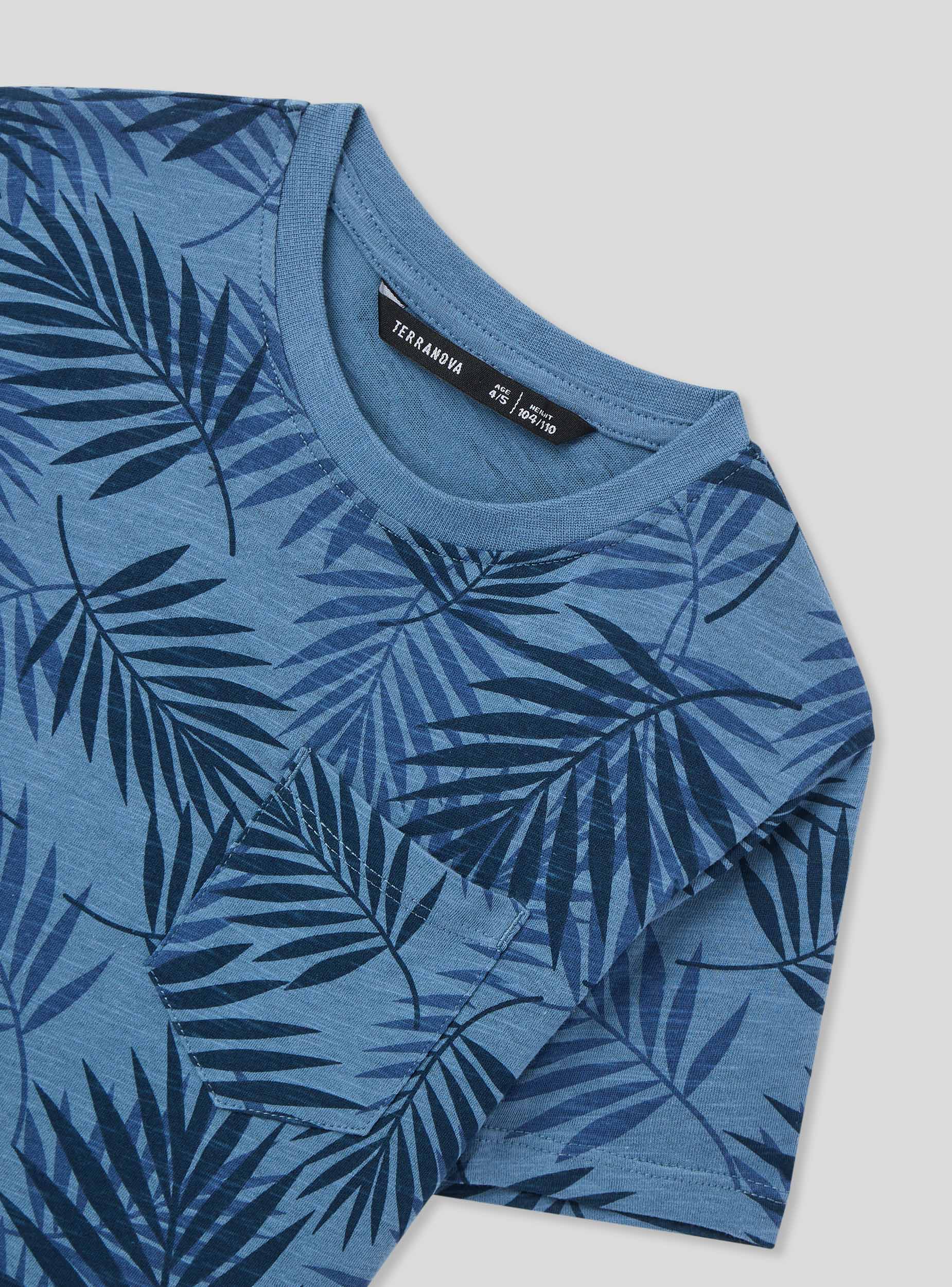 Maglietta da bambino dallo stile fresco e contemporaneo, ideale per le giornate estive e le avventure all’aria aperta. Il design con maniche corte e girocollo assicura comfort e praticità, mentre la stampa con foglie all-over dona un tocco tropicale e dinamico. La piccola tasca sul petto aggiunge un dettaglio casual e funzionale. Perfetta con shorts o jeans per un look pratico e alla moda.Dettagli