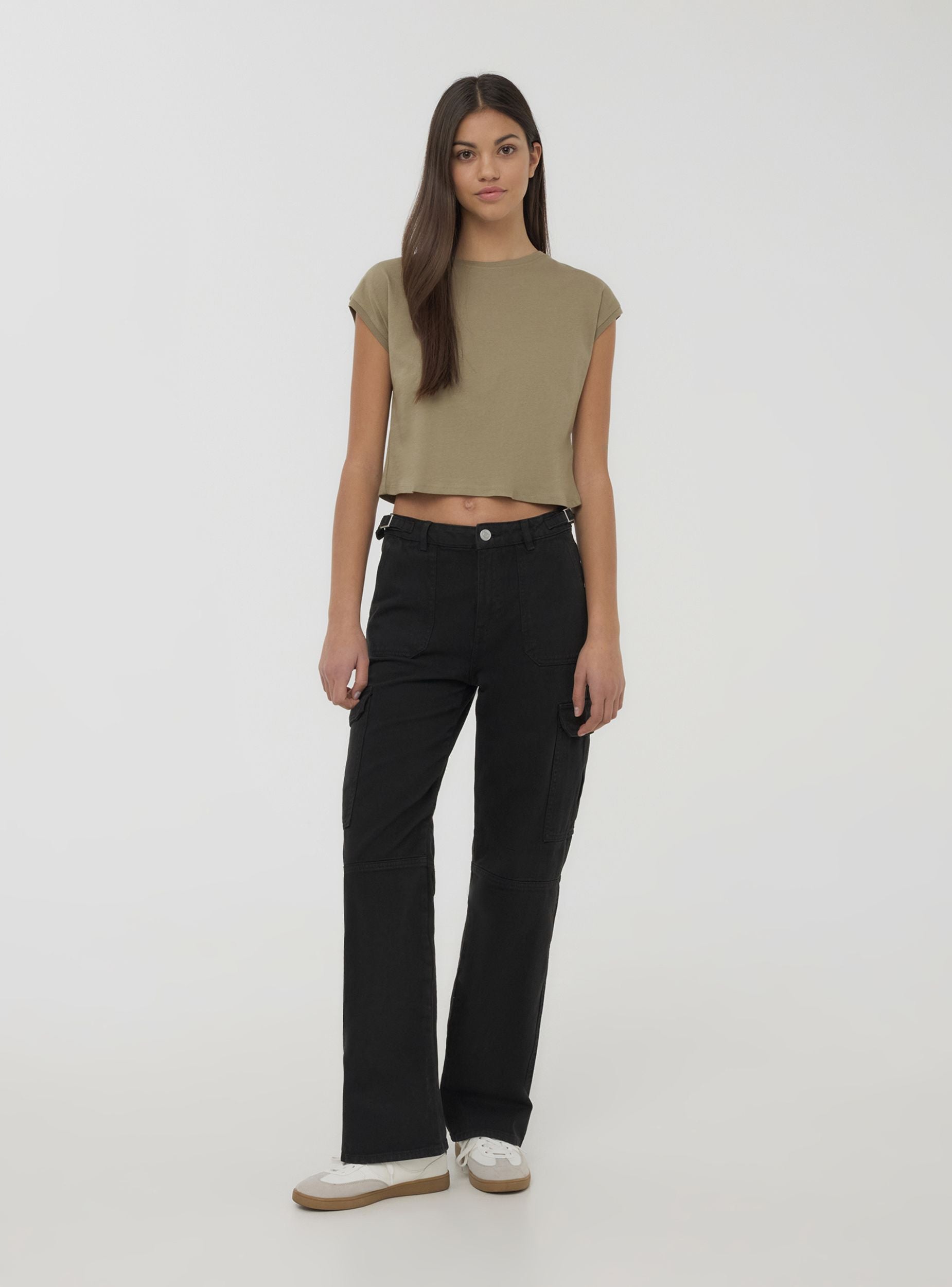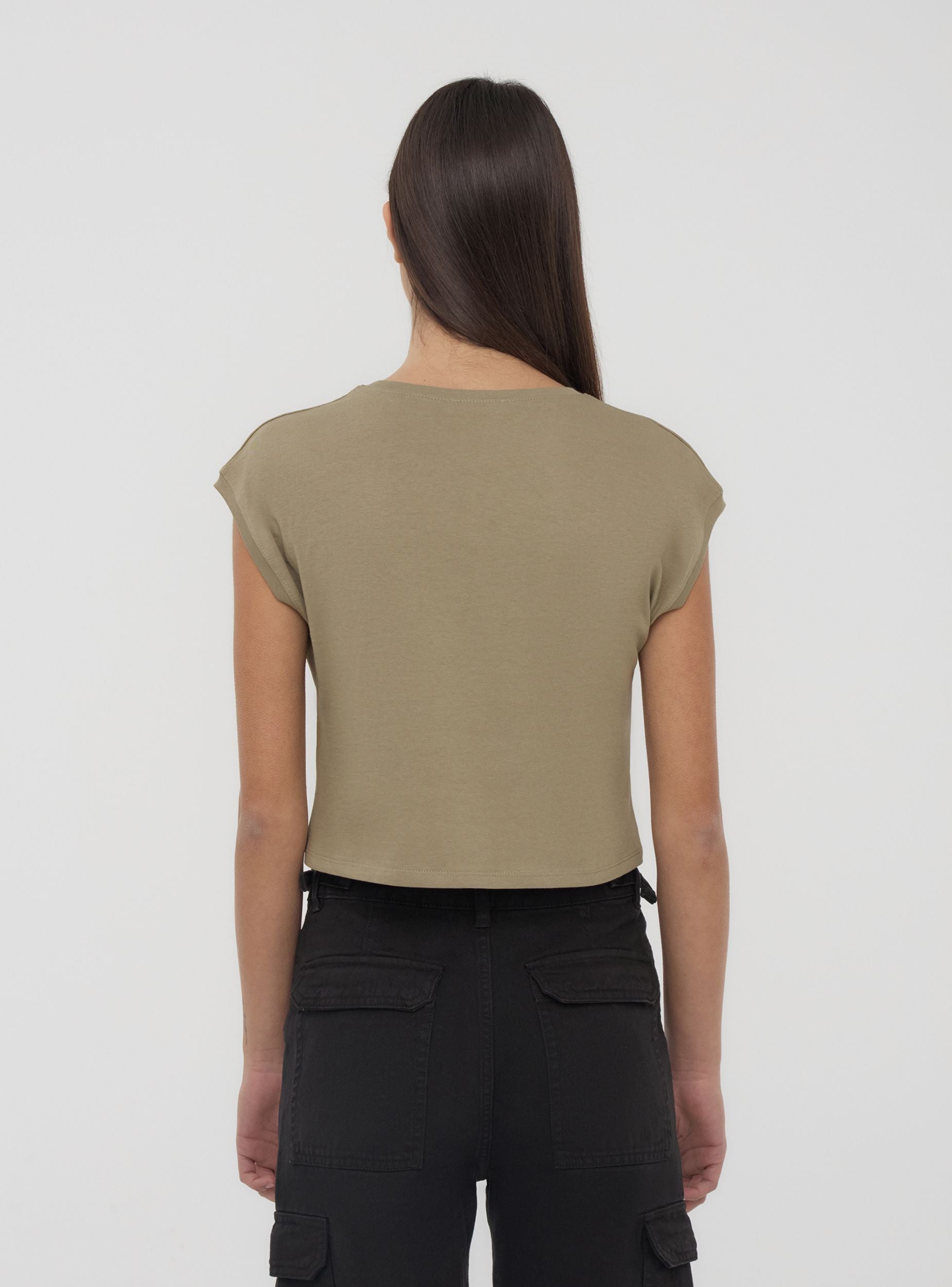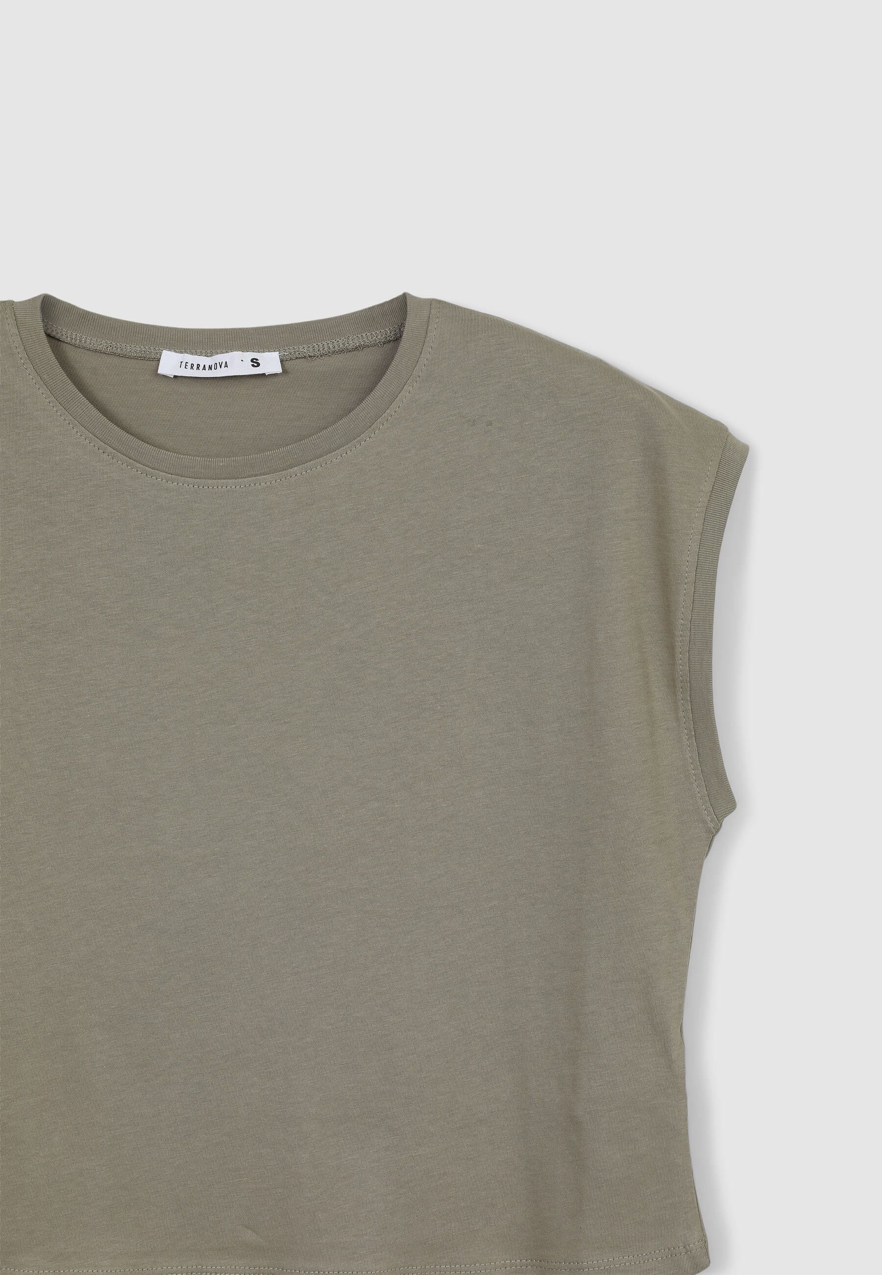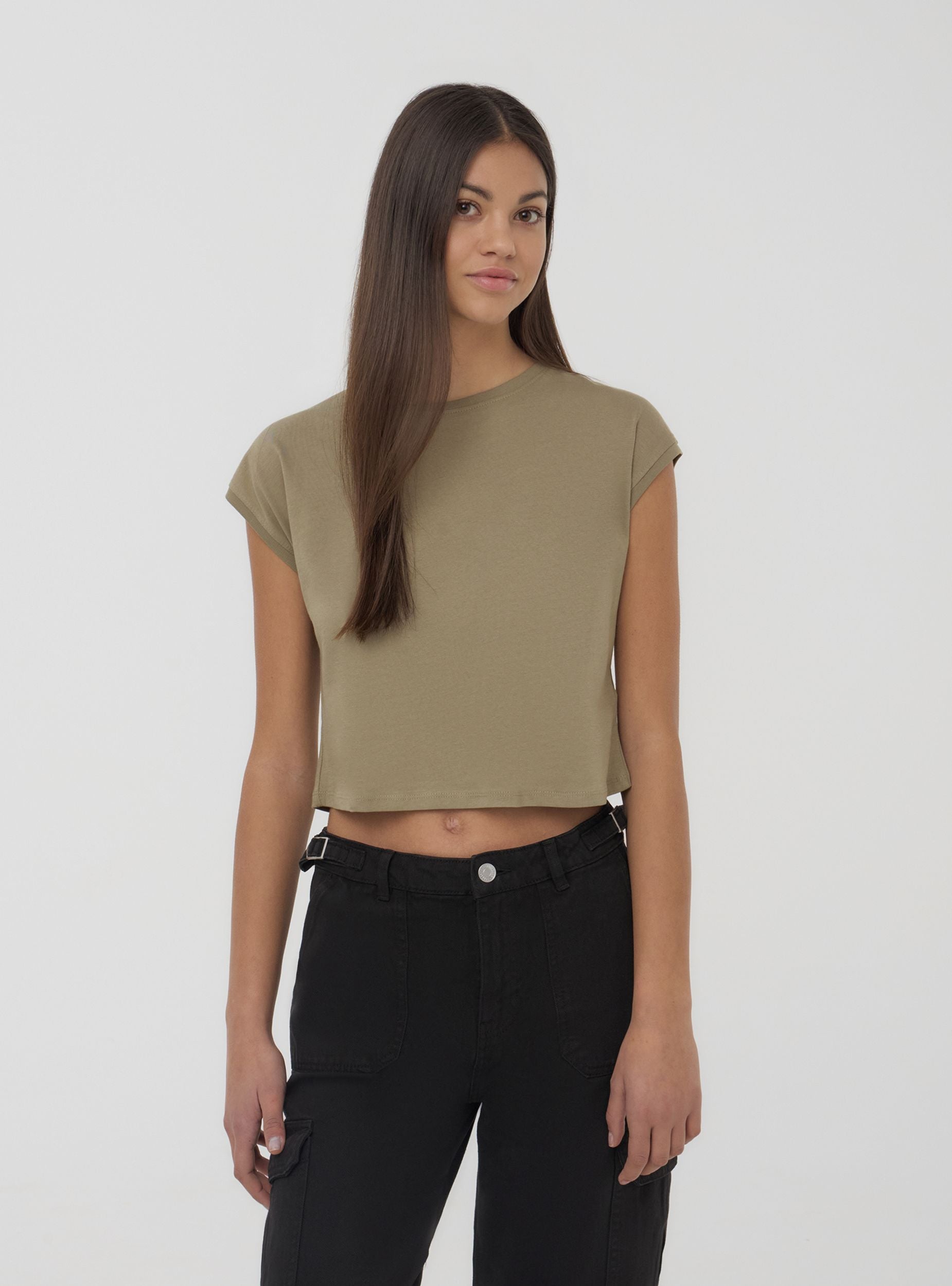 Maglietta da donna dallo stile moderno e fresco, con un taglio crop che lascia scoperta la parte inferiore del busto, donando un tocco di femminilità al capo. Le maniche ad aletta conferiscono un aspetto delicato e leggero, perfetto per le stagioni calde. Il design a tinta unita la rende estremamente versatile, facile da abbinare a diversi stili e accessori. Grazie al suo taglio semplice ma raffinato, questa maglietta è ideale per creare look casual durante il giorno, ma può essere anche arricchita con accessori per serate più informali. Un capo perfetto per chi cerca comodità senza rinunciare allo stile.Dettagli