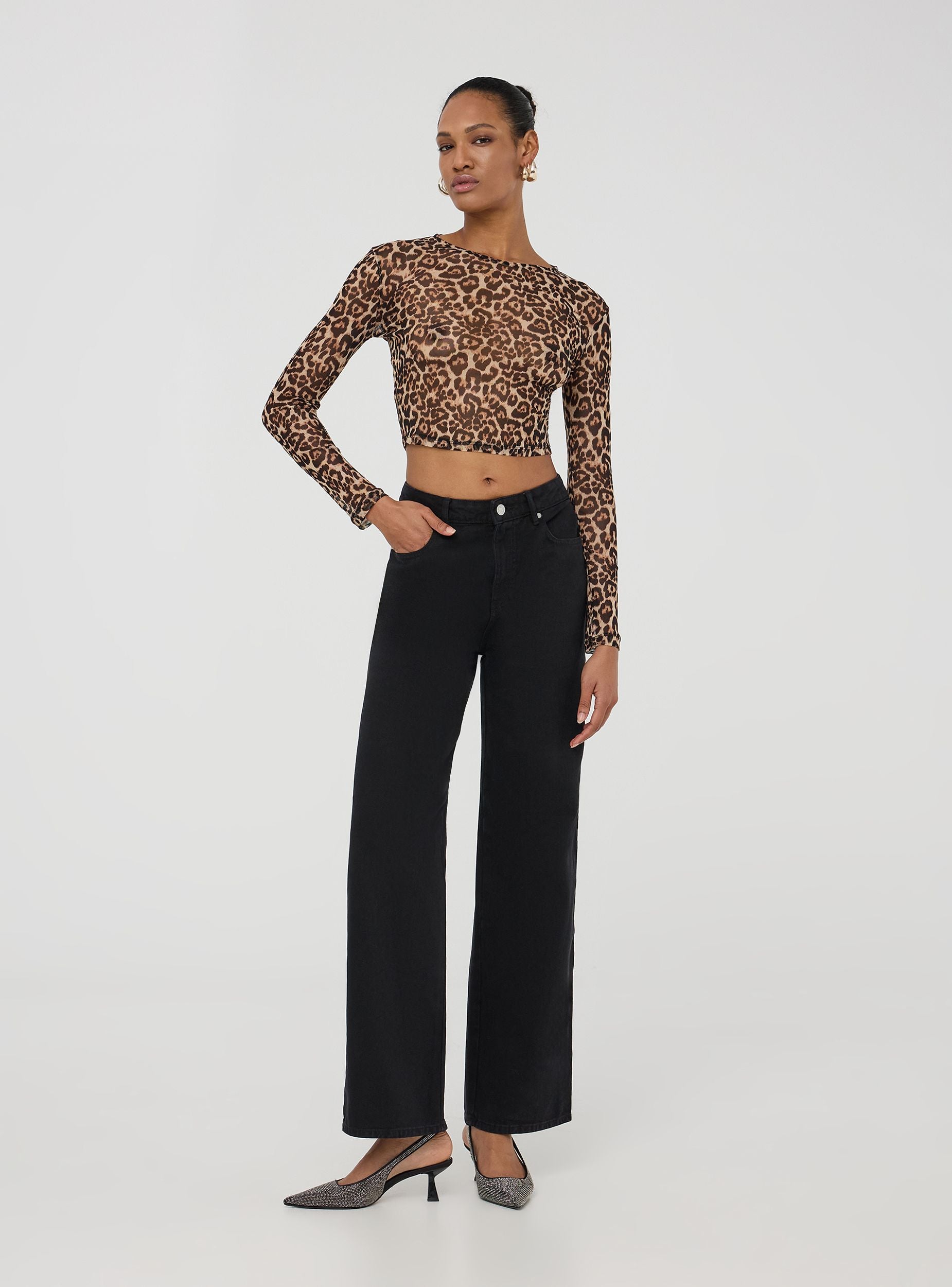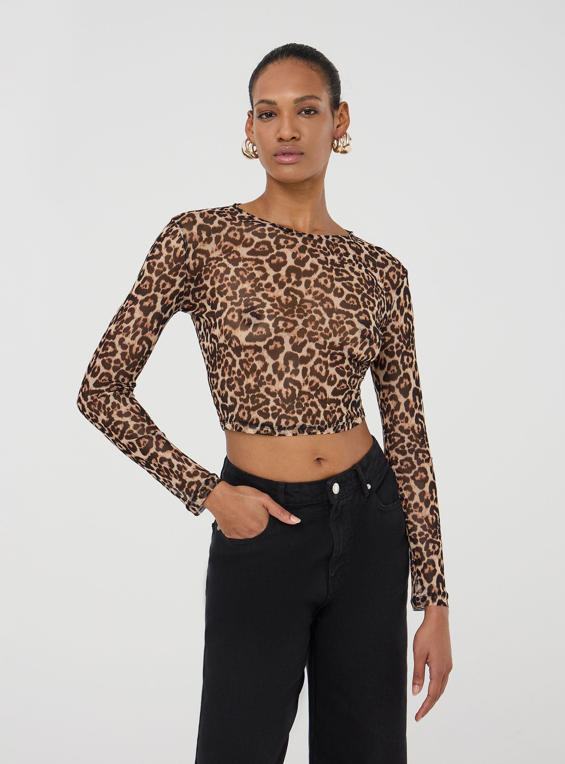 Maglia da donna dal design accattivante e moderno, caratterizzata da un taglio crop che dona uno stile audace e contemporaneo. Con maniche lunghe e girocollo, offre una vestibilità aderente che esalta la figura, rendendola perfetta per outfit alla moda. Realizzata in tulle leggero, la maglia si distingue per la sua stampa animalier, che aggiunge un tocco selvaggio e di tendenza. Ideale per chi desidera un capo versatile e sofisticato, da indossare sia in abbinamenti casual che per occasioni più particolari, sempre con un look originale e di grande impatto.Dettagli