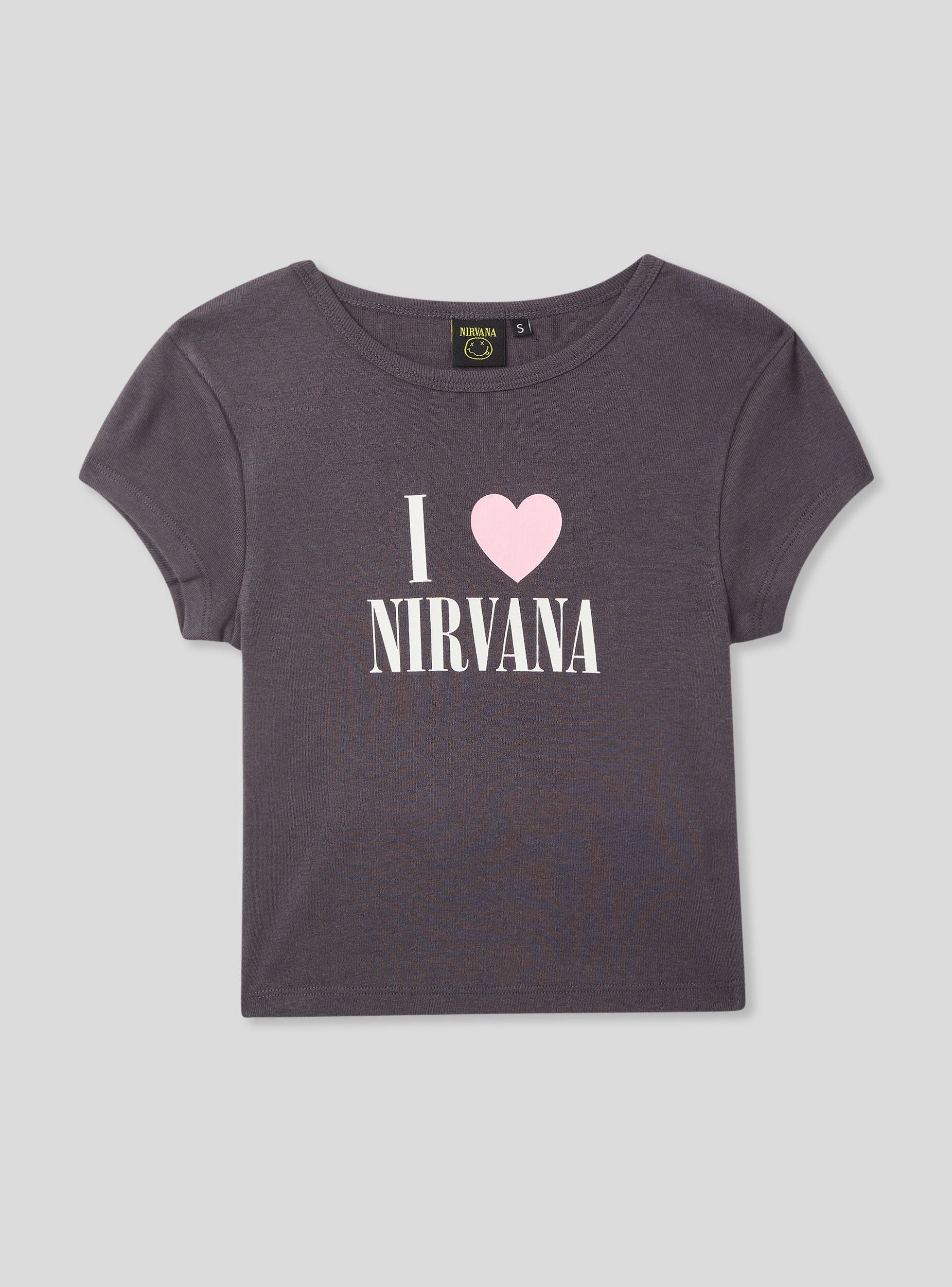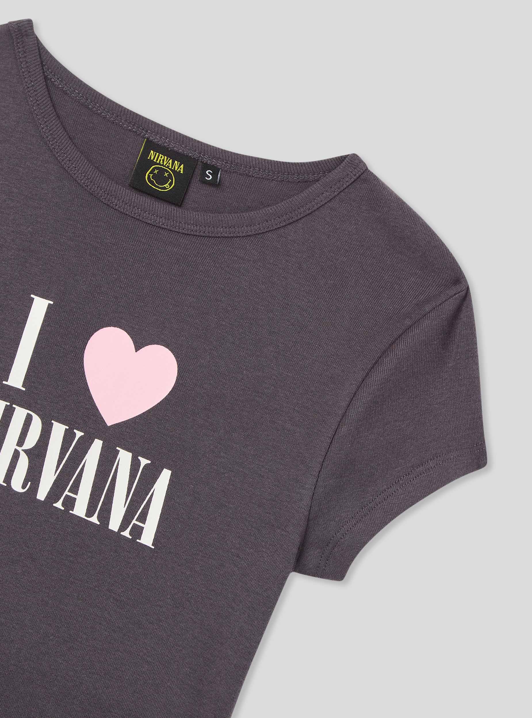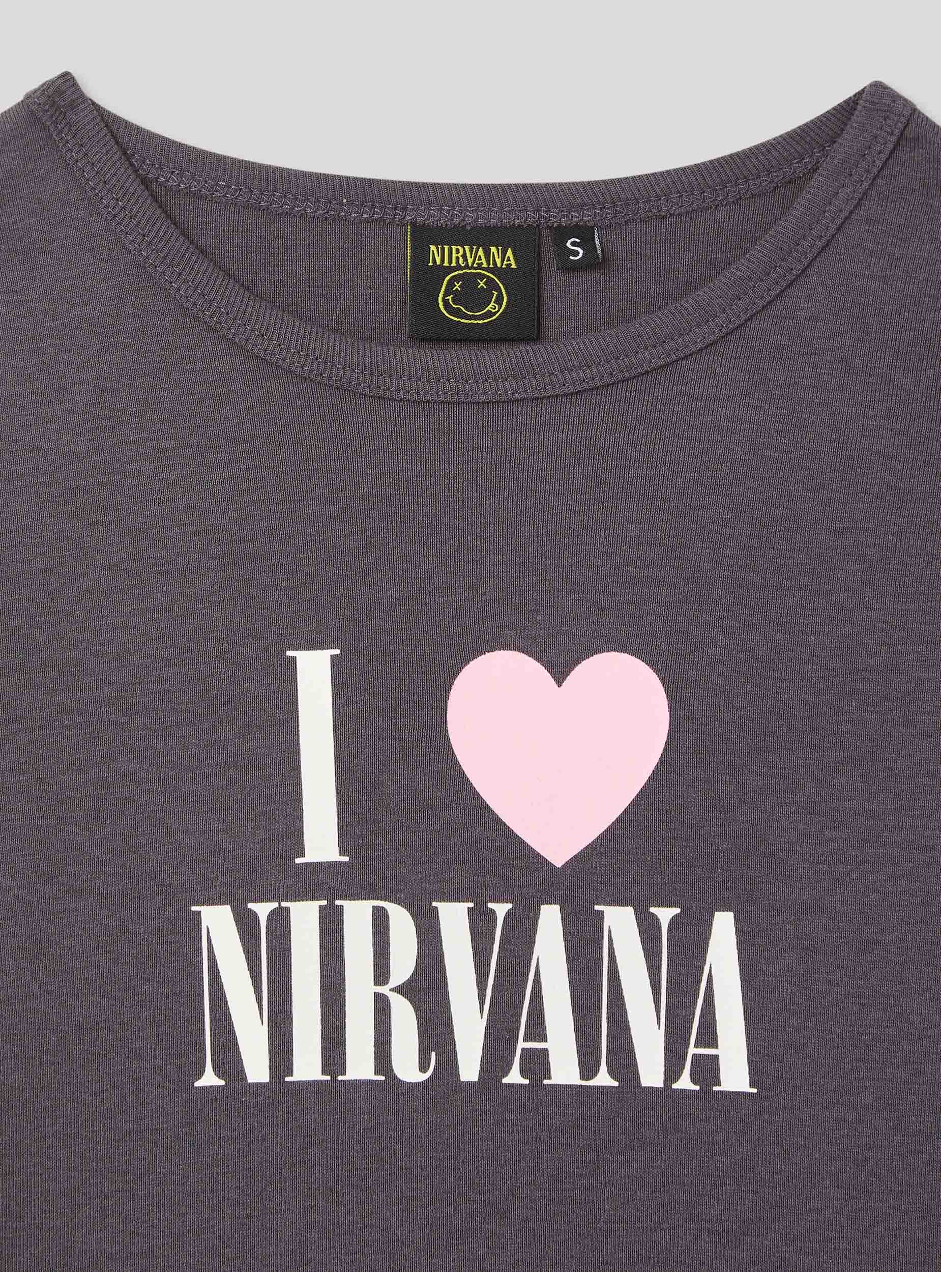 Maglietta da donna crop con girocollo e maniche corte, caratterizzata da una stampa centrale Nirvana®. Il taglio corto dona un tocco moderno e casual, perfetto per chi ama esprimere la propria passione per la musica in un look giovane e disinvolto. Ideale da abbinare a jeans a vita alta o a una gonna per un outfit dal carattere rock e contemporaneo.Dettagli